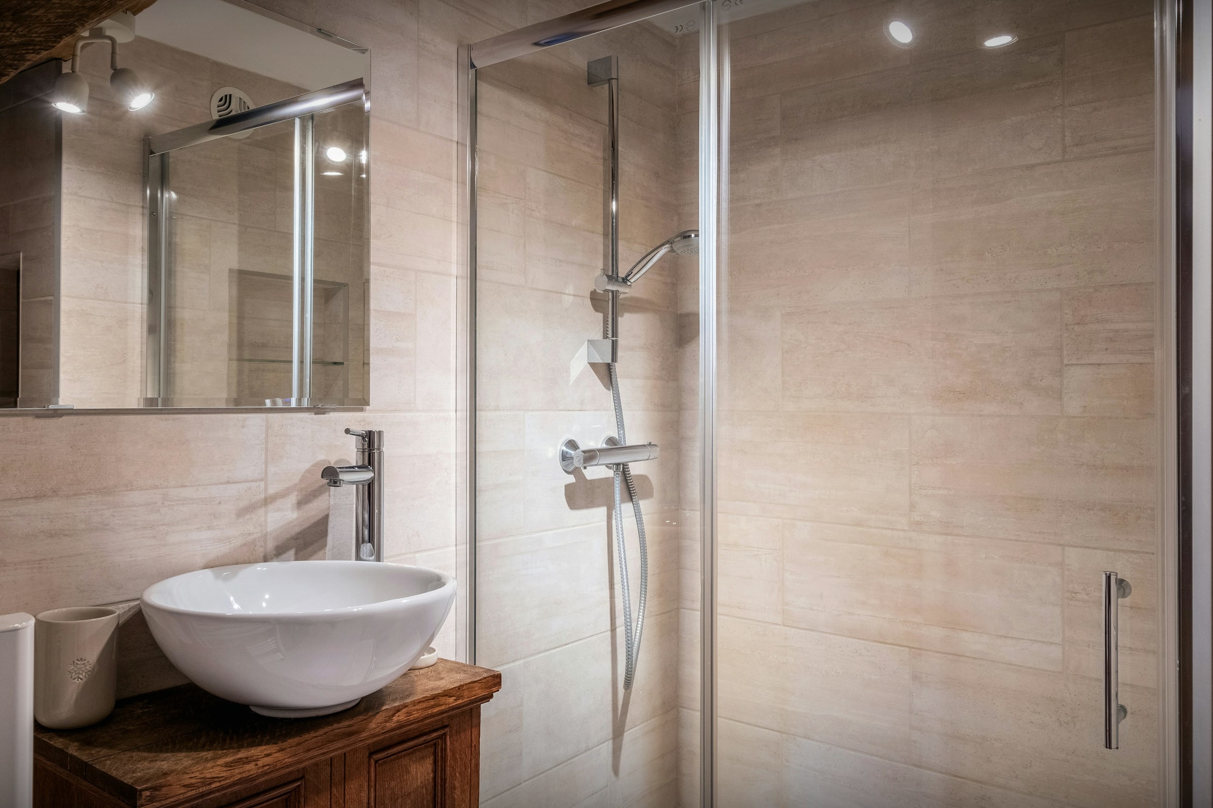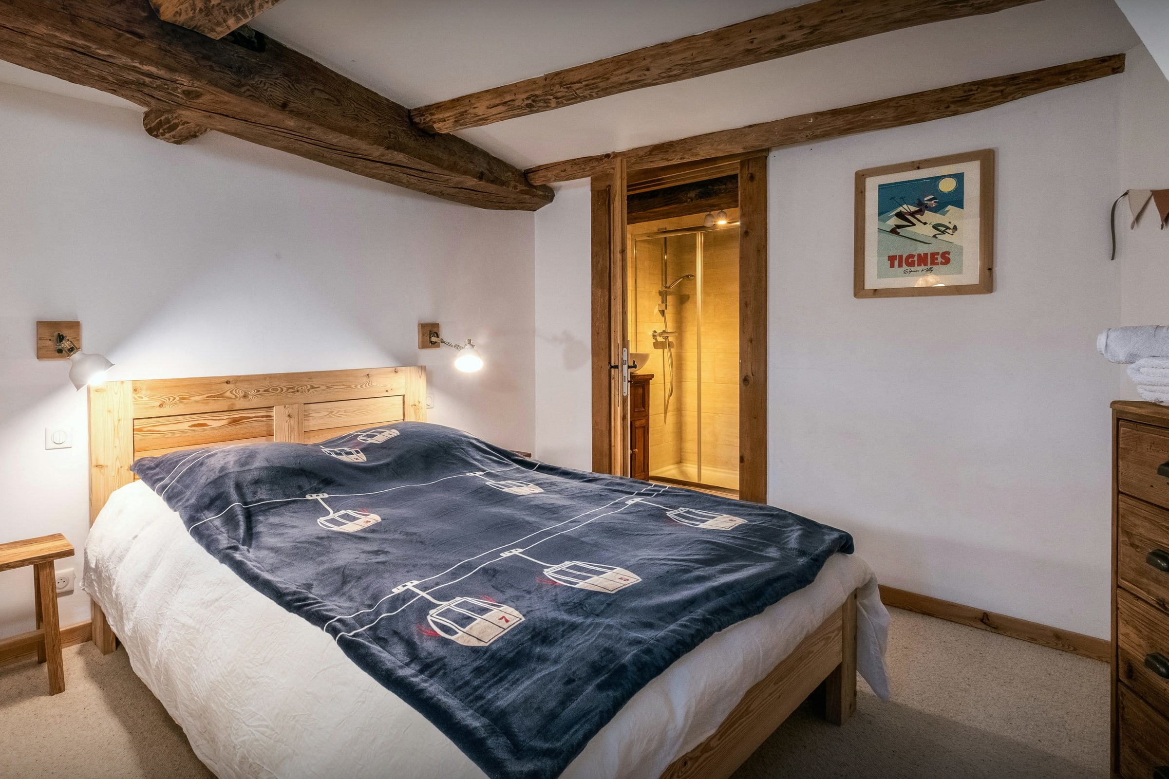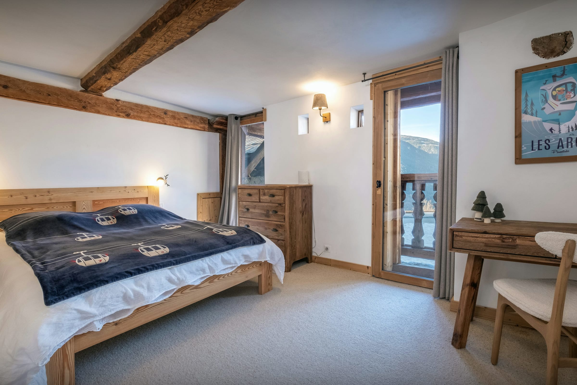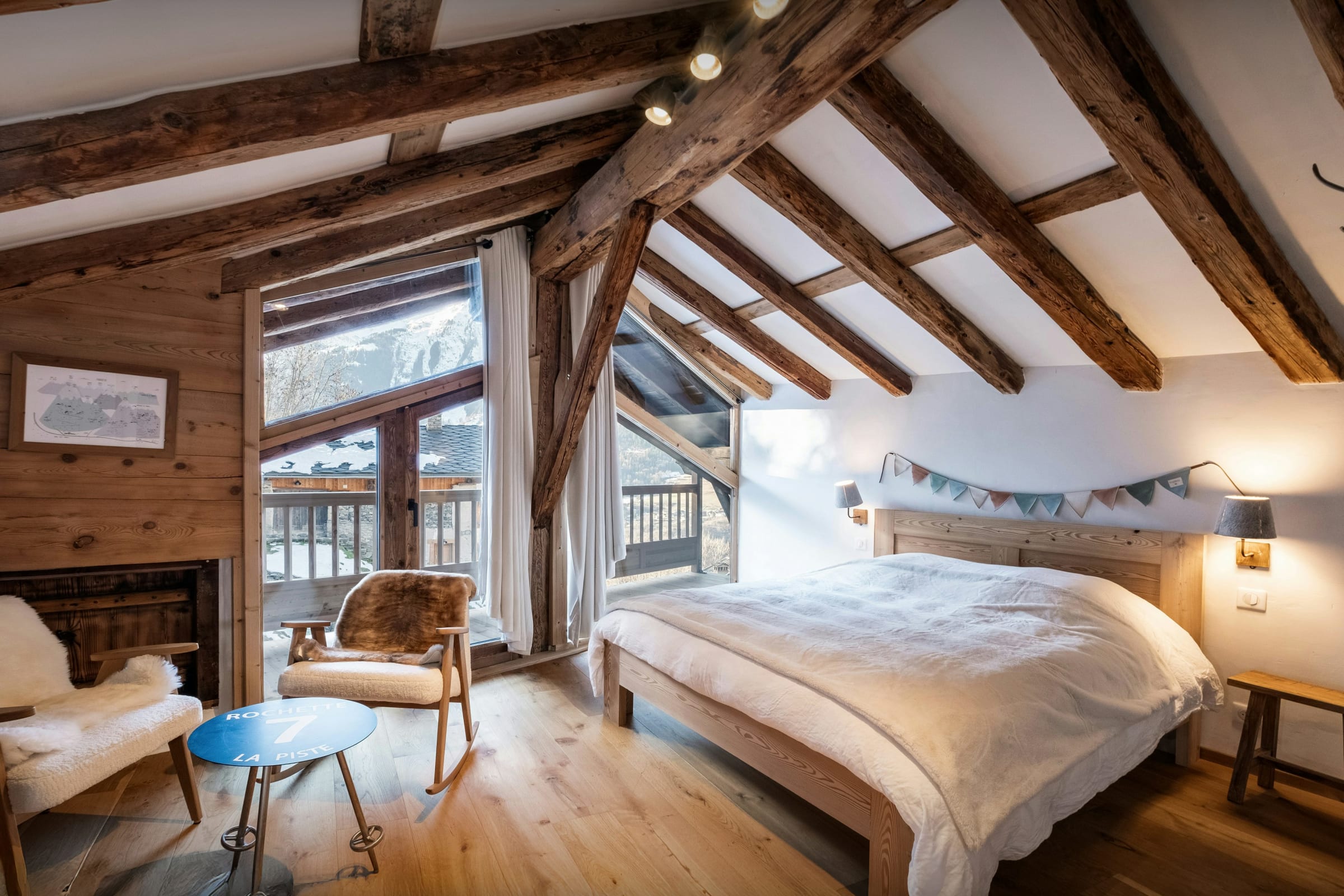 The bedrooms are thoughtfully laid out so everyone can find their own space. With dedicated areas for children, cosy double rooms and a private suite with its own balcony, the chalet easily adapts to every type of group. Most bedrooms have en-suite bath or shower rooms, and some open onto balconies or include a desk, creating peaceful little retreats throughout the home.