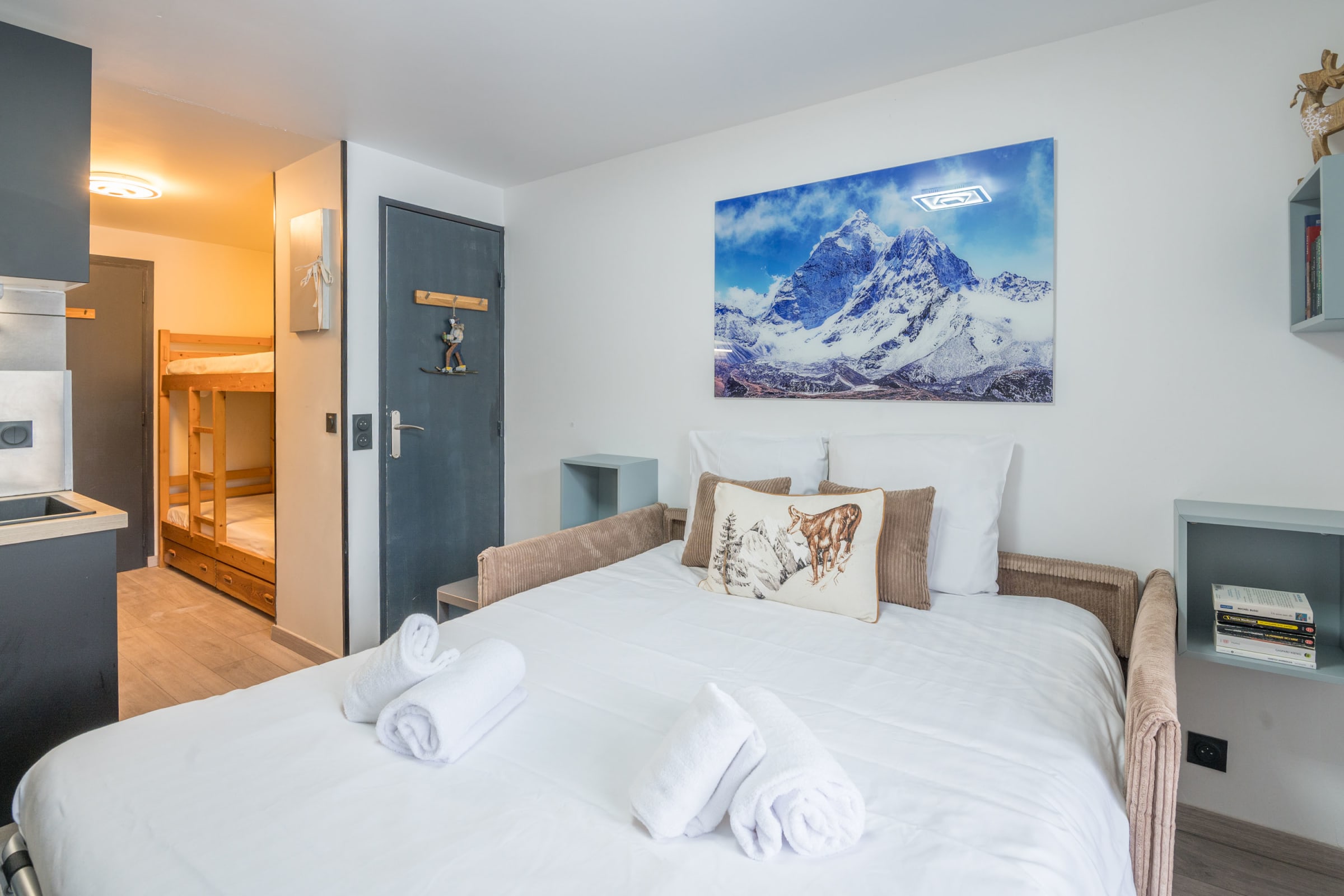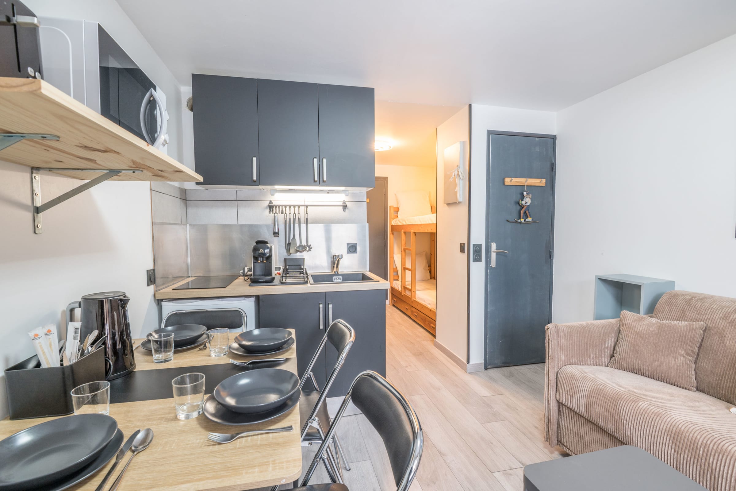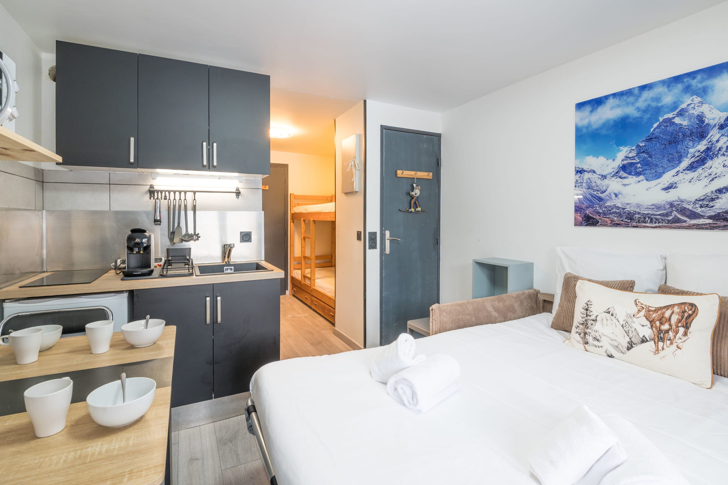 This 18 m² studio on the garden level can accommodate up to 3 to 4 people. It features :