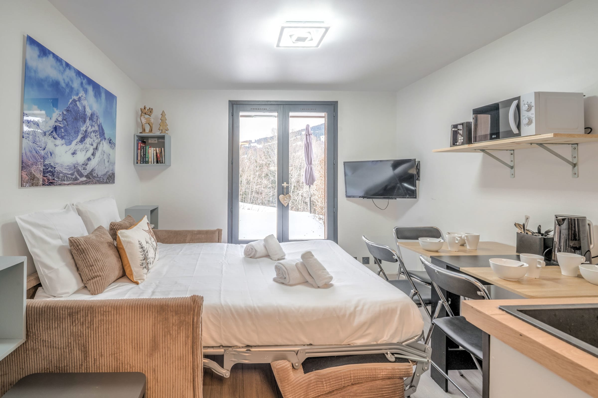 Located in a peaceful, privileged area, this studio is not far from Megève town center. You'll be close to the Princesse and Le Jaillet ski lifts, ideal for skiers and hikers. Shops are within easy reach, and you can reach the center of Megève in just 15 minutes on foot. Enjoy the breathtaking scenery and serene ambience of the region.