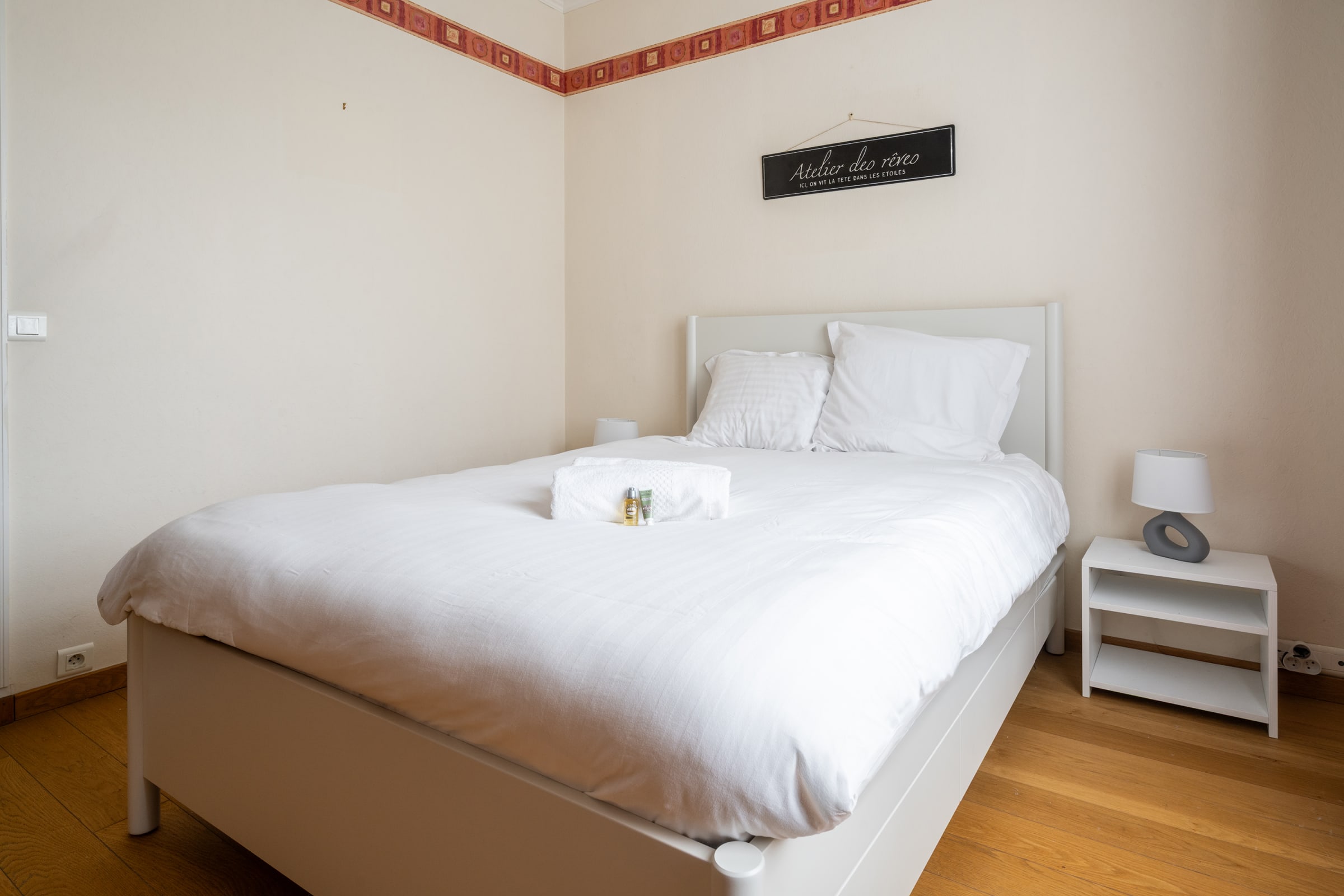 → Before your arrival and after your departure, our team performs hotel-quality housekeeping and provides you with hotel-quality towels, bed linen and a line of natural skincare products.