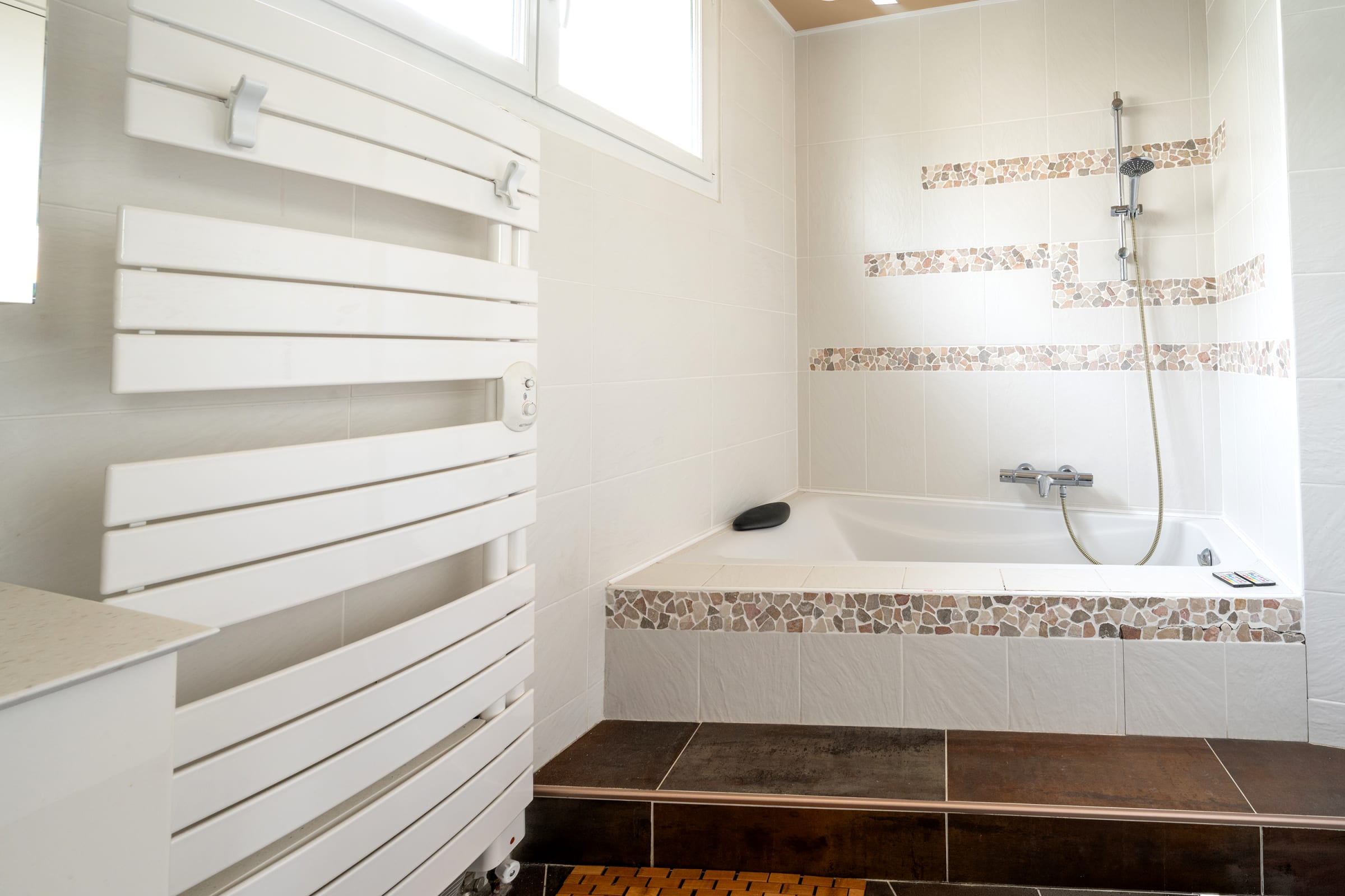 - bathroom with bath and shower,