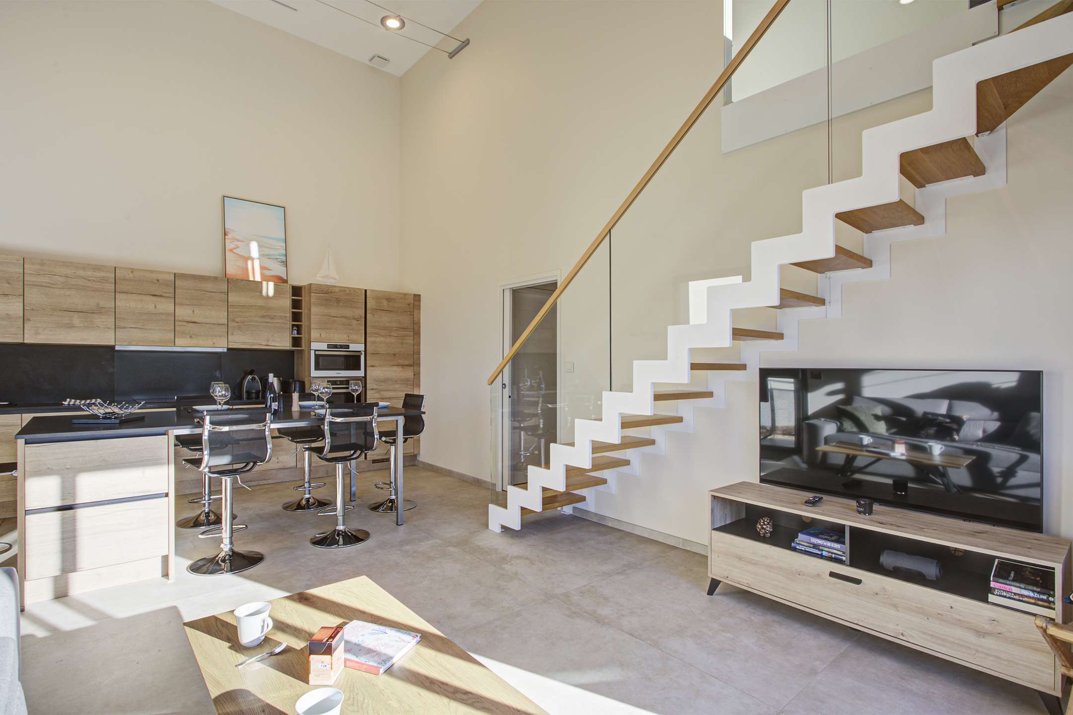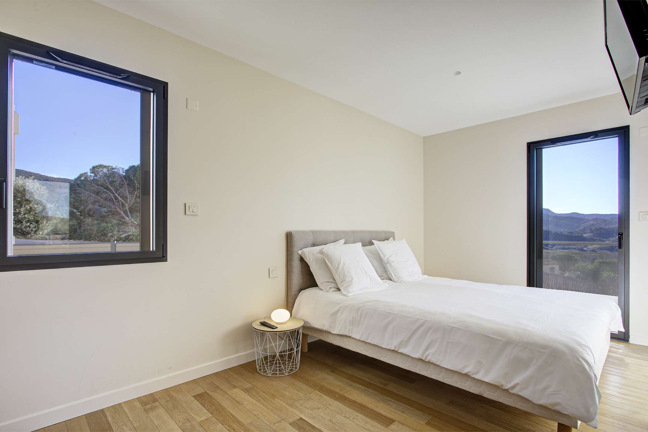 La Villa DORIS s’organise sur deux niveaux. Au premier niveau, vous trouverez une cuisine entièrement équipée ouverte sur un séjour lumineux avec accès direct au balcon et sa vue imprenable, une chambre avec lit double et salle d’eau attenante, un WC indépendant ainsi qu’une buanderie. À l’étage supérieur, l’espace nuit se compose d’une chambre avec lit double, d’une petite chambre avec un lit simple, et d’une salle d’eau avec WC. Le ménage de fin de séjour, les draps et le linge de toilette sont inclus.