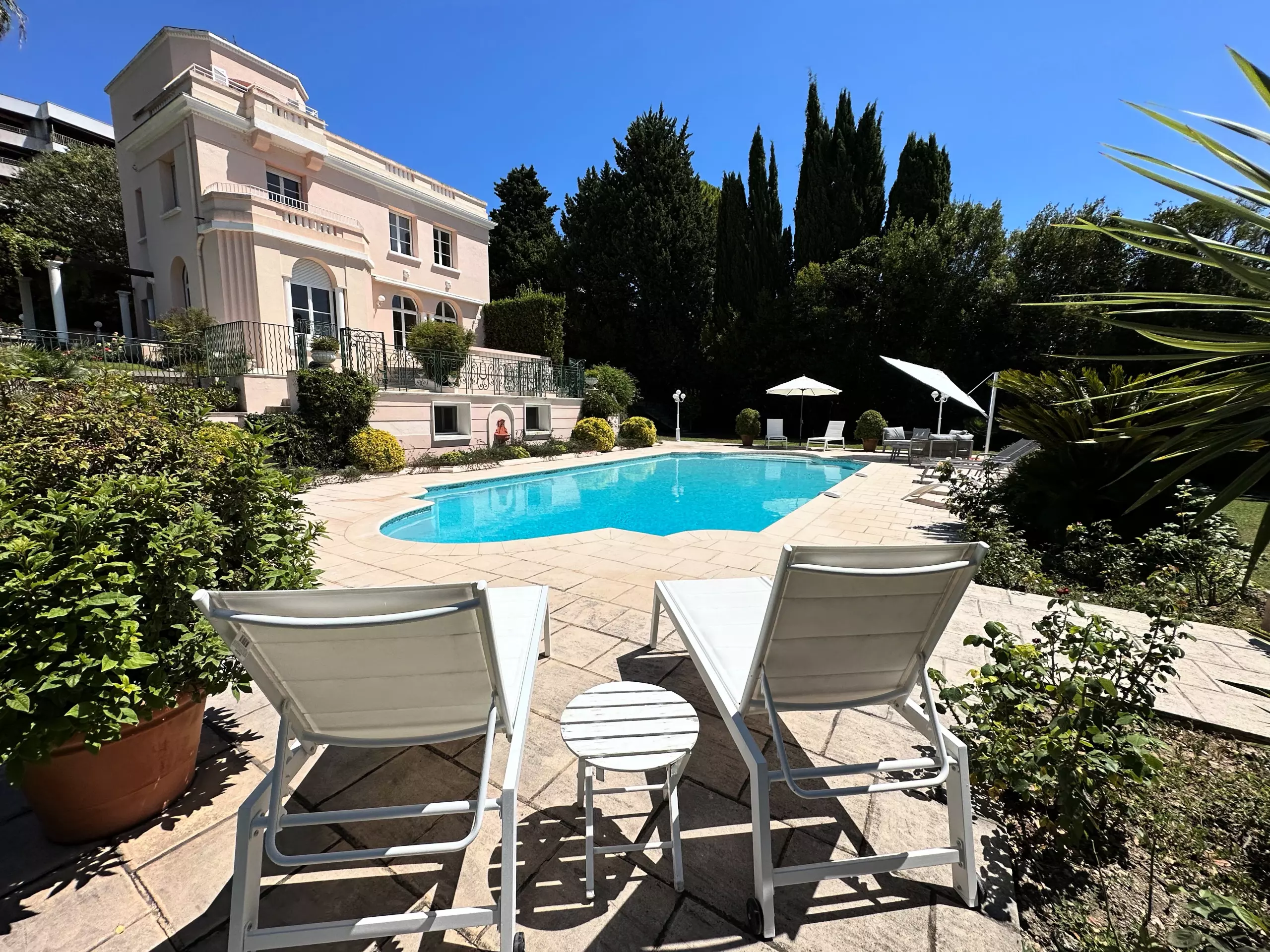 Nestled at the end of a lush 4240m² garden, this magnificent 290m² villa with a swimming pool in Cannes offers an unparalleled holiday experience on the French Riviera. With its spacious indoor and outdoor living areas, amenities, and prime location just minutes from the beaches and attractions of Cannes, this property promises an unforgettable vacation for up to 10 people.