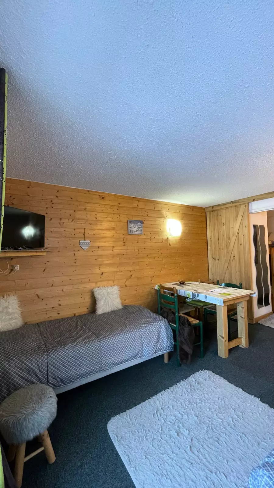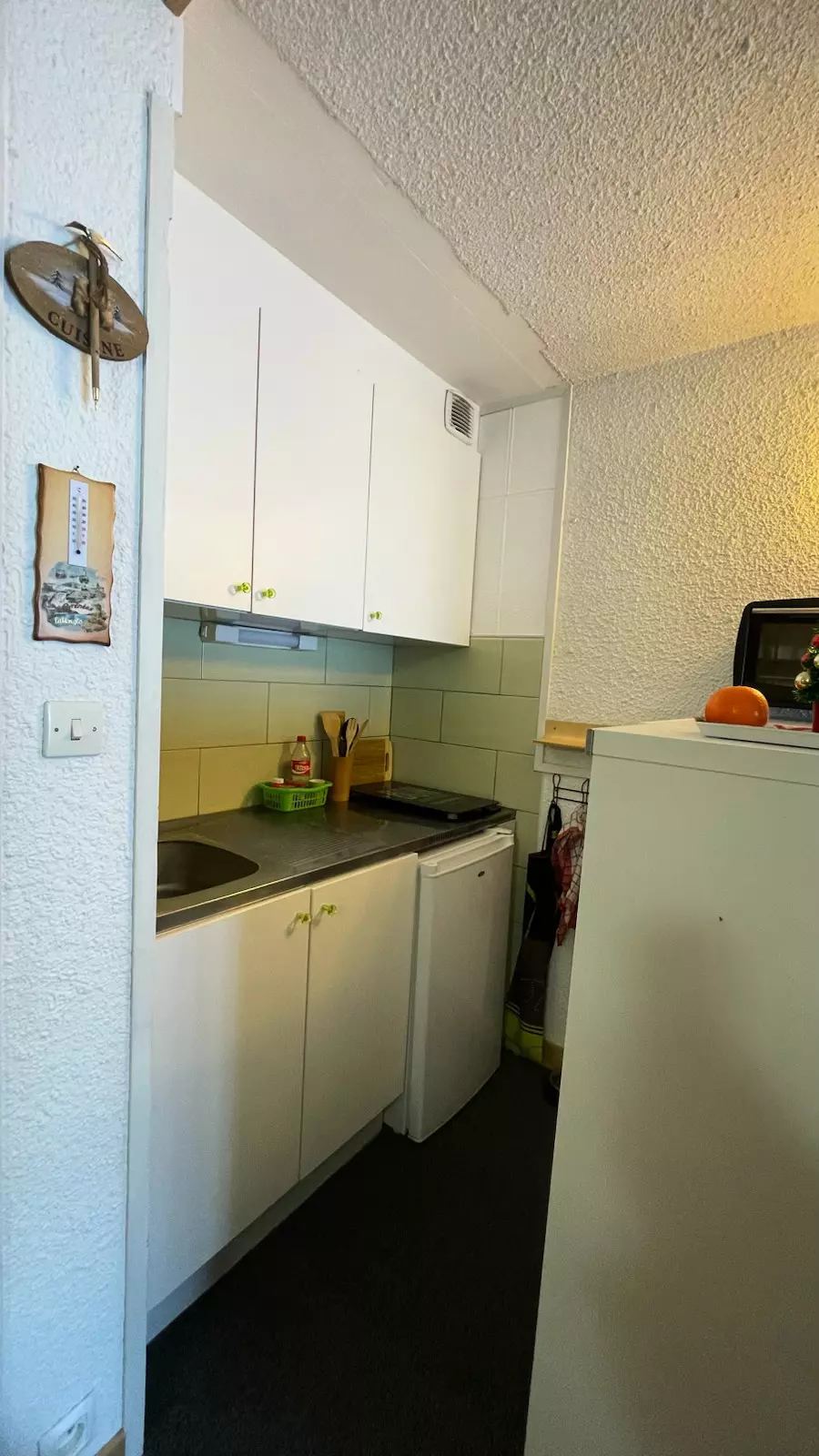 The advantages of your rental: Located on the 2nd floor with elevator access, this studio apartment boasts a south-facing aspect and a balcony with mountain views, ideal for enjoying a pleasant setting in any season. Its layout includes a sleeping alcove with bunk beds, a living room with two single beds, and a fully equipped semi-open kitchen, perfect for practical and comfortable stays. You'll appreciate its central village location, less than 100 meters from activities and the ski slopes, with shops nearby. A warm and well-designed base, ideal for a mountain getaway, whether as a couple or with friends.
