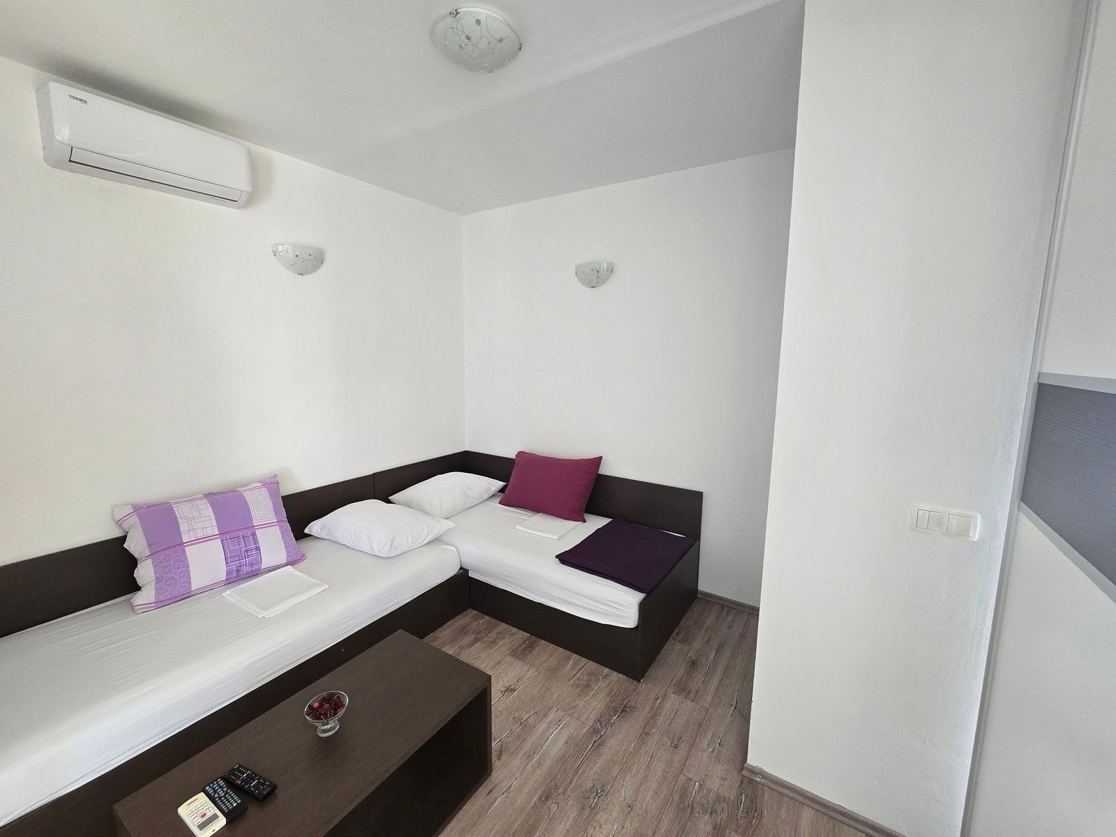 Apartment Marcela was renovated in 2016 and offers accommodation for a maximum of 4 people. It offers you 45 m2 of living space, and the nearest sea is only 100 meters away. This is a great opportunity to explore the depths of the sea and enjoy swimming or diving. The apartment is fully air-conditioned and has 2 bedrooms with 2 single beds and 1 double bed. There is also a bathroom with a shower.