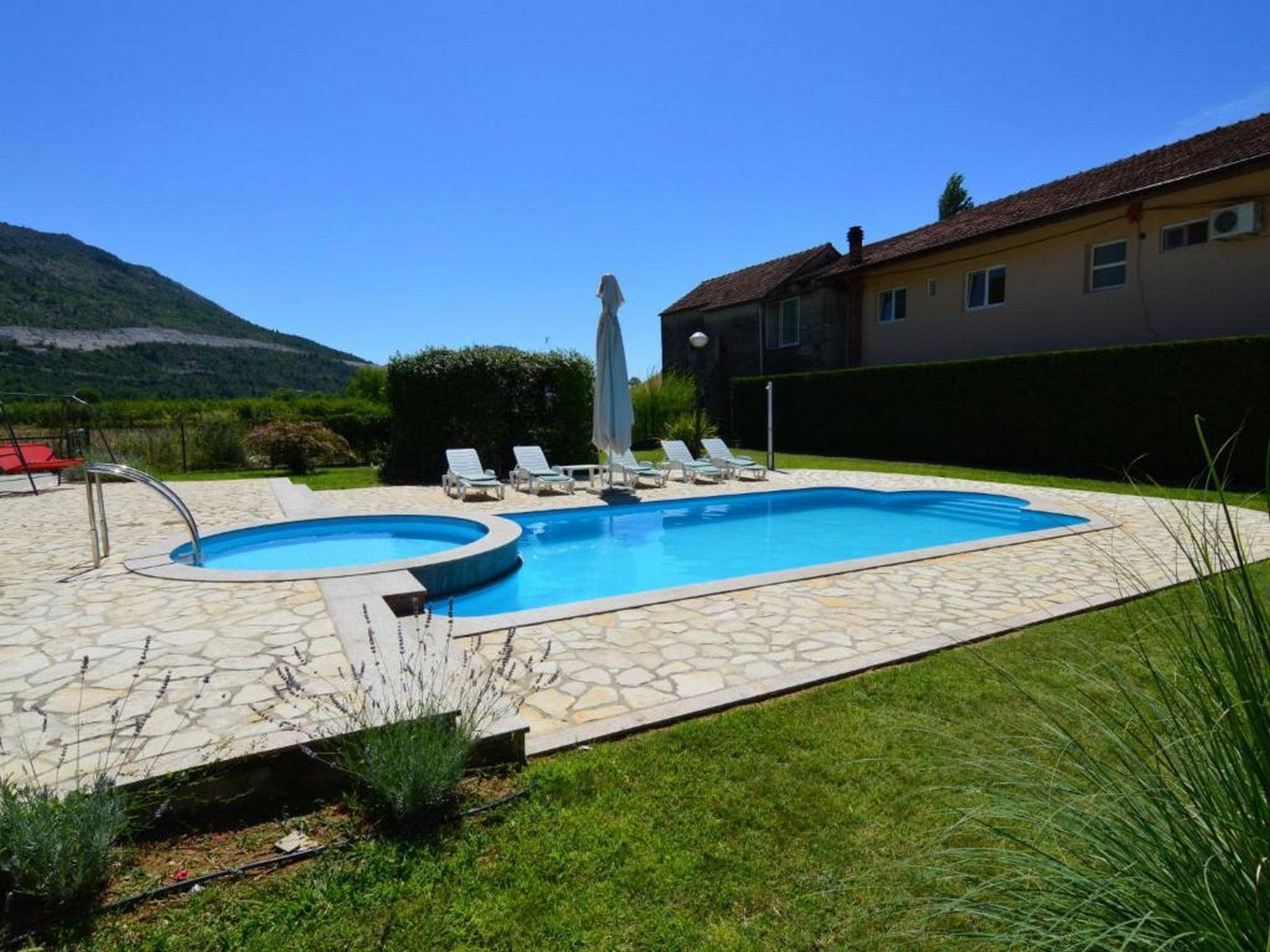 Holiday Home Nadalina was built in 2012 and offers accommodation for a maximum of 14, and optimally 12 people. It has 350 m2 of living space, while the total area of the property is 1250 m2. It is fully air-conditioned and offers 6 bedrooms: 2 single beds and 5 double beds. An additional two people can sleep in the living room on a sofa bed. There are also 6 bathrooms with a shower and 2 separate toilets. You can use a washing machine and iron, as well as a baby cot. The kitchen is fully equipped with everything you need to prepare delicious meals for family and friends, and there is also a hunting kitchen with a dining table where you can prepare traditional Dalmatian dishes on the grill. The living room has a sofa, TV and Android TV Box.