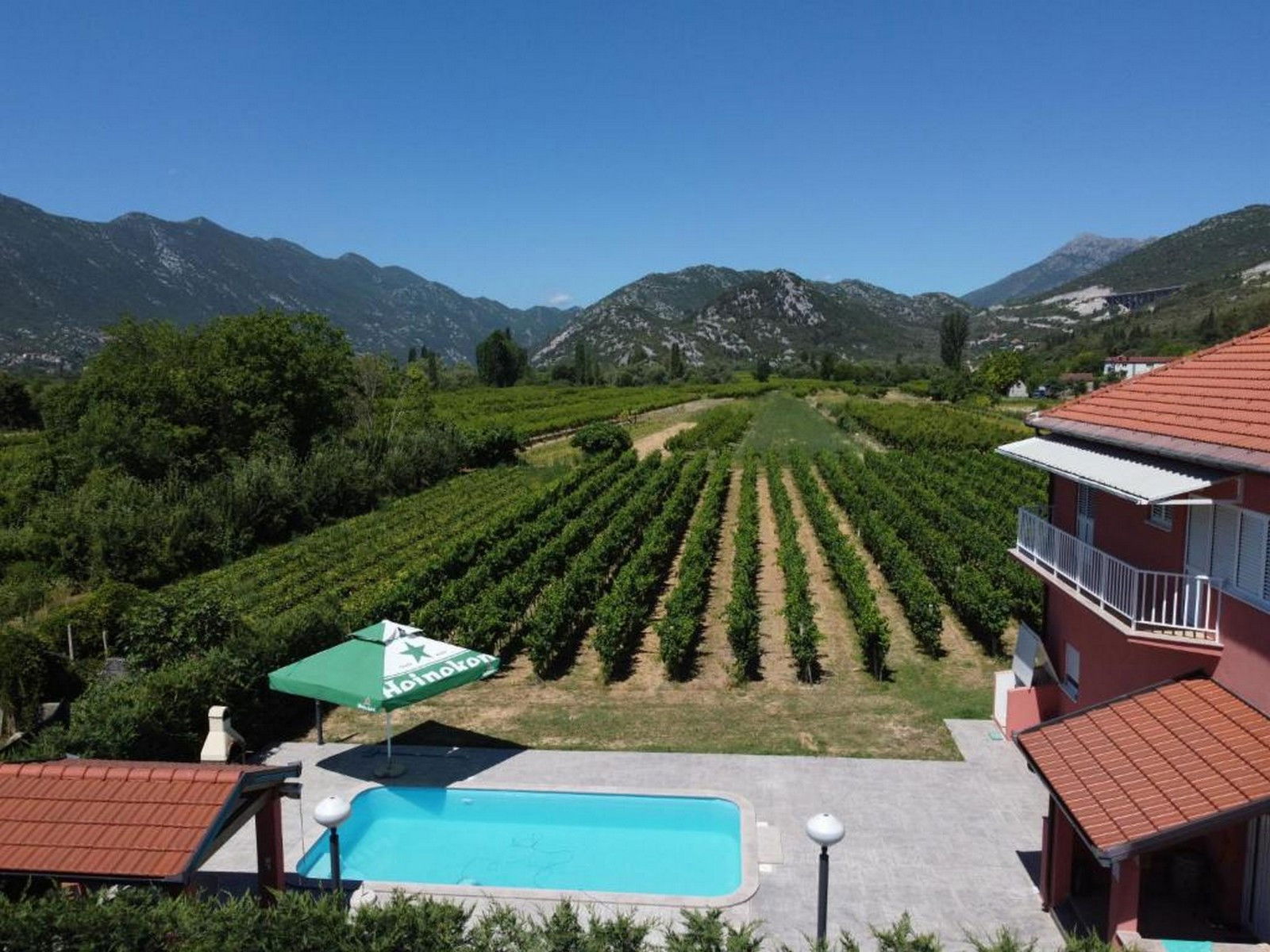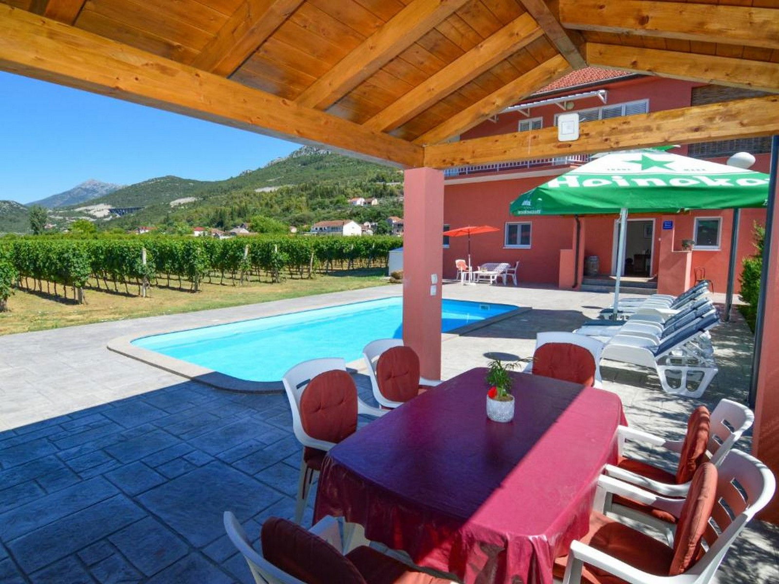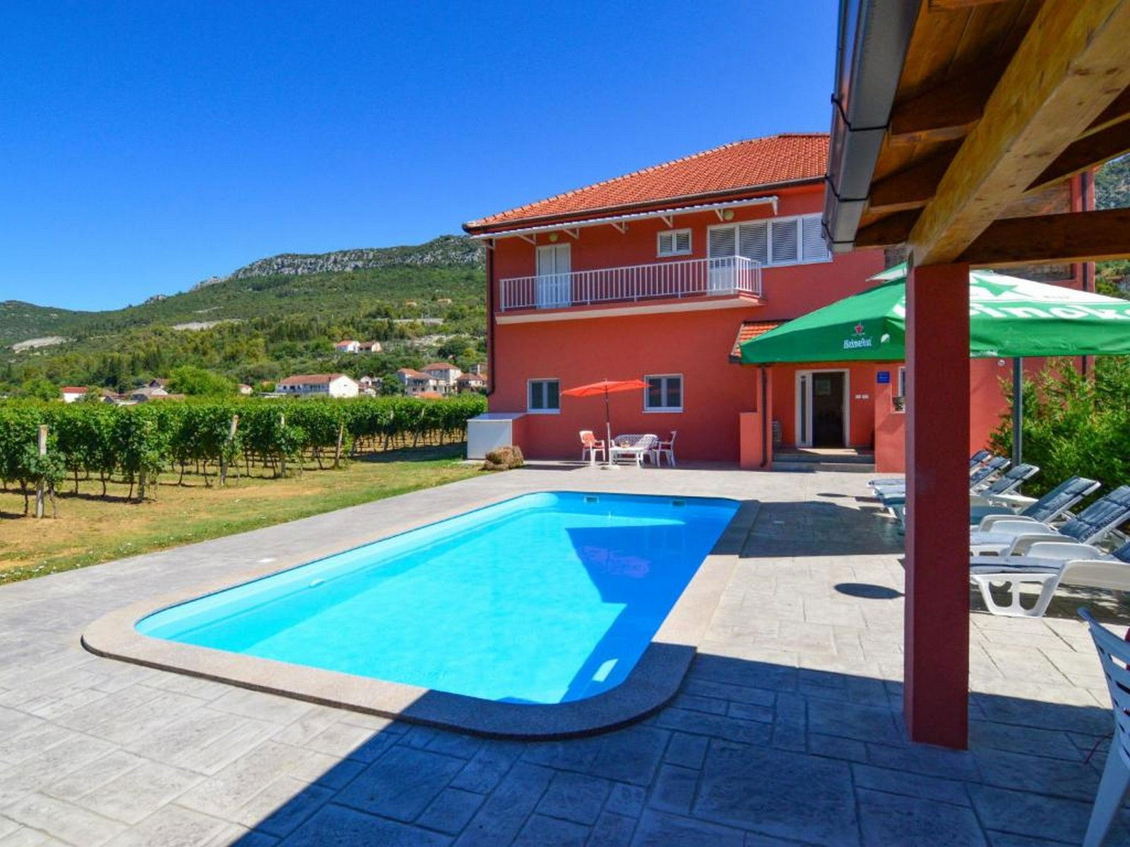 You will be especially impressed by the 32 m2 outdoor pool overlooking the vineyard. There are 8 sun loungers next to the pool.