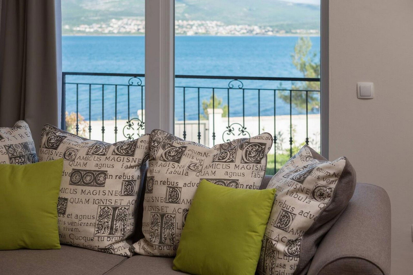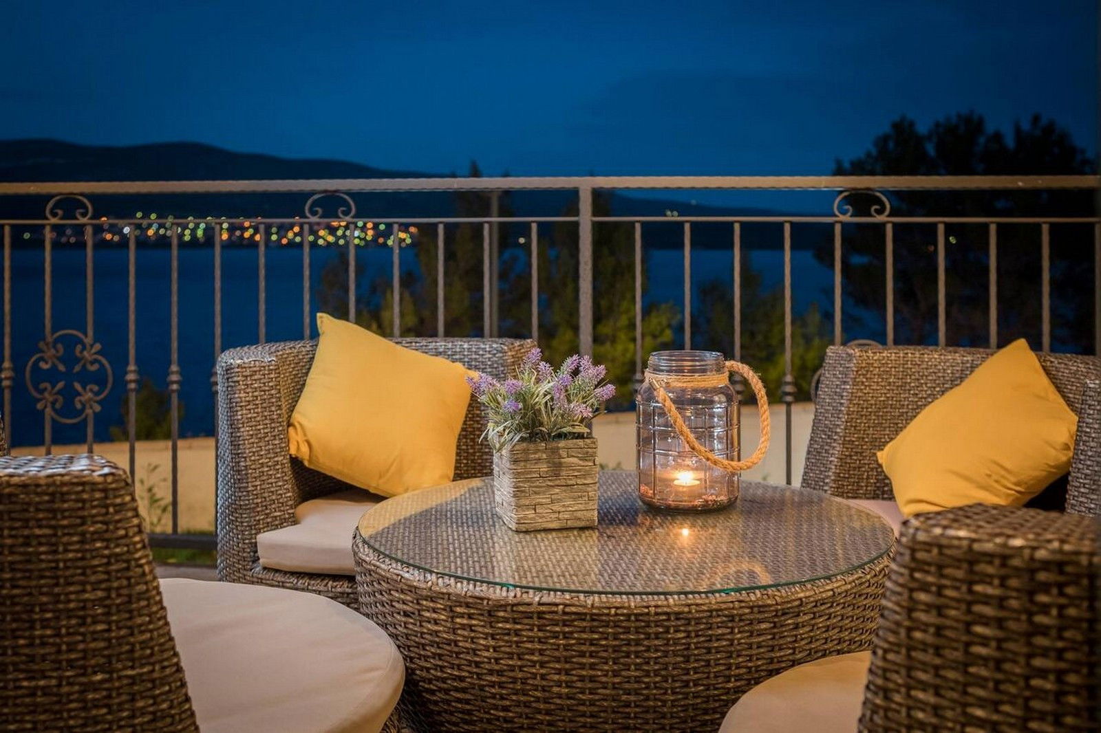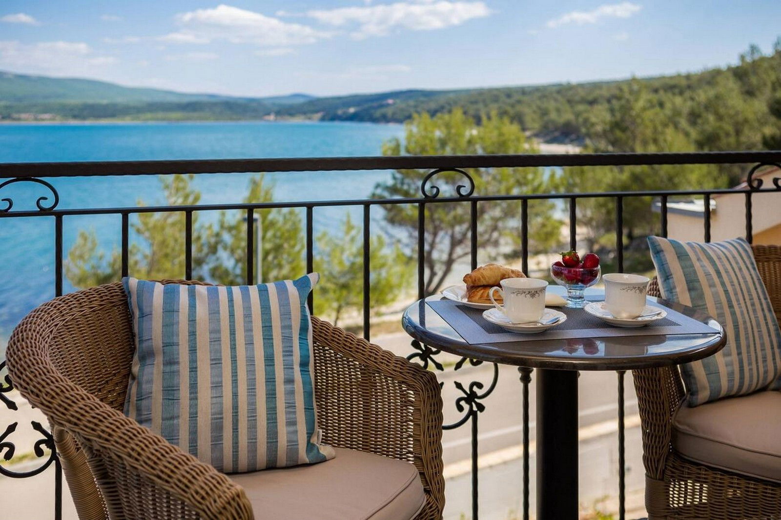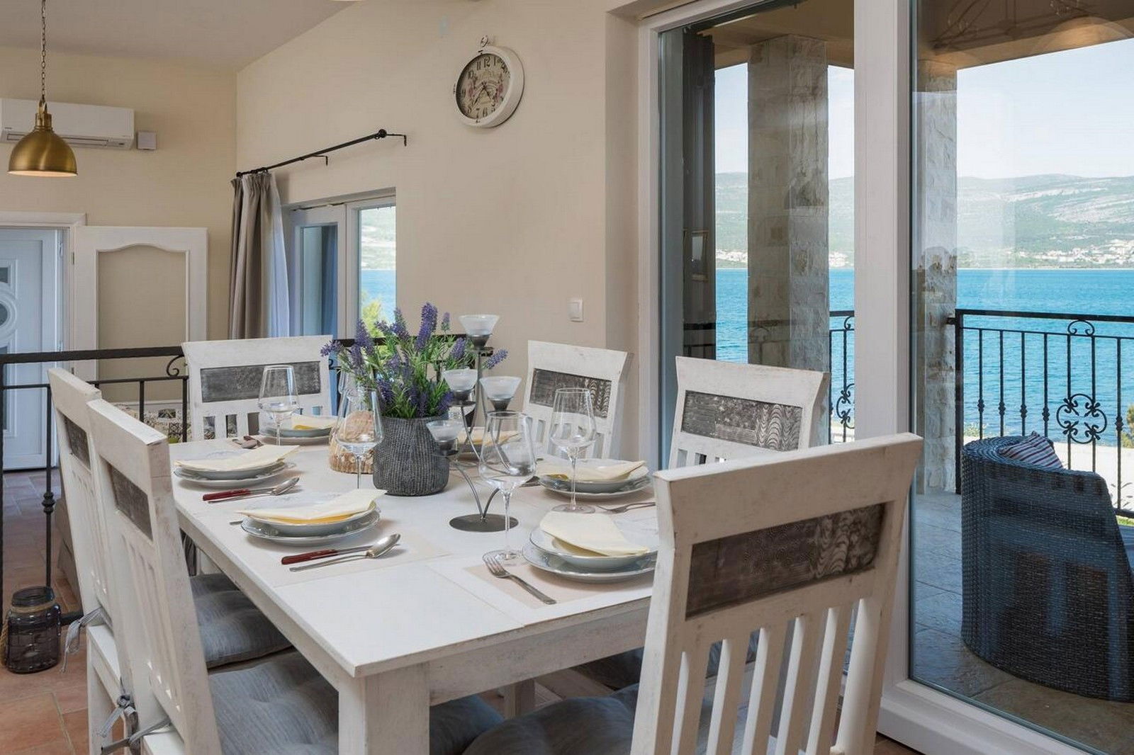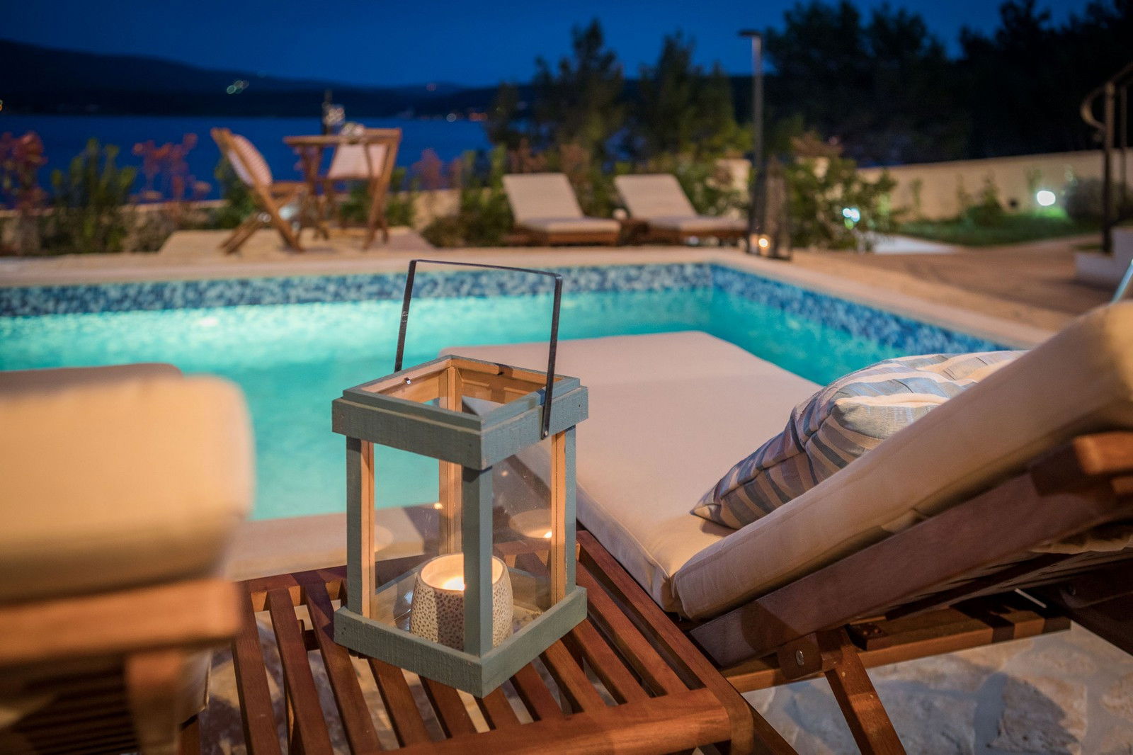 On the outdoor terrace, you will enjoy the view of the clean and clear sea, swimming in the 24 m2 heated pool. Next to it are 4 sun loungers and 2 parasols. There is also an outdoor shower and outdoor seating, perfect for drinking your morning coffee. You will also like the outdoor mini bar, as well as the outdoor dining table with 8 seats next to the fireplace.