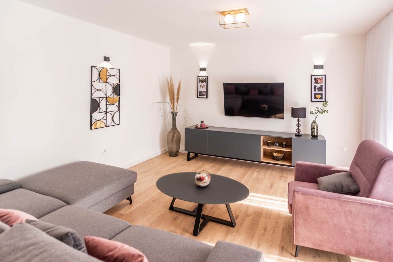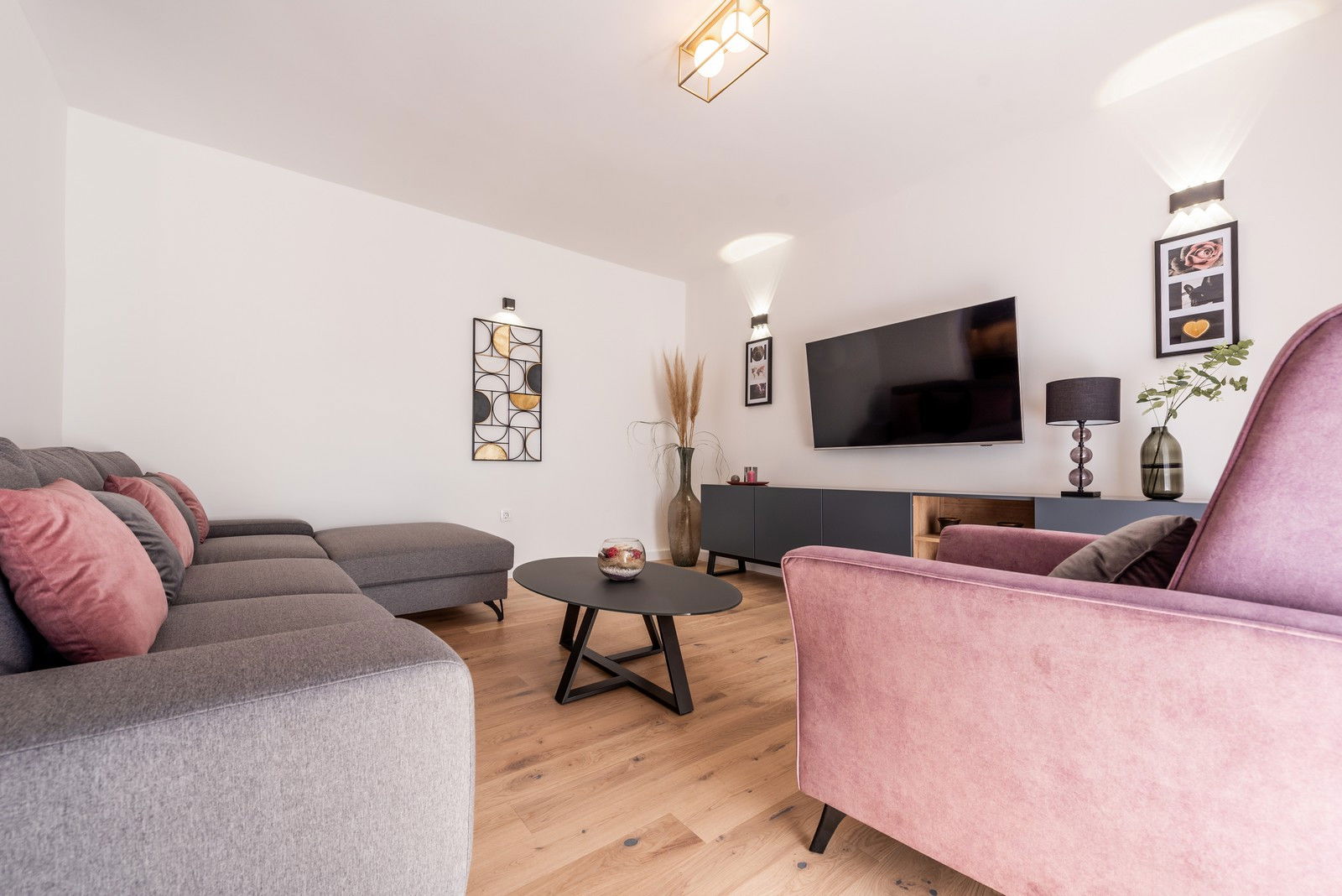 There is also a fully equipped kitchen where you can easily prepare meals for family and friends, and there is a dining room with a dining table. Right next to the dining room is the living room, which will be the ideal place to enjoy your favorite movies.
