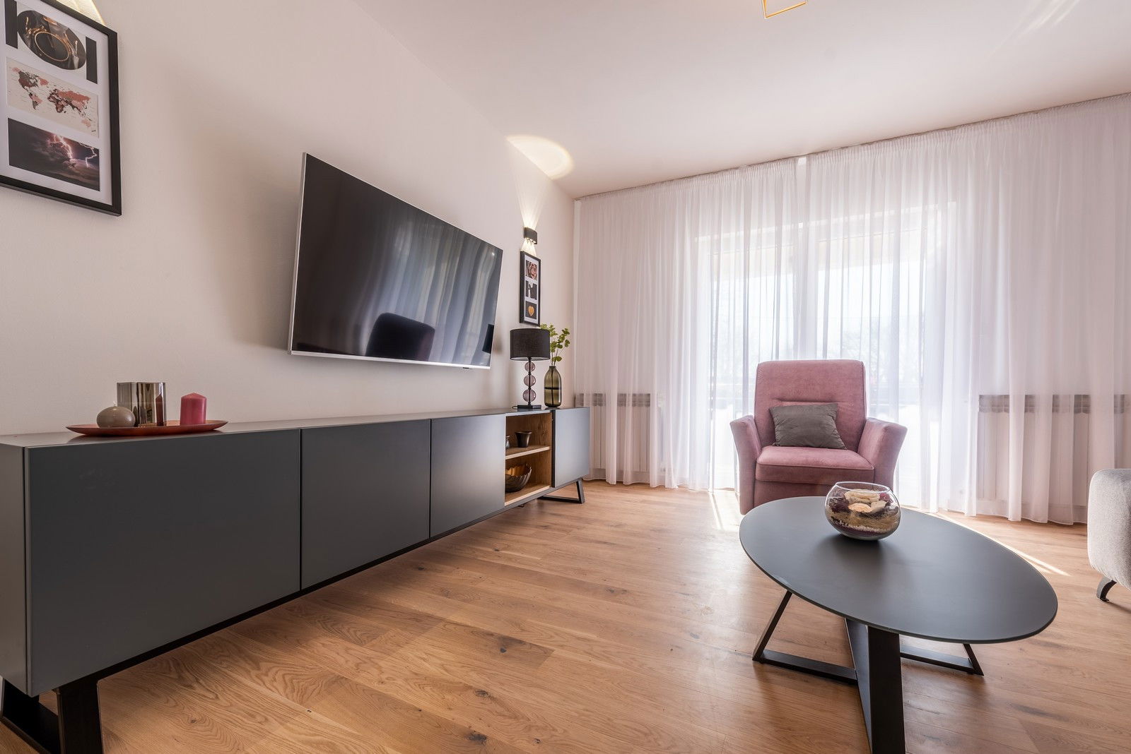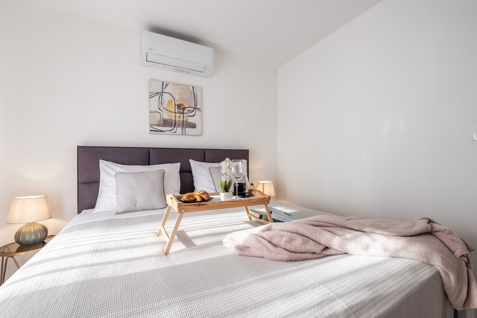 Built in 2022 in a contemporary style, it is fully air-conditioned, offers you 120 m2 of living space, and can accommodate a maximum of 6, and optimally 4 people. You will comfortably accommodate in 2 bedrooms with a double bed. As an additional bed, you can use a sofa bed for 2 people. Both rooms have a TV, air conditioning and a safe. You will also use 2 bathrooms with showers.