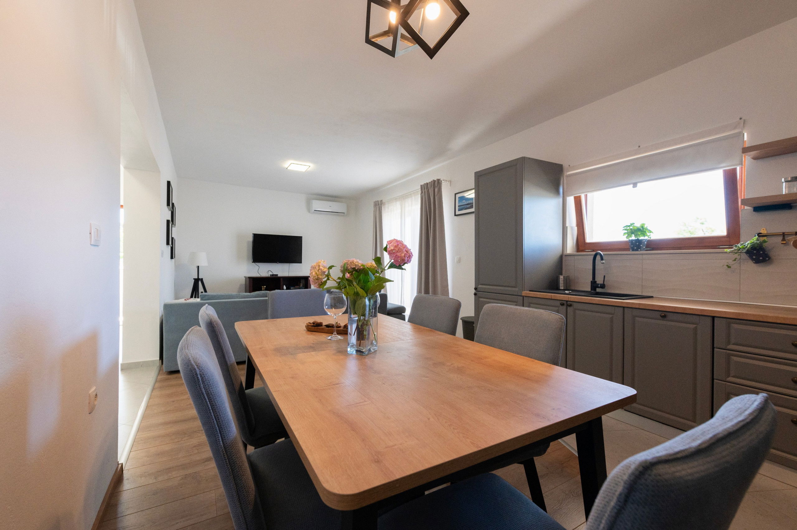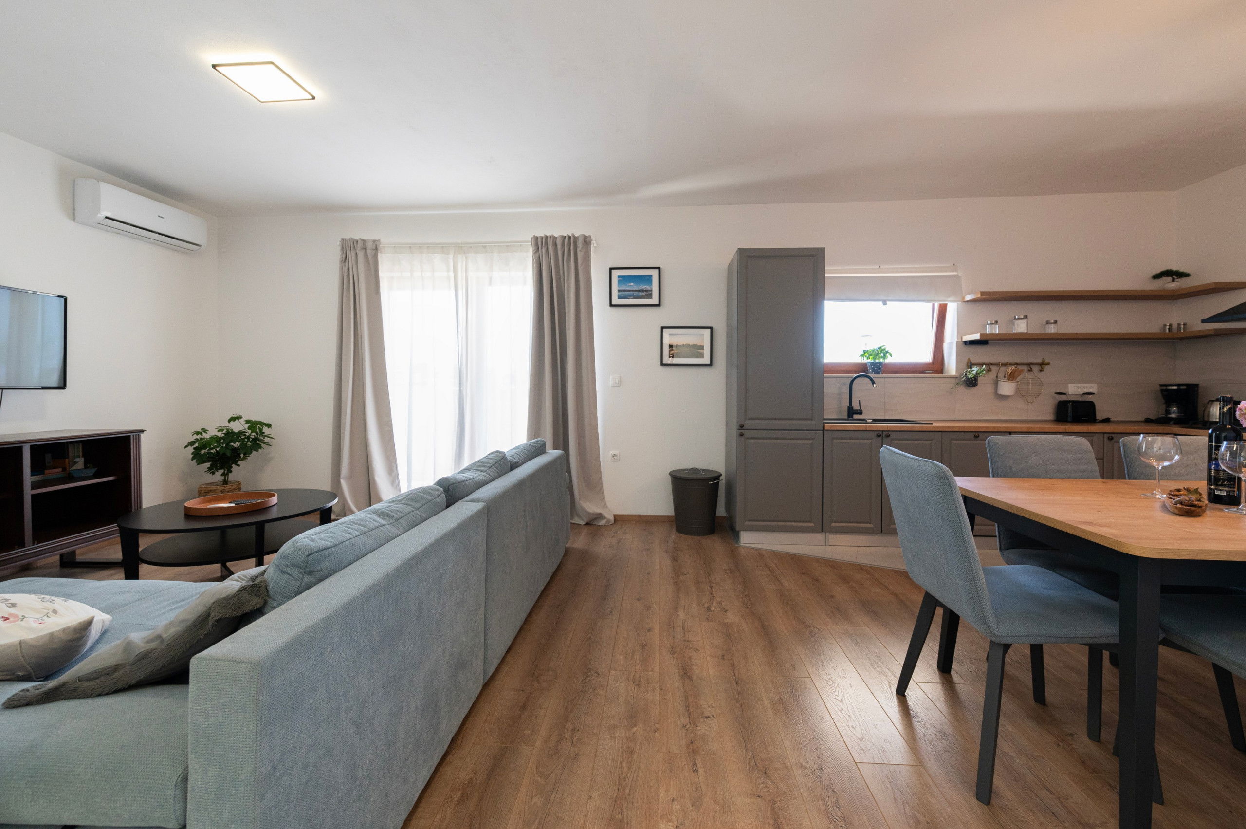 Seafront apartment Elona was renovated in 2021, it is only 15 meters away from the Adriatic Sea, it's located on the ground floor of a residential house and is a beautiful object that you will fully enjoy. With its area of 85 m2 of living space, it offers accommodation for a maximum of 5 people. You will comfortably accommodate in 2 bedrooms, each with a double bed (160x200). There are also 2 bathrooms with a shower. As additional facilities, you can use a washing machine, iron and hairdryer.