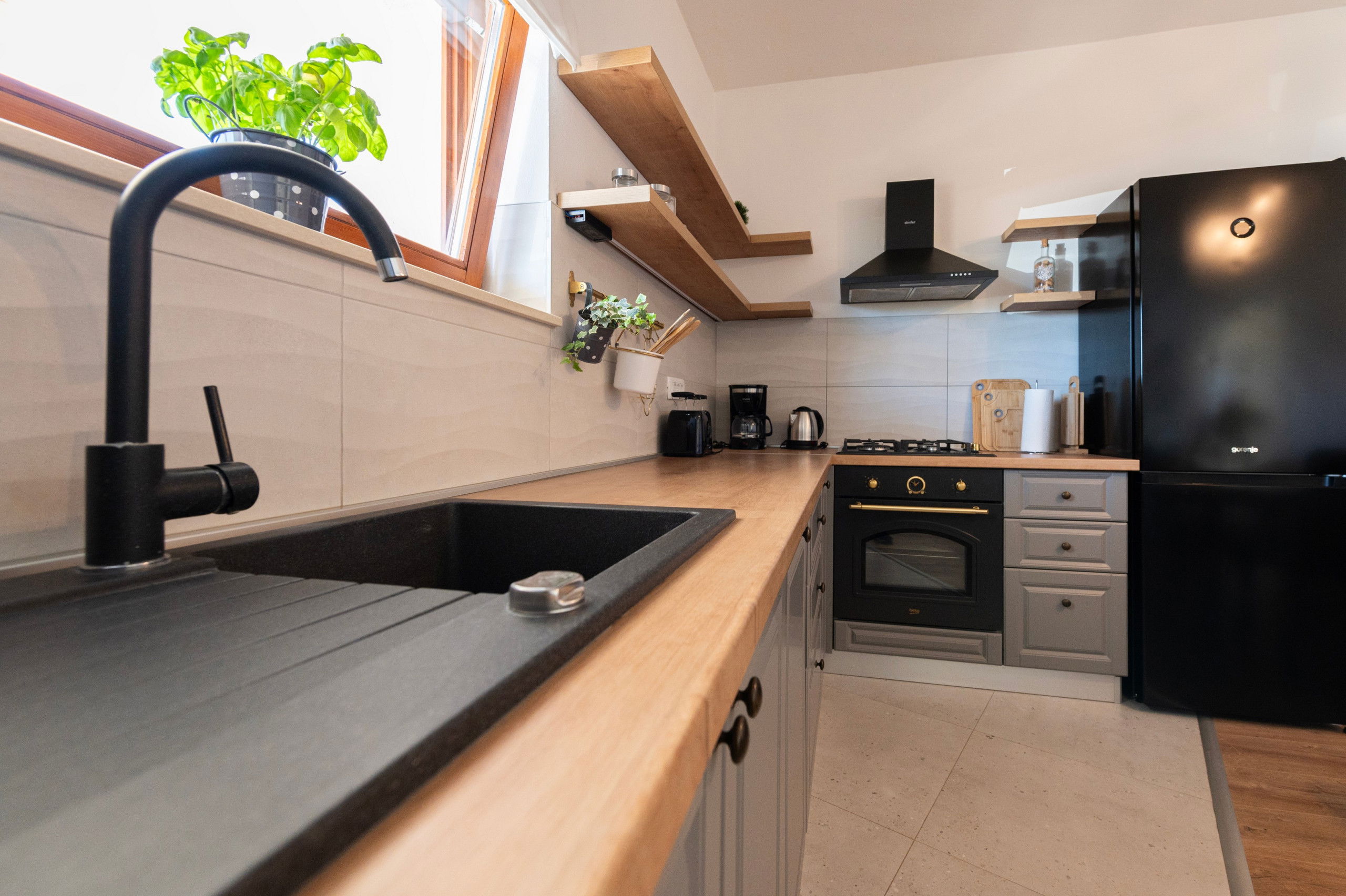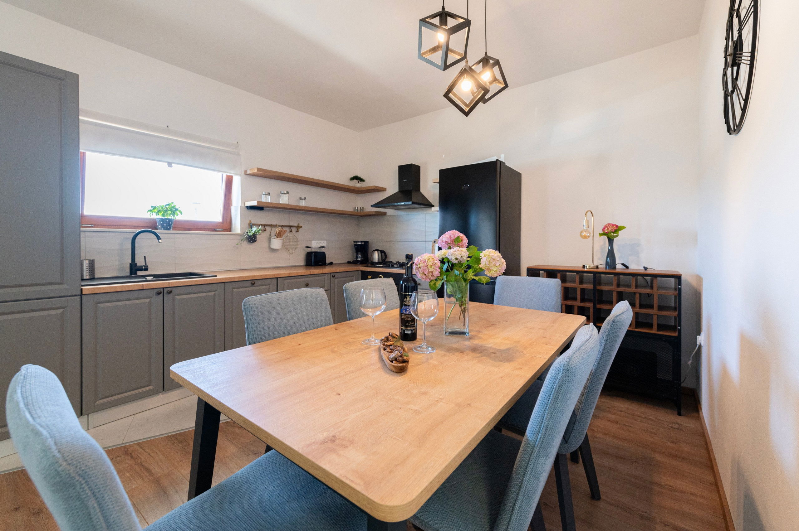 The modern kitchen is equipped with everything you need so that you can prepare your favorite dishes for family or friends without any problems. The living room with a corner sofa will be an ideal place for evening socializing with your favorite movies for the whole family. An additional person can sleep on a sofa bed. The dining room is located between the kitchen and the living room and has 6 seats.