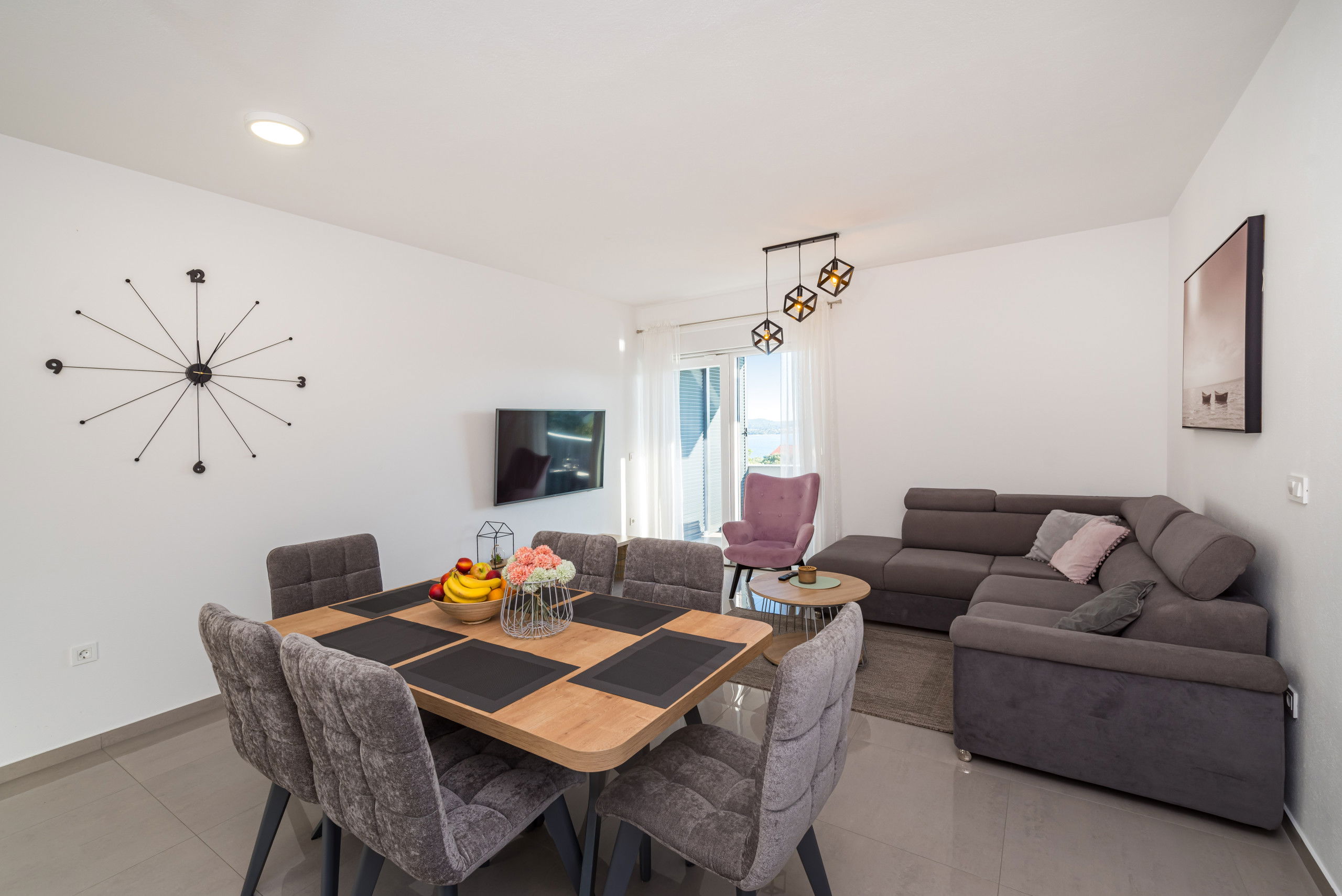 Apartment Vista Mare 1 is part of a complex consisting of 2 apartments, both located on the 1st floor, but with separate entrances. The second apartment is called Vista Mare 2. Each of the aforementioned apartments is booked separately, the only thing they have in common is an outdoor terrace with a heated pool.