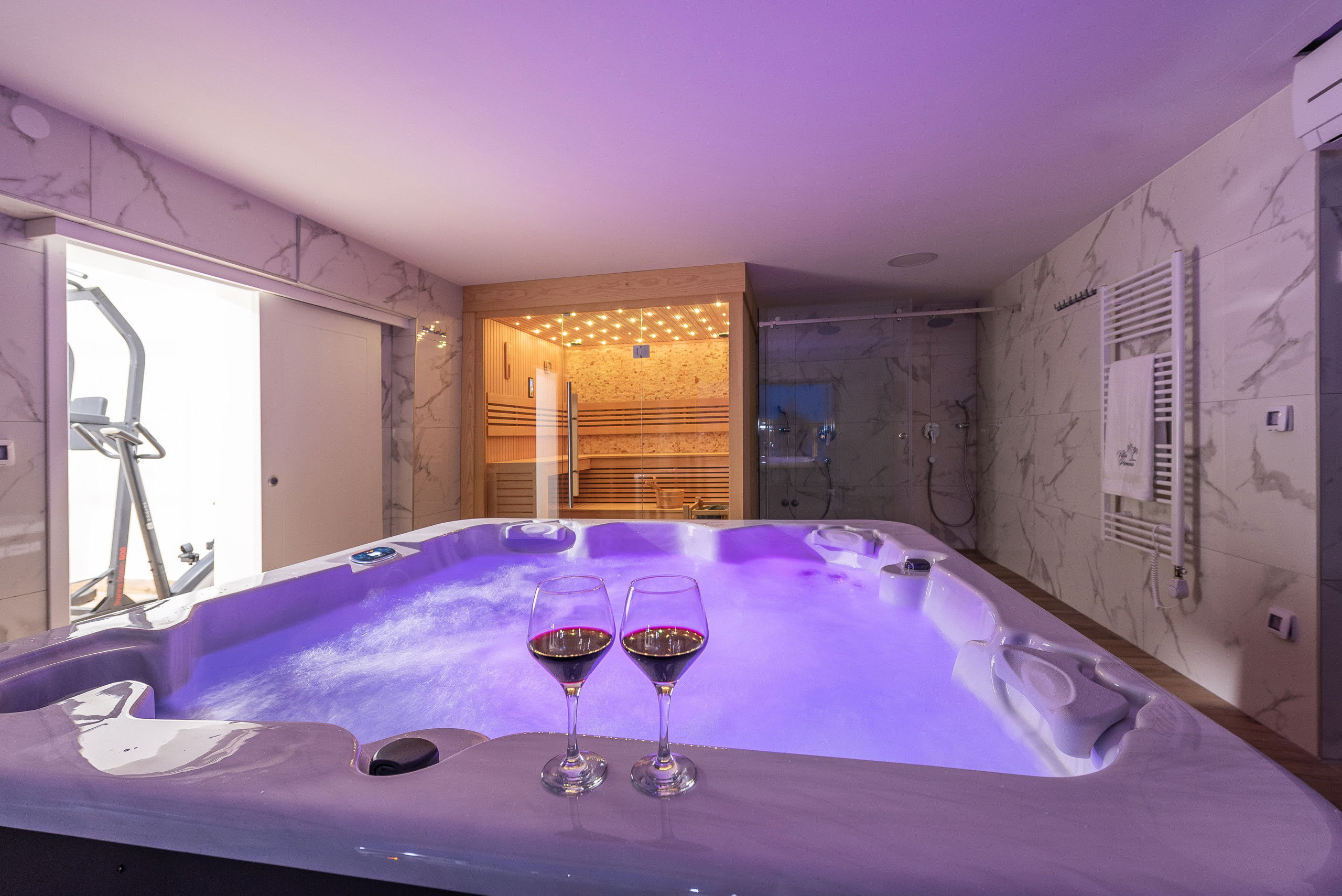 For all those who love an active holiday, there are also several exercise machines at your disposal. A jacuzzi and sauna offer you complete luxury.