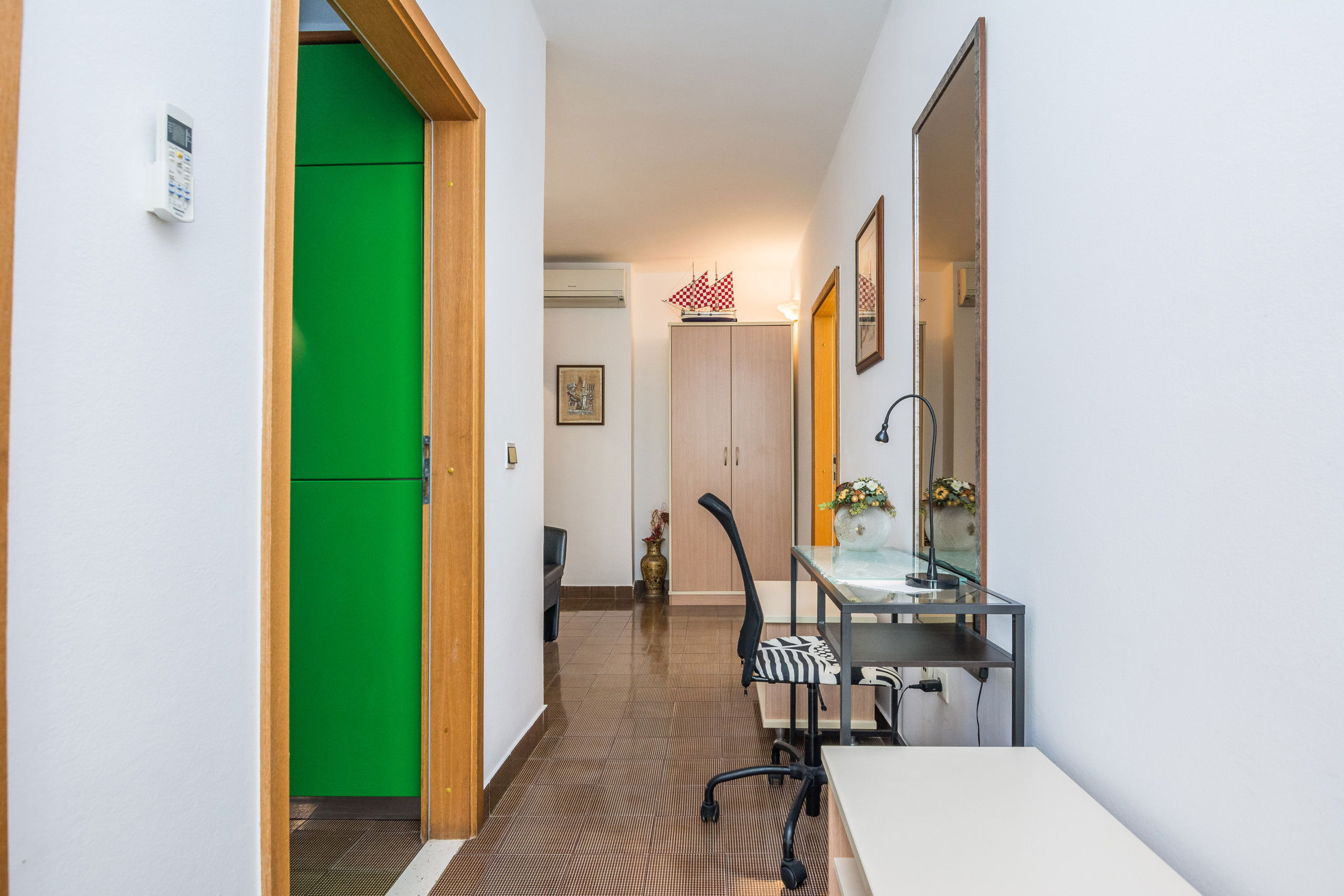 Apartment 4 is located on the 1st floor of the house and offers 75 m2 of living space. It can accommodate a maximum of 4 people. You will be comfortably accommodated in 2 bedrooms with double beds. You will also use 1 bathroom with a shower. The bedroom also has a private terrace. The apartment is air-conditioned and has WiFi. The kitchen is fully equipped so you can easily prepare meals for family and friends. There is also a dining room with a dining table, and a living room with a TV.