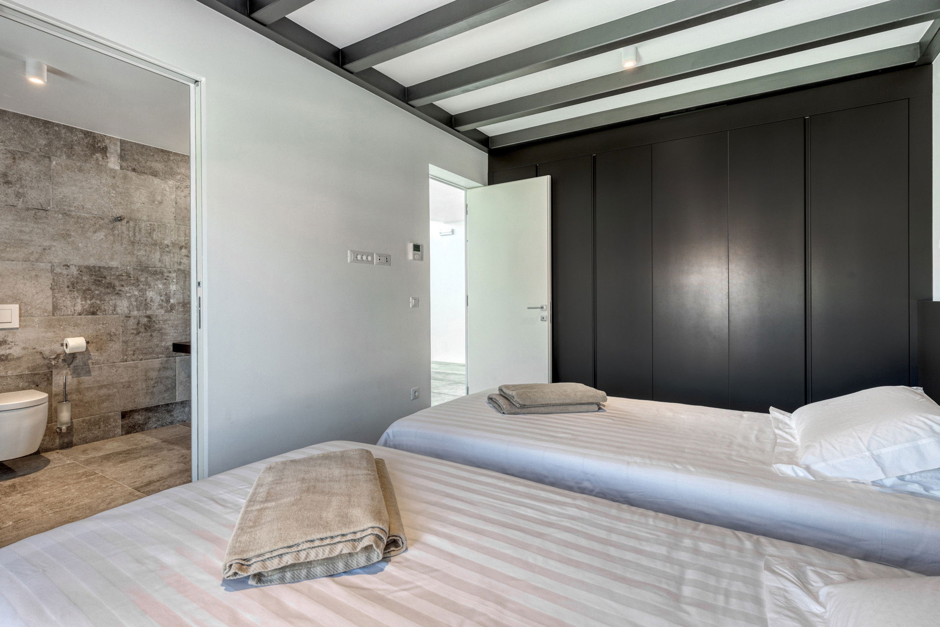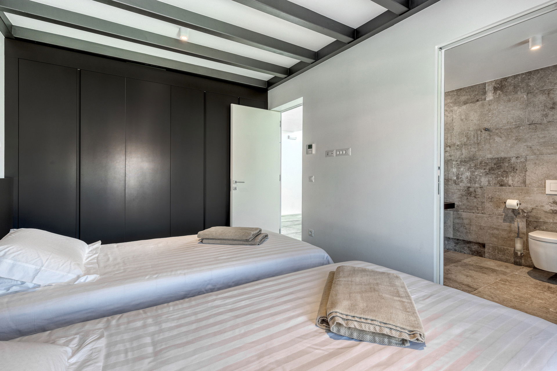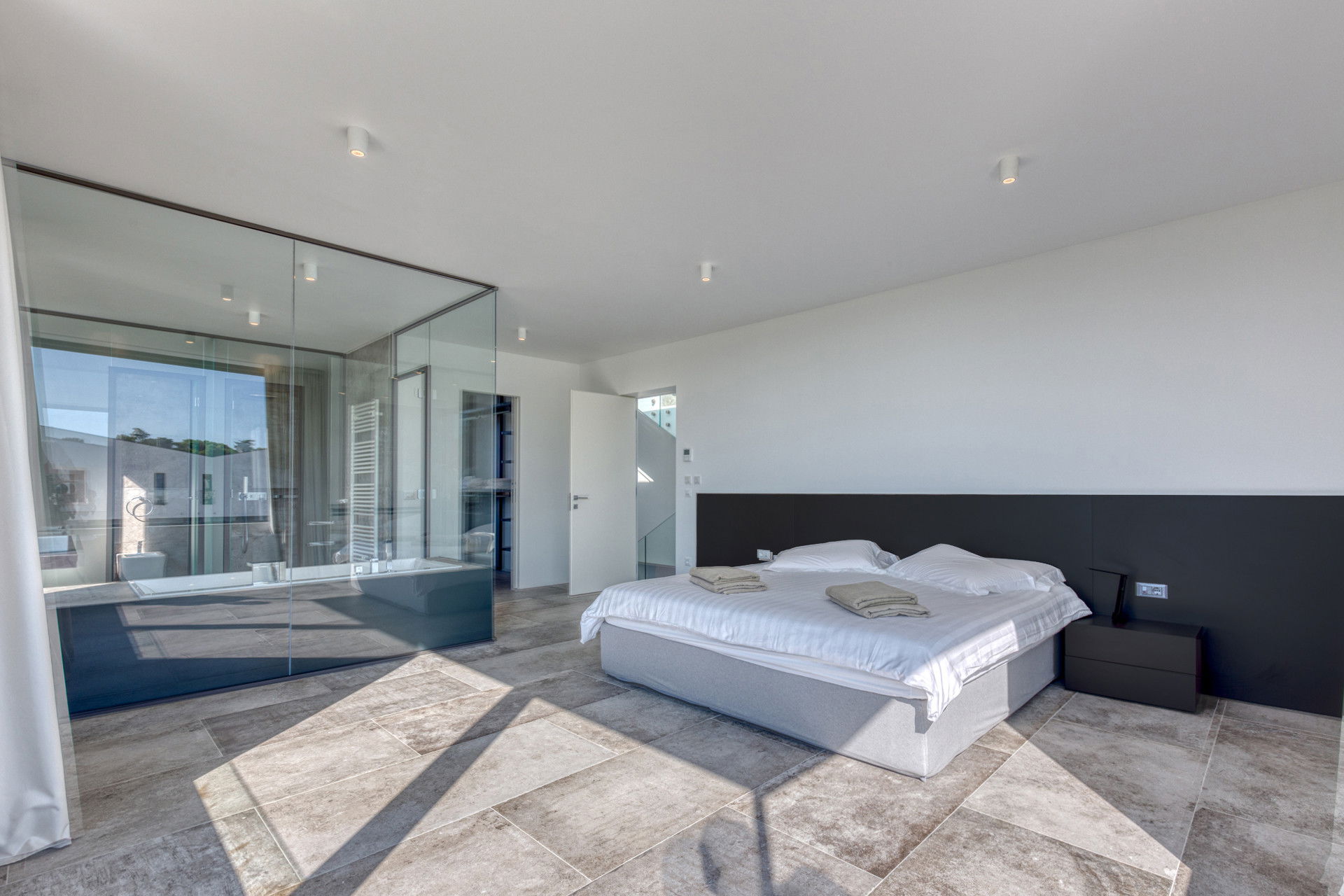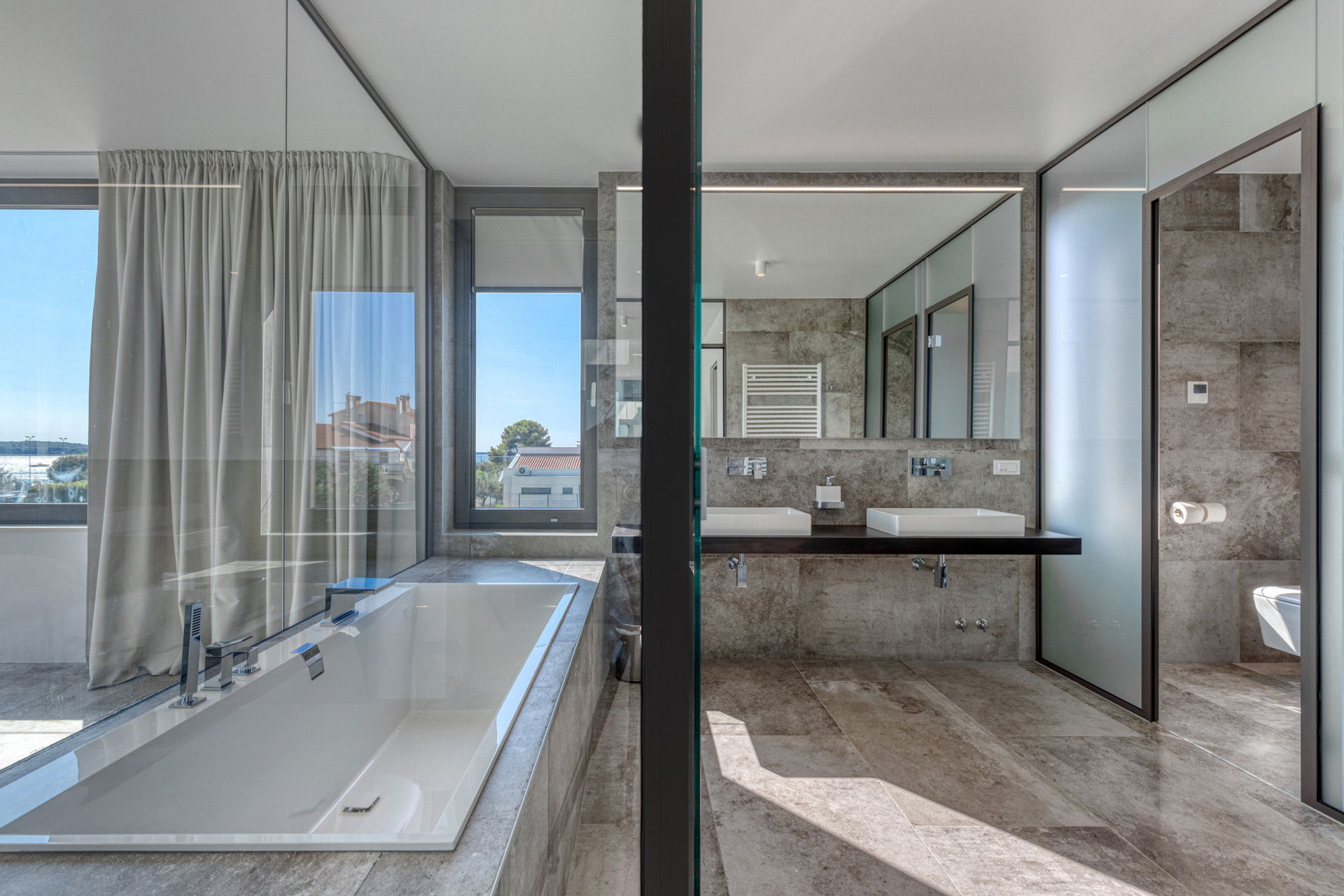 Villa A is ready to offer 350 m2 of living space and open its doors to a maximum of 10 people. This villa will delight you with its luxury, comfort and relaxing atmosphere. There are 5 bedrooms with their own en suite bathrooms, one of which has a bathtub, while the remaining four have a shower. On the second floor there is a spacious terrace overlooking the sea where there are stools and a coffee table.