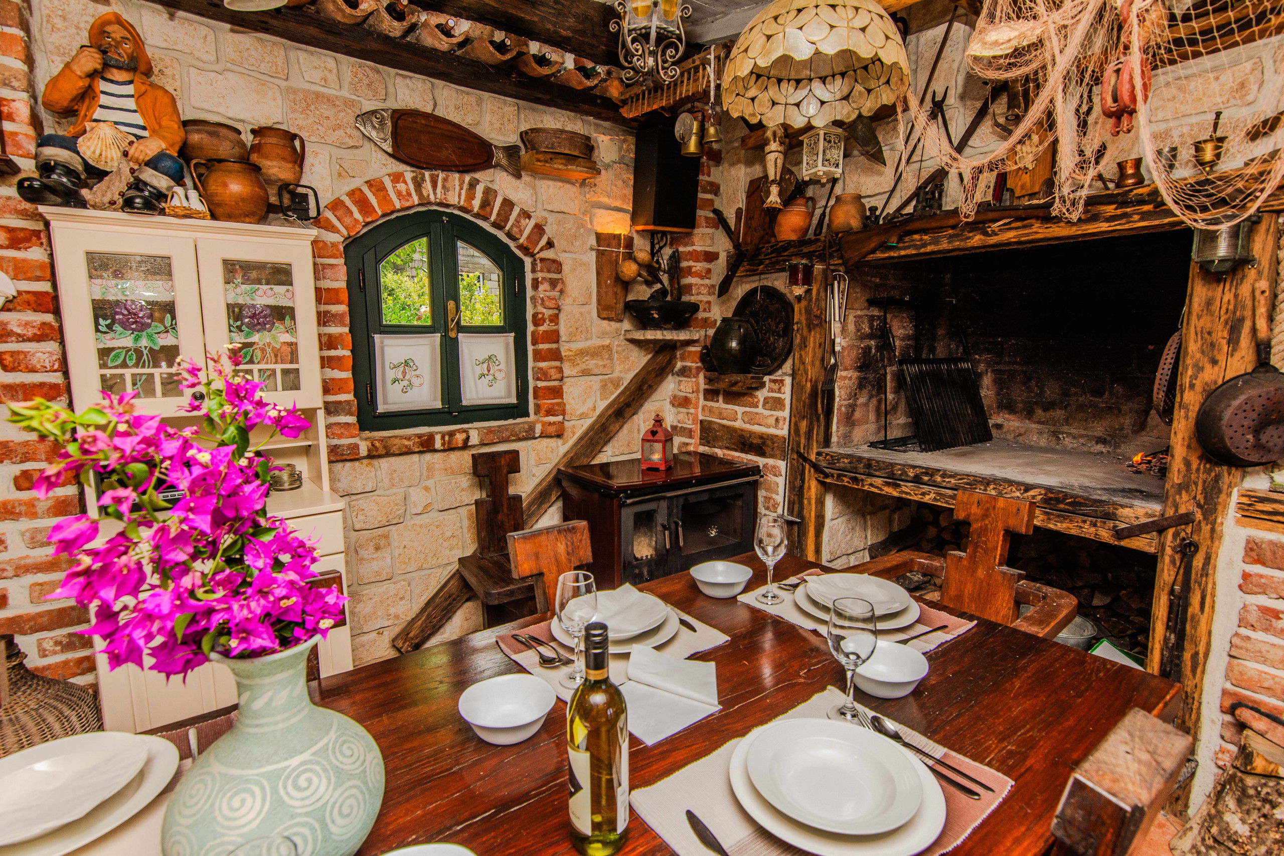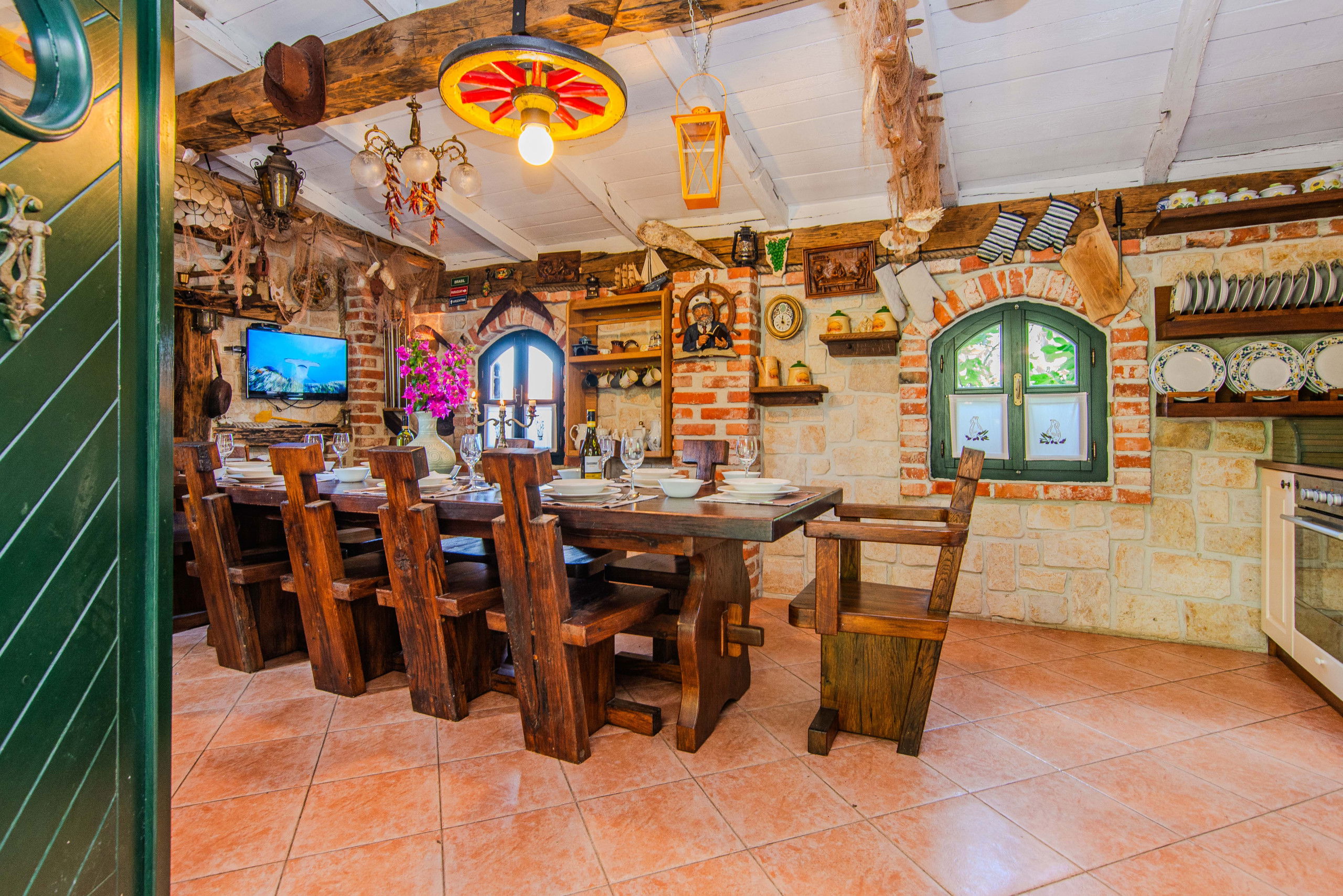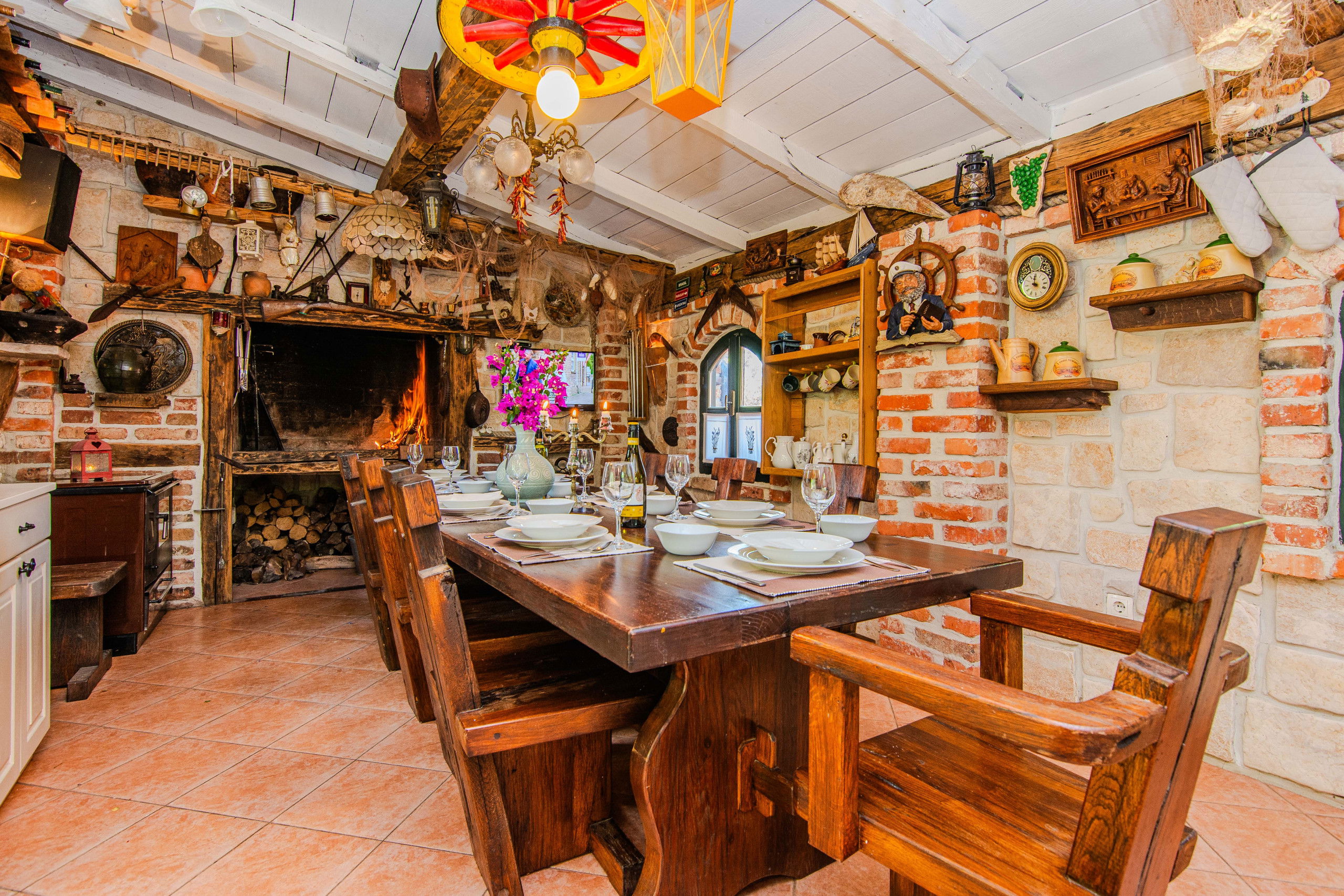 The house consists of a ground floor and a floor, offering accommodation for up to 8 guests in 4 comfortable bedrooms with large double beds (180 x 200 cm). Two bedrooms are located on the ground floor, while the remaining two are on the floor, ensuring additional privacy and comfort. The property includes two bathrooms in total and one separate toilet, making it ideal for larger groups. There is also a traditional-style tavern with a fully equipped kitchen where you will find everything you need to prepare delicious meals and unforgettable evenings.