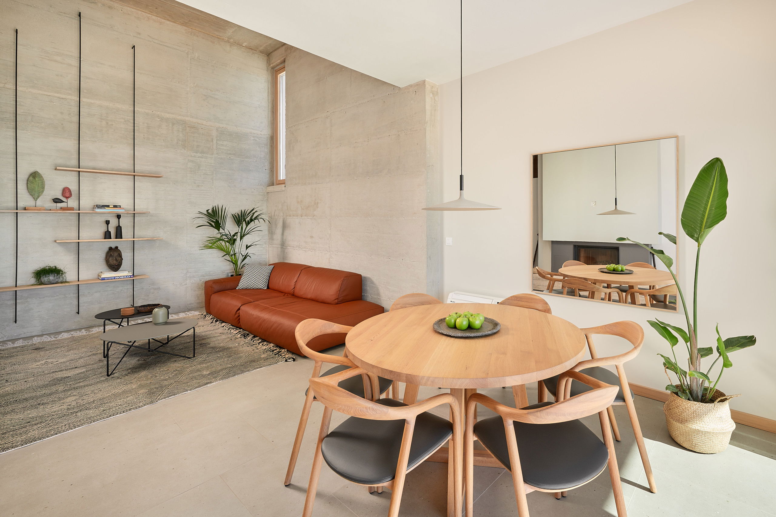 On the ground floor, you will find a modern, fully equipped indoor kitchen, a spacious dining area, and a comfortable living room with large glass doors that open directly onto the terrace and pool. The open-concept design provides a sense of spaciousness and seamlessly connects the indoor and outdoor living areas.
