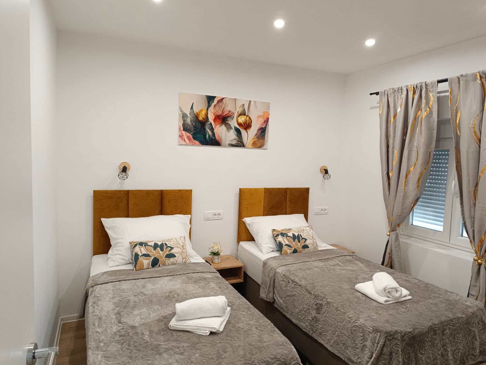 Apartment Perla is fully equipped to make your stay carefree and enjoyable. It consists of 3 bedrooms, one modern bathroom, a fully equipped kitchen and a bright living room. This apartment can accommodate a maximum of 6 people, and optimally 5 people. One bedroom has 1 single bed, the second room has a double bed, while the third bedroom has 2 single beds. An additional person can sleep on the sofa in the living room. Next to the bathroom you can use another regular toilet.
