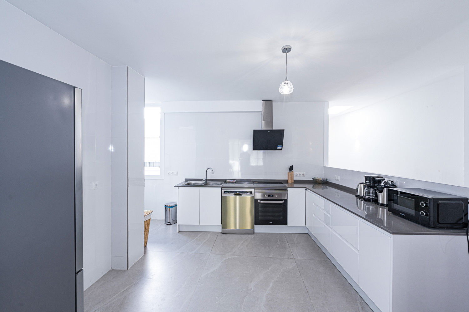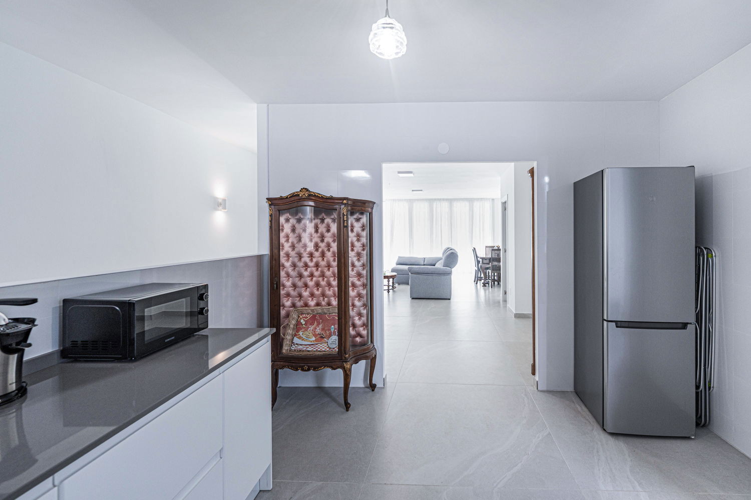Indoor and outdoor living: The heart of the house is an exceptionally spacious and bright living room, connected directly to the outdoor terrace facing the main street. This fluidity allows the breeze from the centre to cool the entire room. The kitchen has high-end appliances and is fully equipped with everything you need for your stay, including a dishwasher, oven and microwave. It is a functional and modern space, ideal for preparing everything from a quick coffee before heading to the beach to a full family dinner.