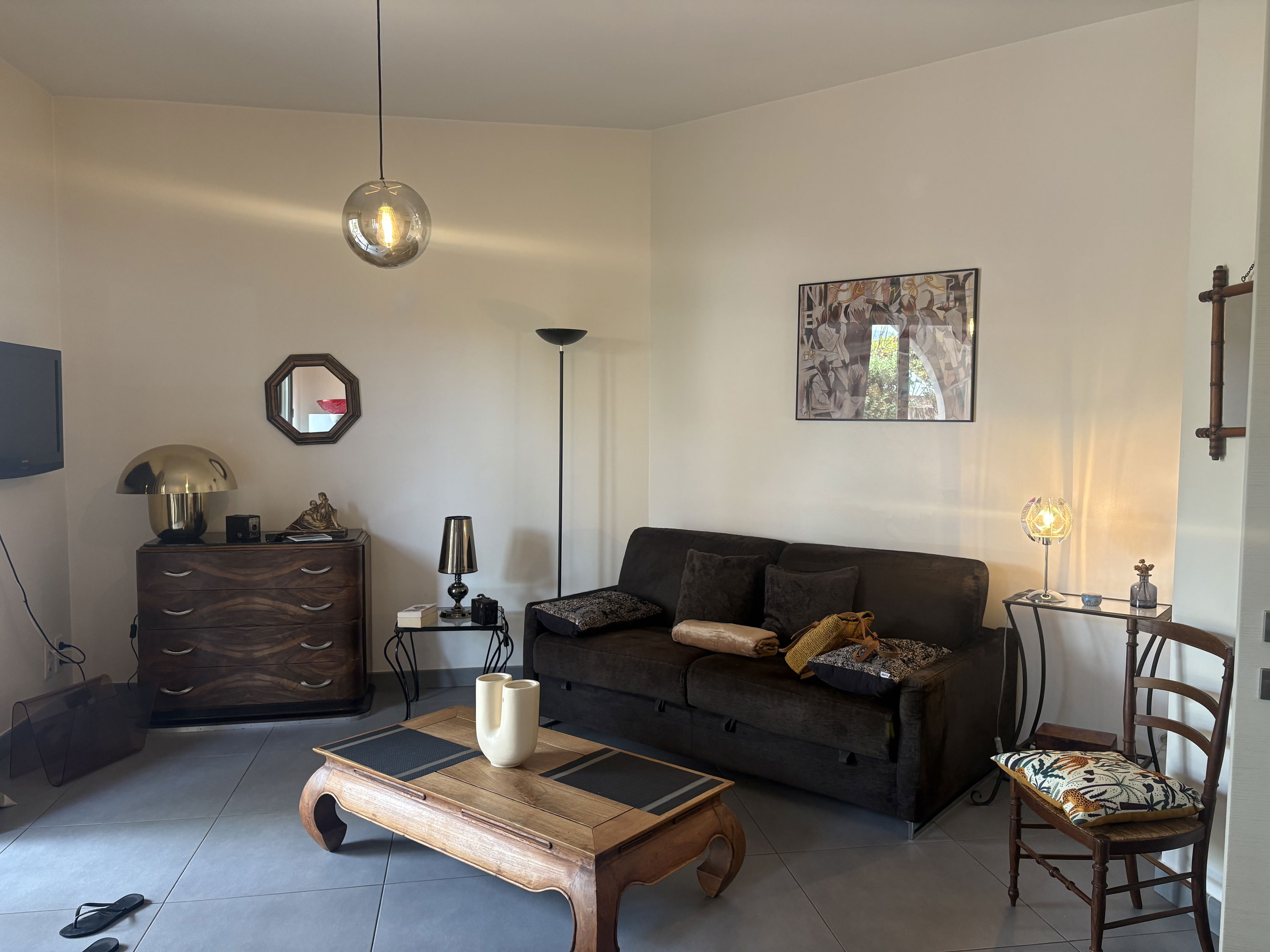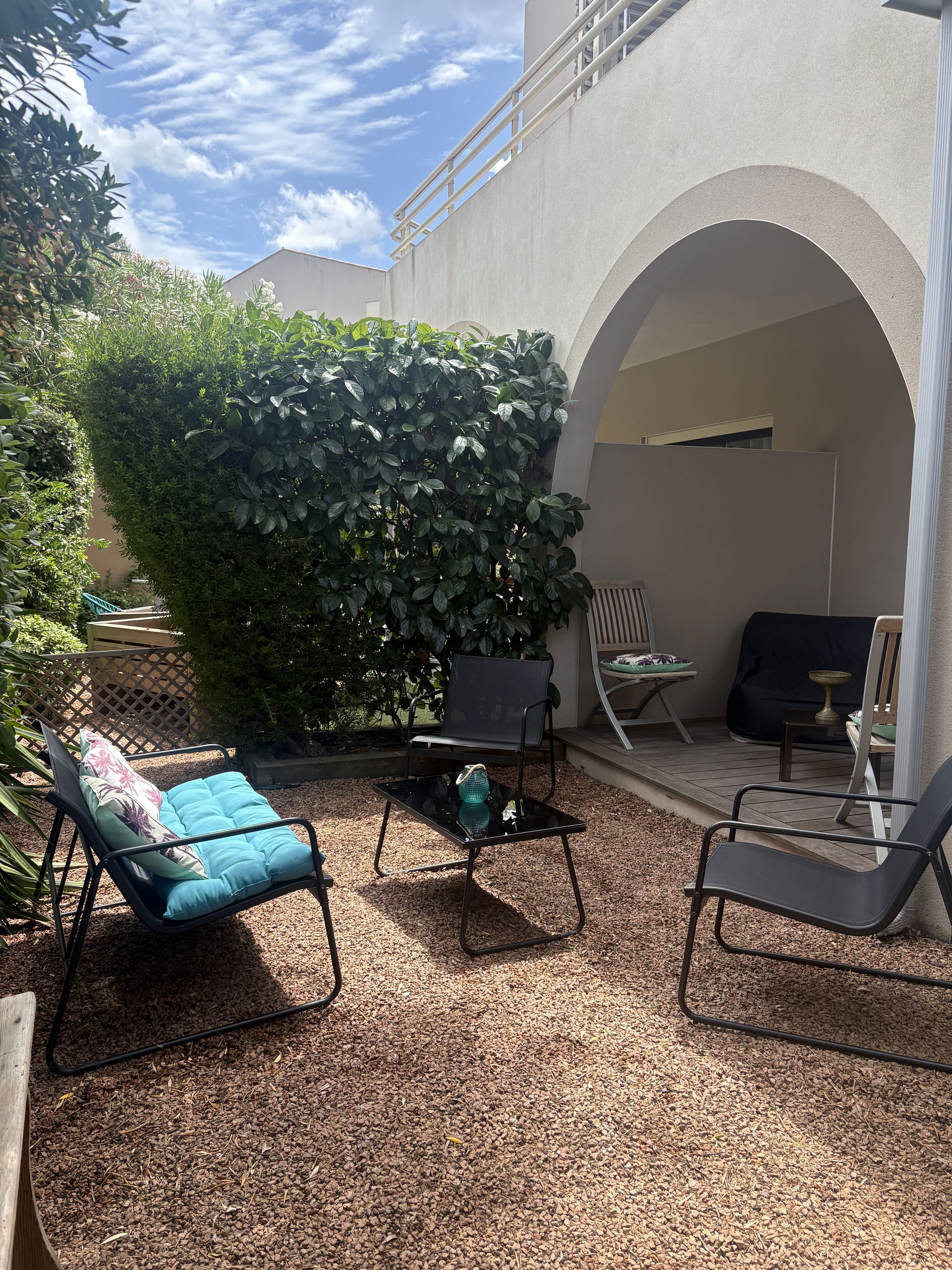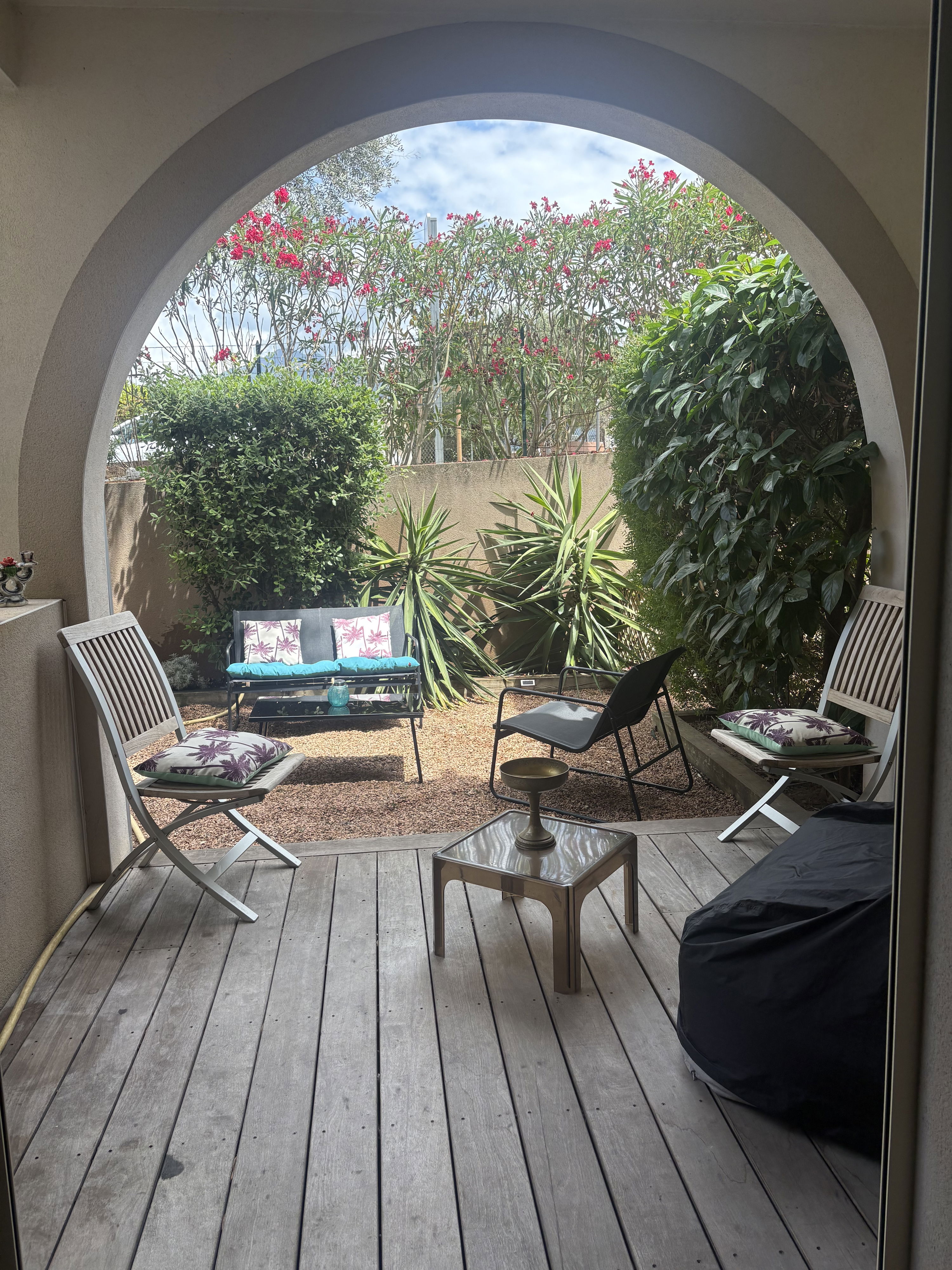 Studio apartment with garden in a secure residence with a large living room