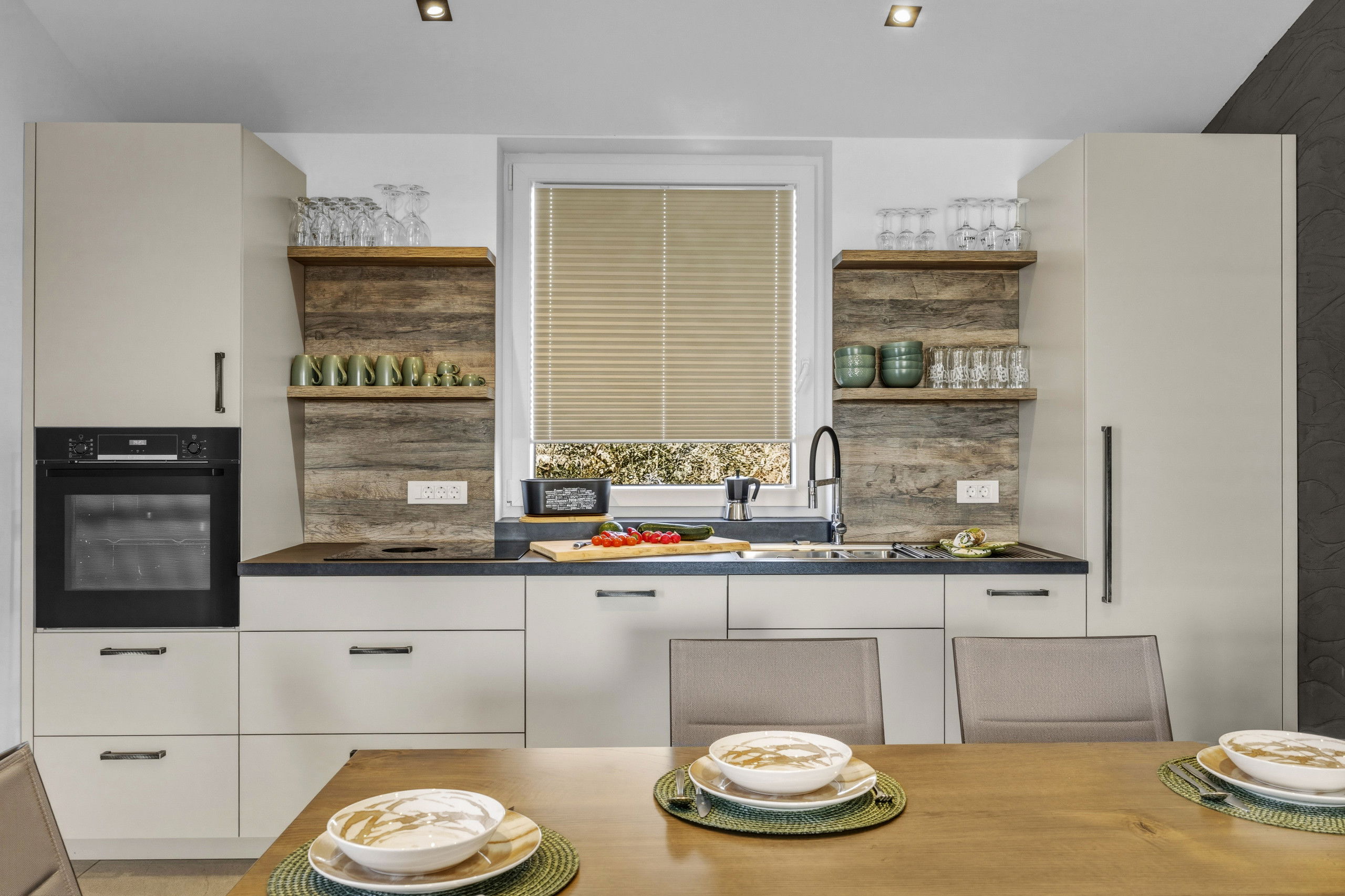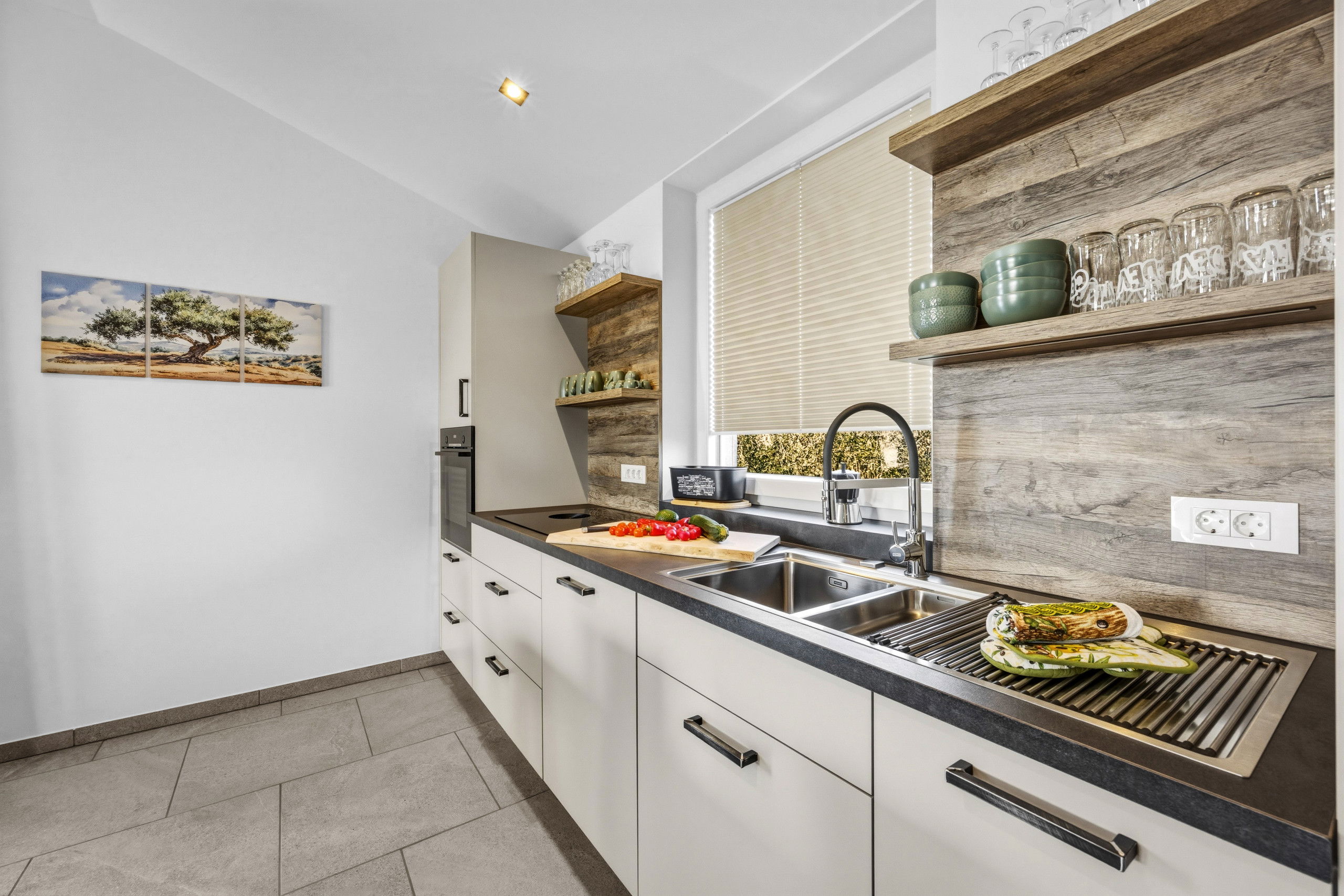 The kitchen is fully equipped and ideal for preparing meals, whether it’s a quick breakfast or a relaxed dinner together. Outside, you can enjoy the private garden area and make use of the barbecue for long, easy evenings by the pool.