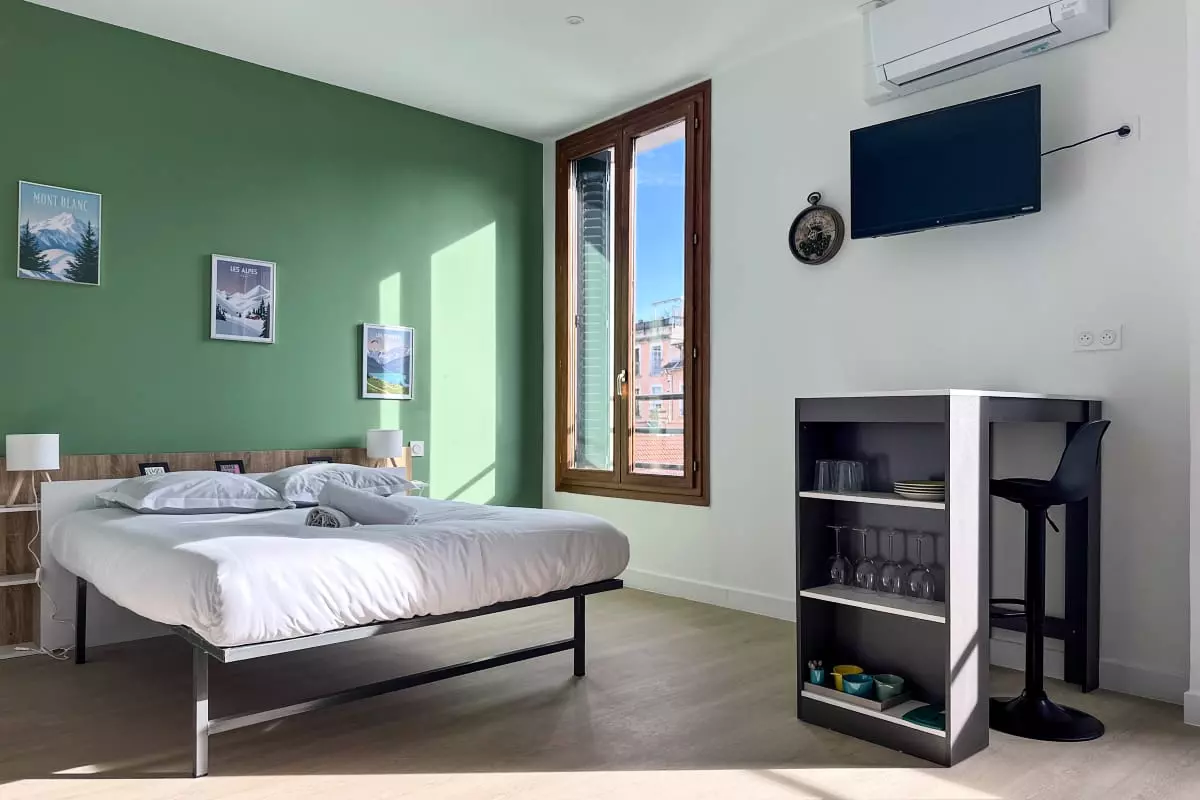 ⭐ Discover our fully equipped studio apartment for 2 people, located in the heart of Grenoble on Rue Thiers. 🏔