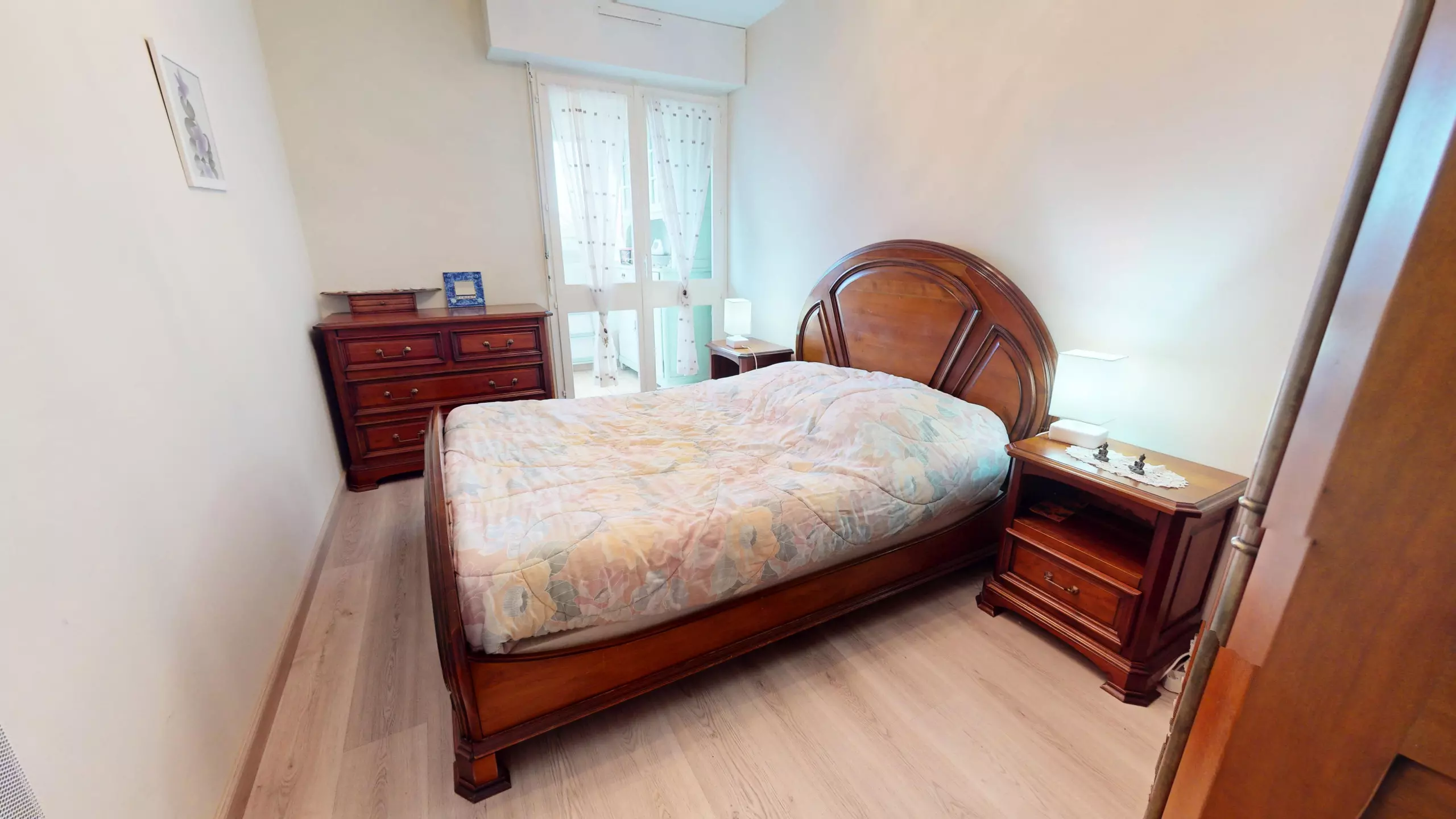 On the night side, the apartment offers a comfortable bedroom with a 140 x 190 double bed, providing a quiet and pleasant space to rest.