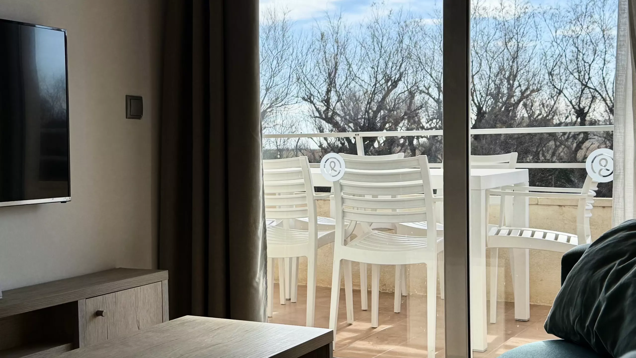 The 5 sleeping areas include 1 sofa bed and 4 single beds, offering flexibility for families with children. The apartment is air-conditioned with an air conditioner and a heat pump to ensure comfort year-round.