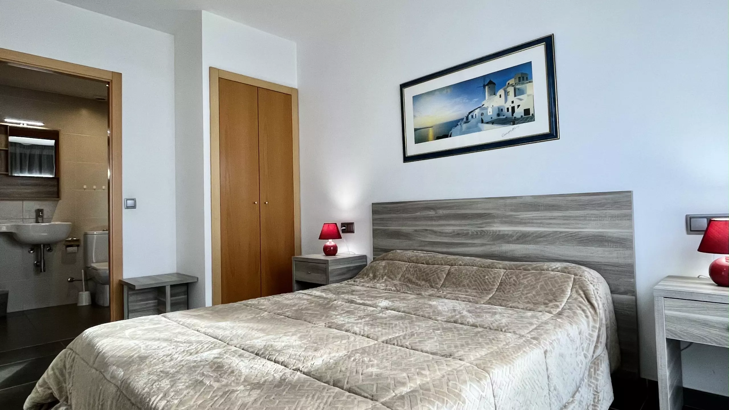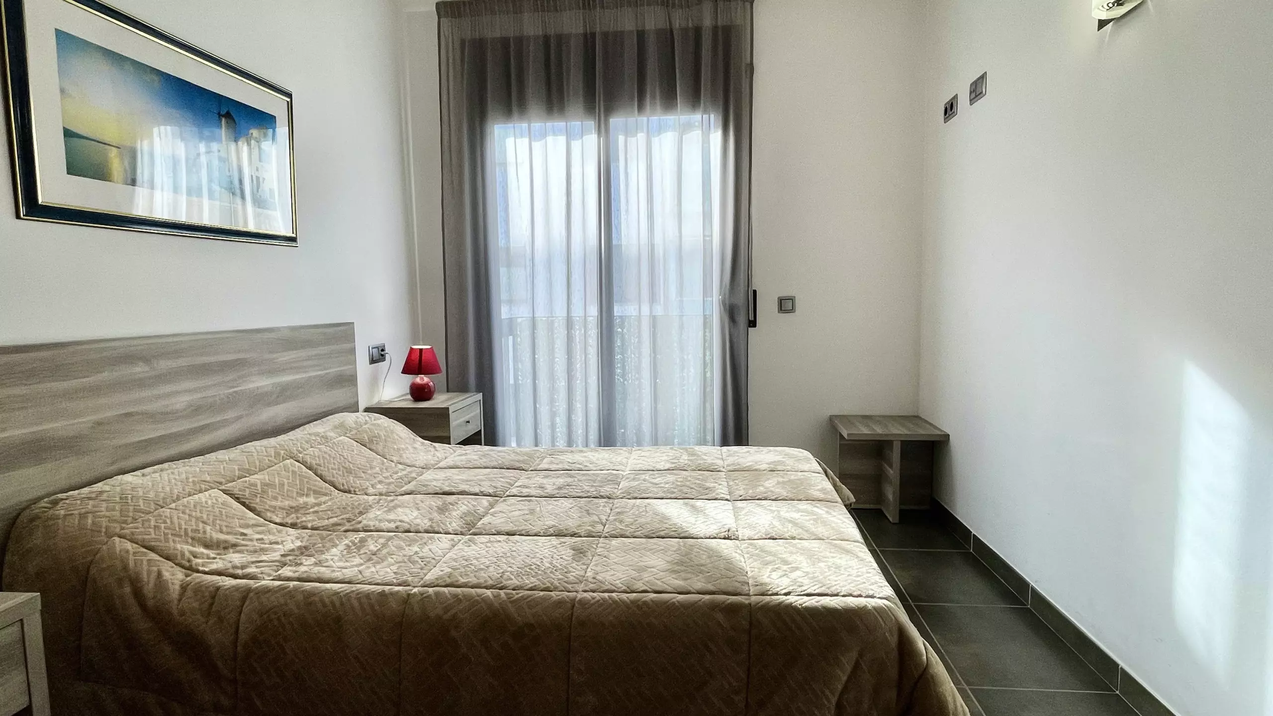 A major advantage is the private covered parking located in the same building, which greatly facilitates arrival and departure with luggage or for excursions. The area is equipped with air conditioning to maintain a cool atmosphere on the hottest days, and a fully equipped American-style kitchen with modern appliances such as a dishwasher, oven, microwave, and coffee machine.