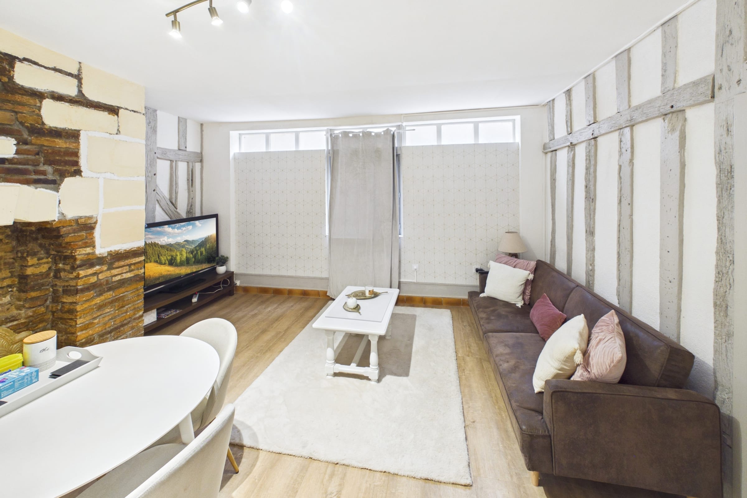 ✨ Cozy living space with a large flat-screen TV, perfect for relaxing.