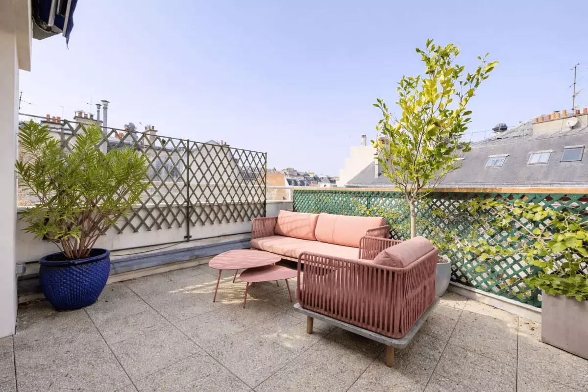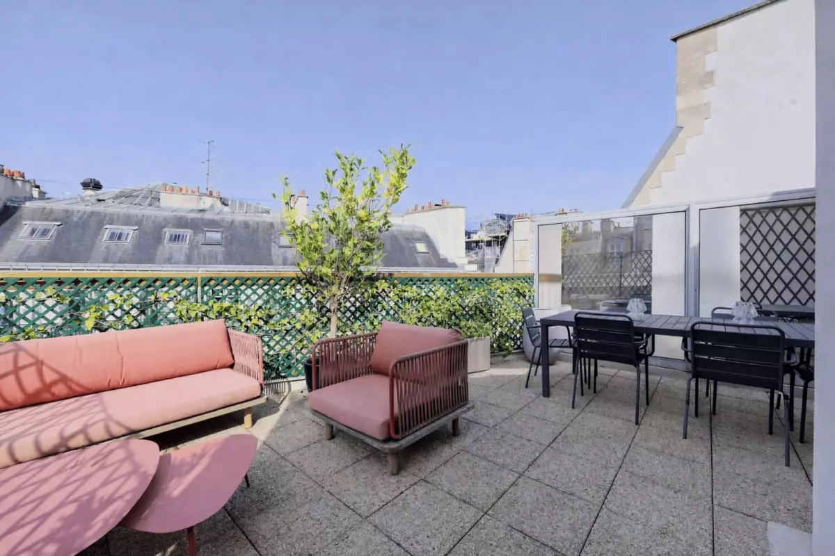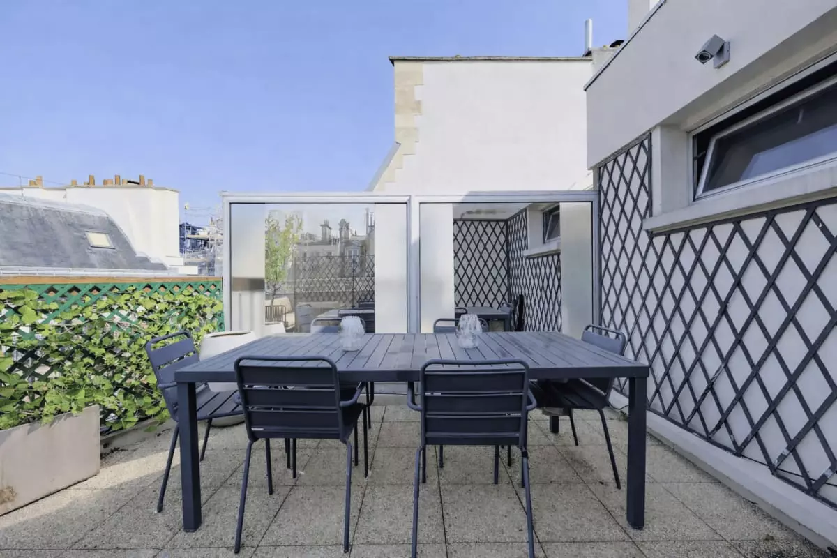 - its large private and furnished terrace, ideal for outdoor dining;