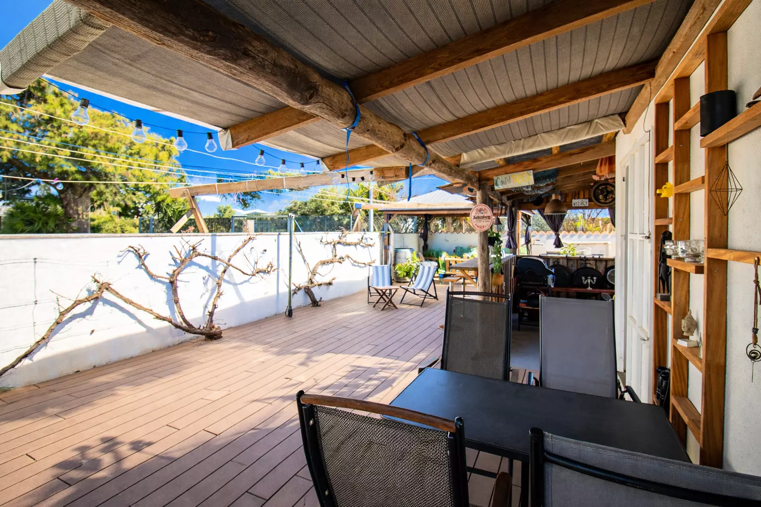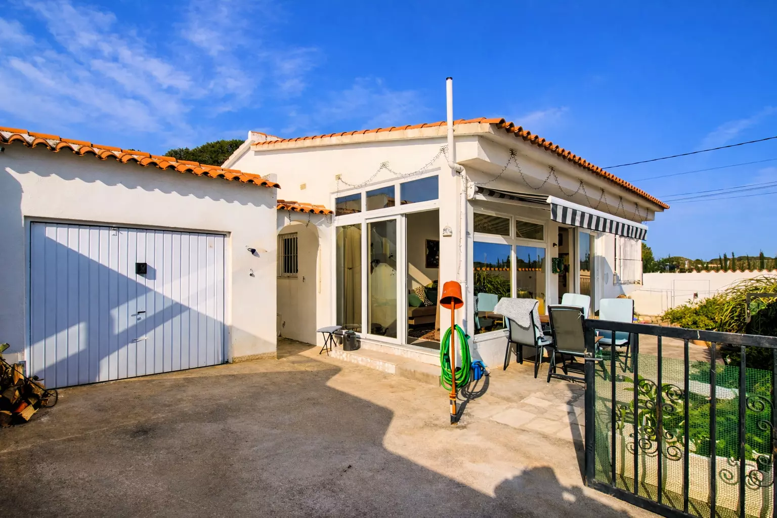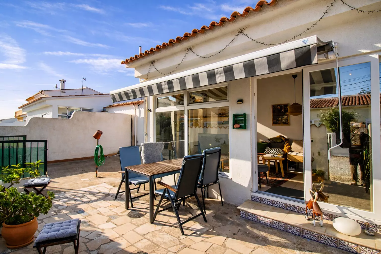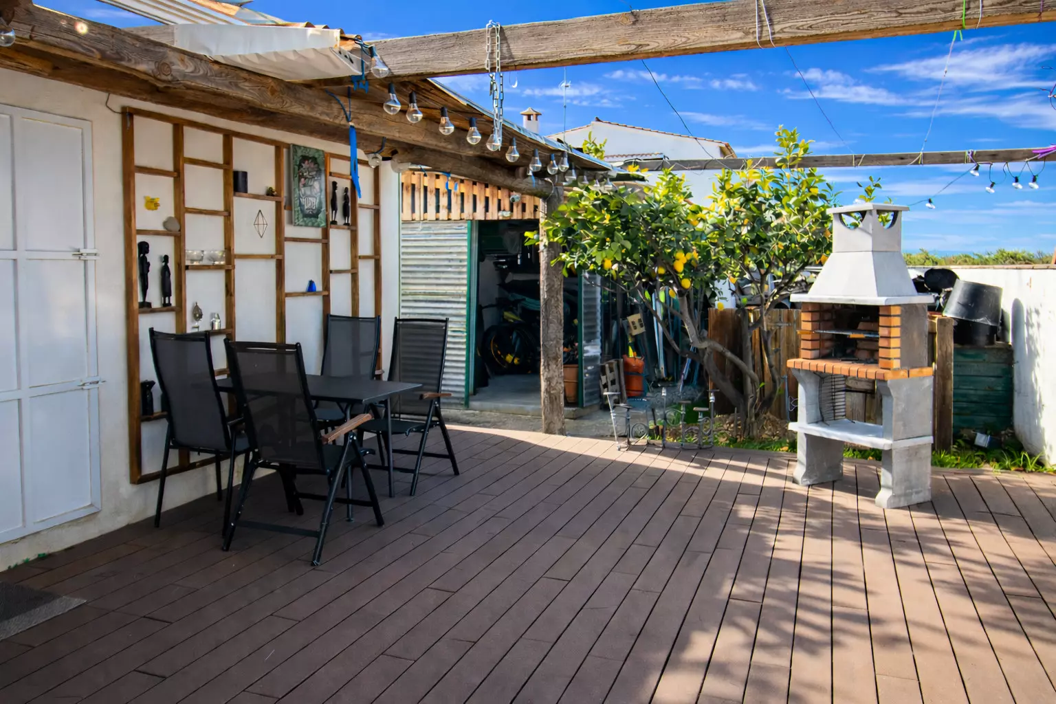 From the front, it's discreet and tranquil, like so many other Mediterranean houses. But as you explore it, you'll discover its true charm: a large, lively back patio, designed for leisurely enjoyment. There you'll find a chill-out area, a table for long meals, and a barbecue that inevitably becomes the star of many an evening.