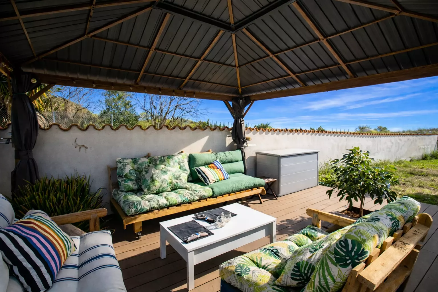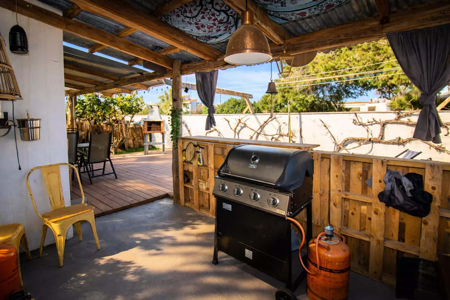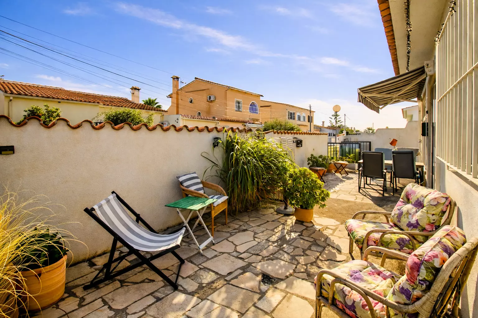 From the front, it's discreet and tranquil, like so many other Mediterranean houses. But as you explore it, you'll discover its true charm: a large, lively back patio, designed for leisurely enjoyment. There you'll find a chill-out area, a table for long meals, and a barbecue that inevitably becomes the star of many an evening.