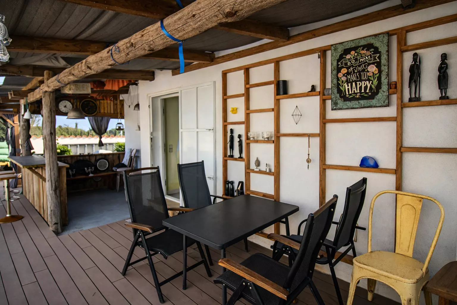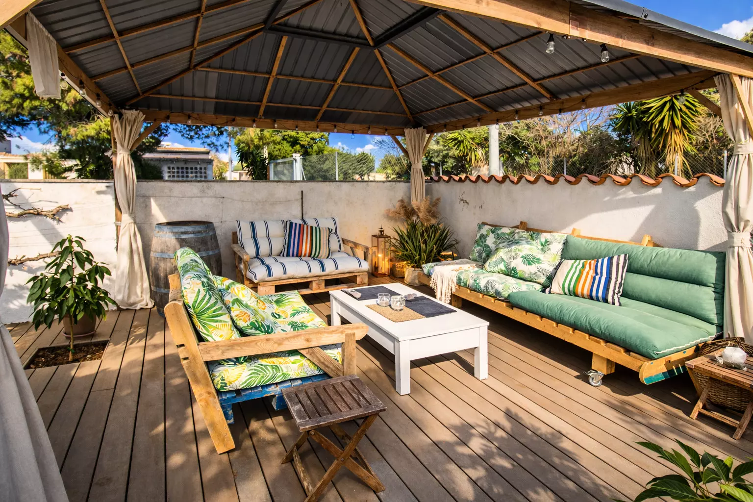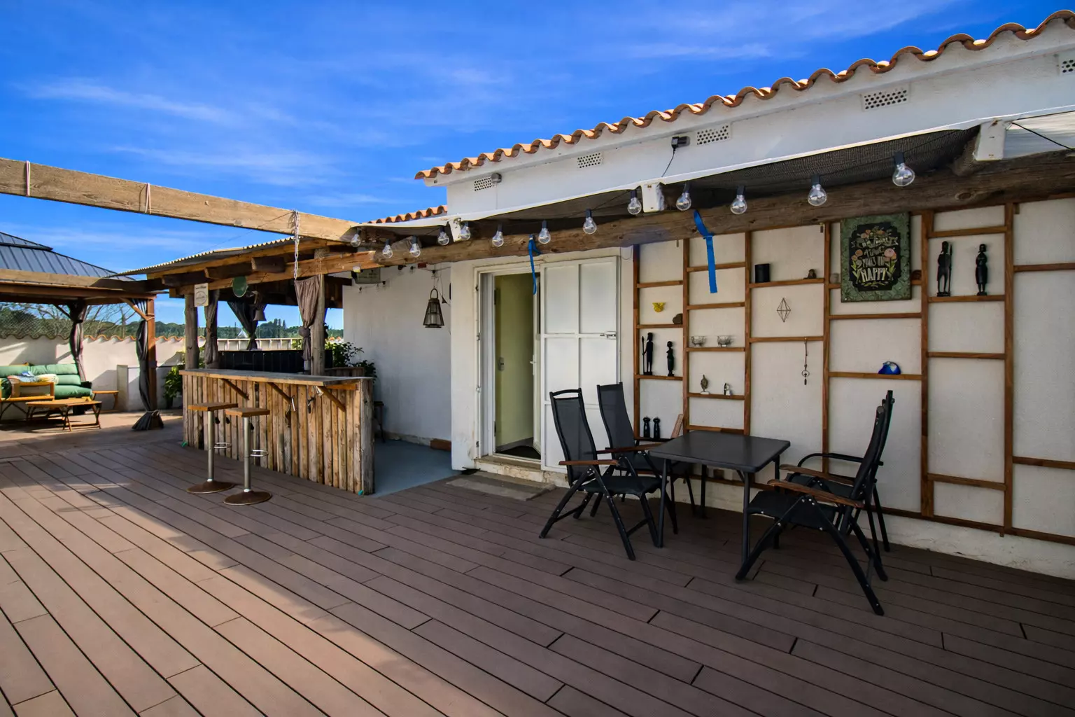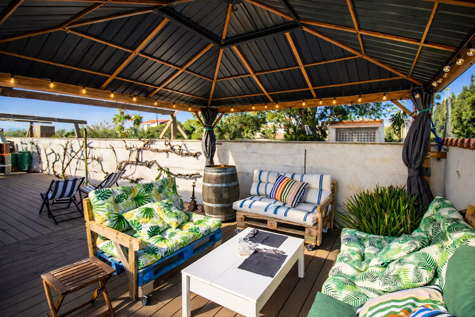 From the front, it's discreet and tranquil, like so many other Mediterranean houses. But as you explore it, you'll discover its true charm: a large, lively back patio, designed for leisurely enjoyment. There you'll find a chill-out area, a table for long meals, and a barbecue that inevitably becomes the star of many an evening.
