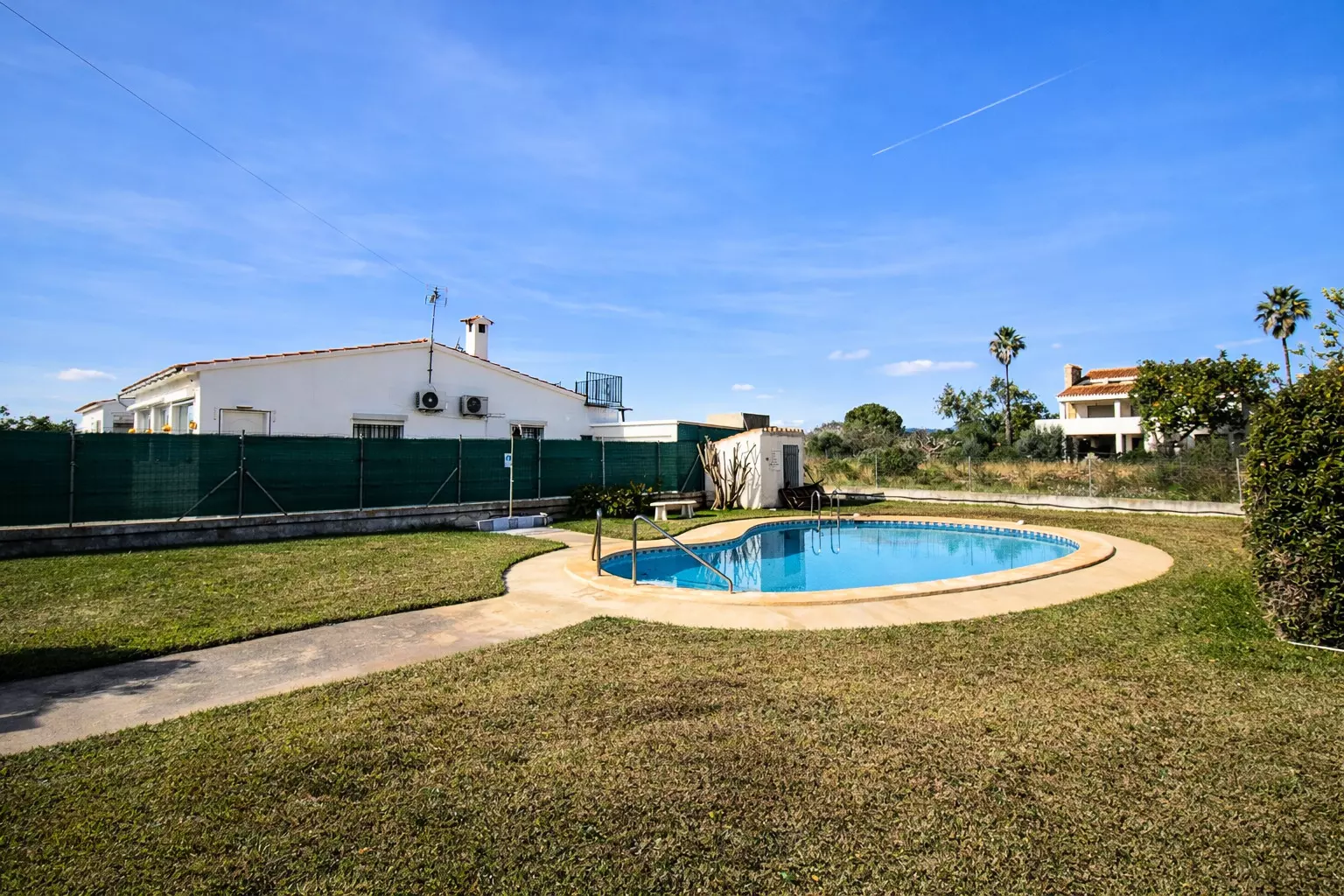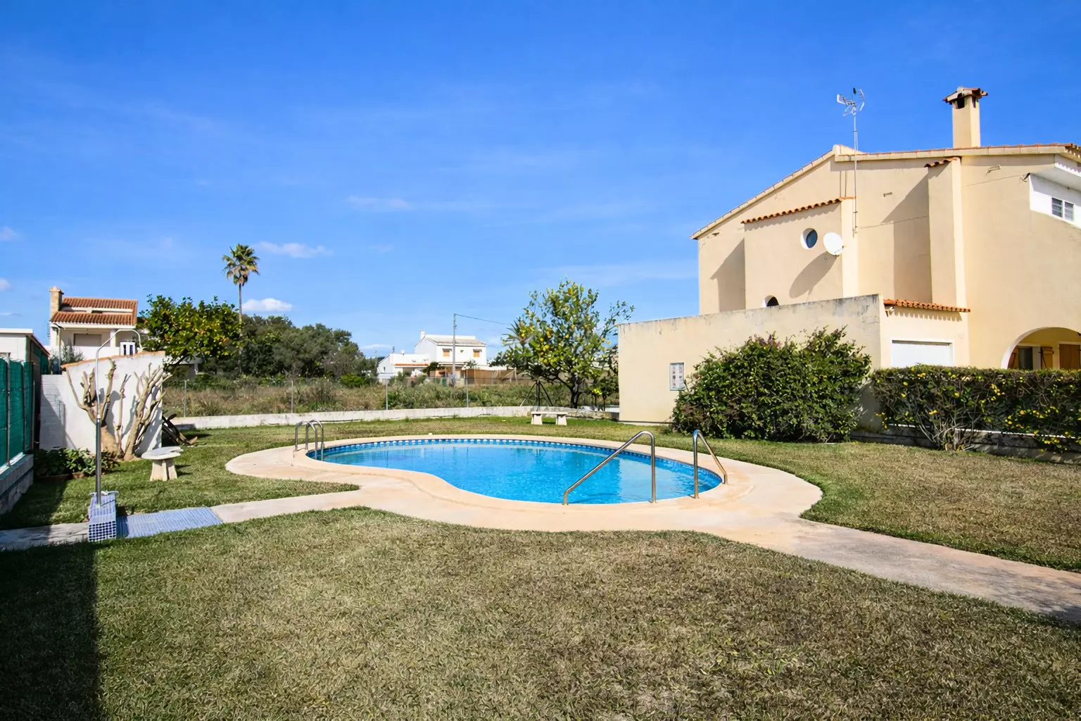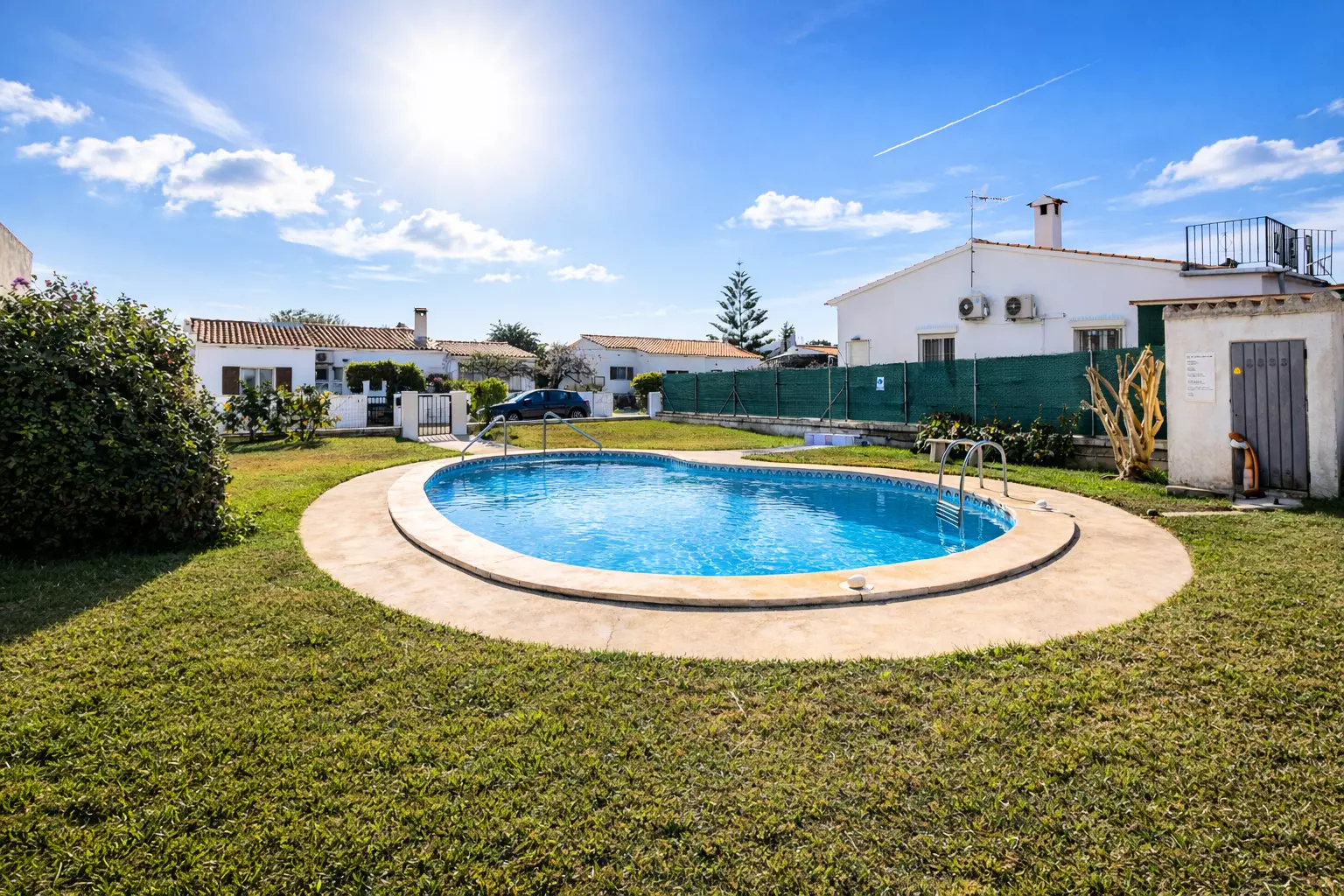 In addition, it has a communal swimming pool, shared only with the few houses that make up this quiet little street, ideal for cooling off in a relaxed atmosphere.