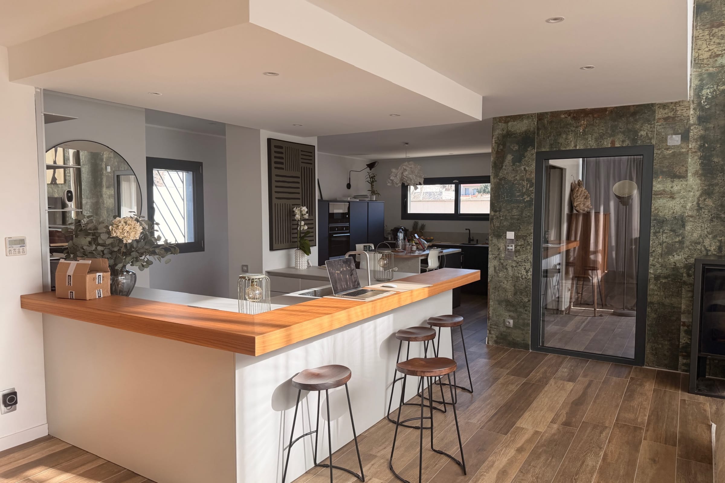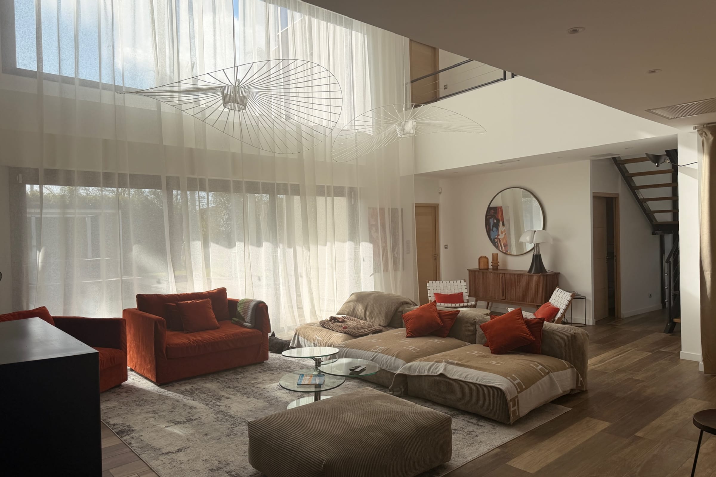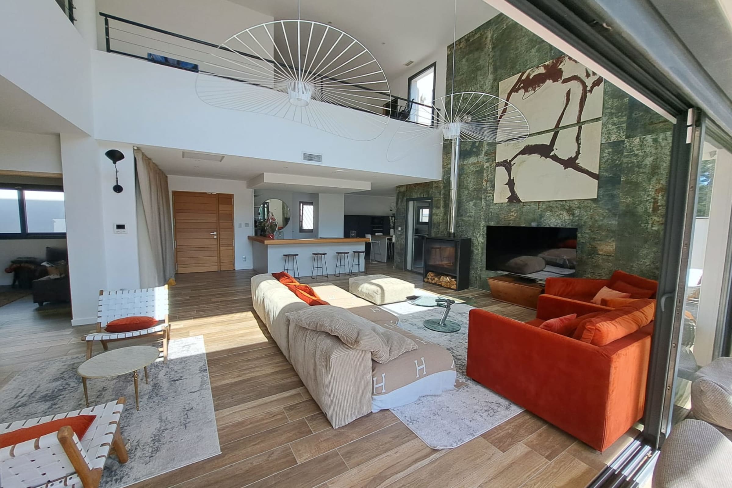 Maison Hermès embodies contemporary elegance just minutes from the Mediterranean. From the moment you enter, the cathedral-style living room impresses with its volume and natural light. The fully equipped modern kitchen opens onto an elegant veranda designed for generous gatherings. Spaces flow seamlessly between aesthetics, comfort and conviviality.
