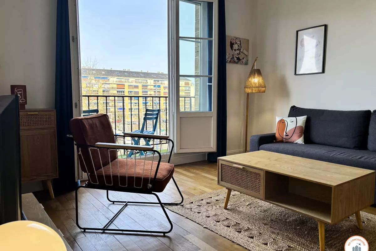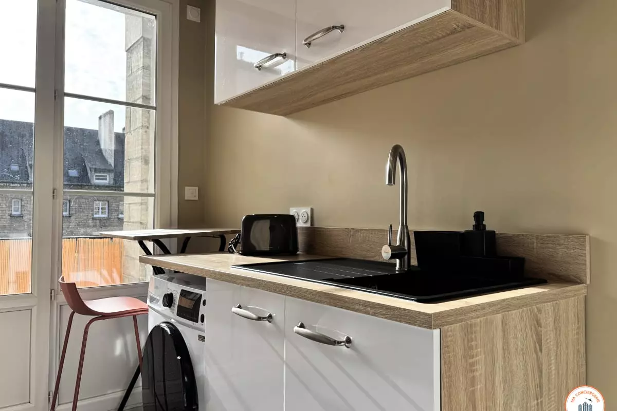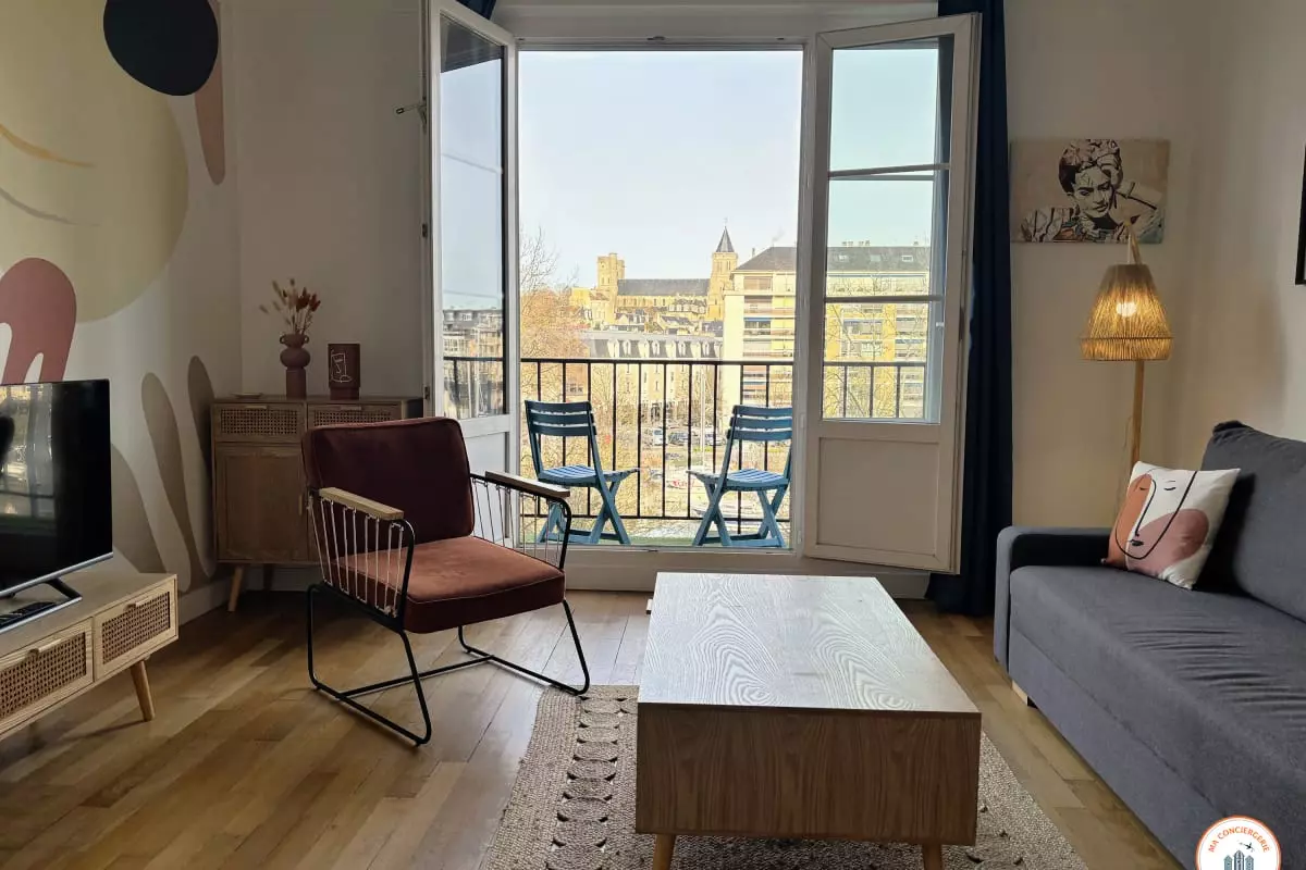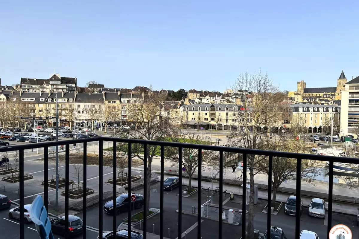 Our accommodation is located in the very heart of Caen, more precisely on the famous Quai Vendeuvre. It boasts a superb, unobstructed view of the marina. 📷