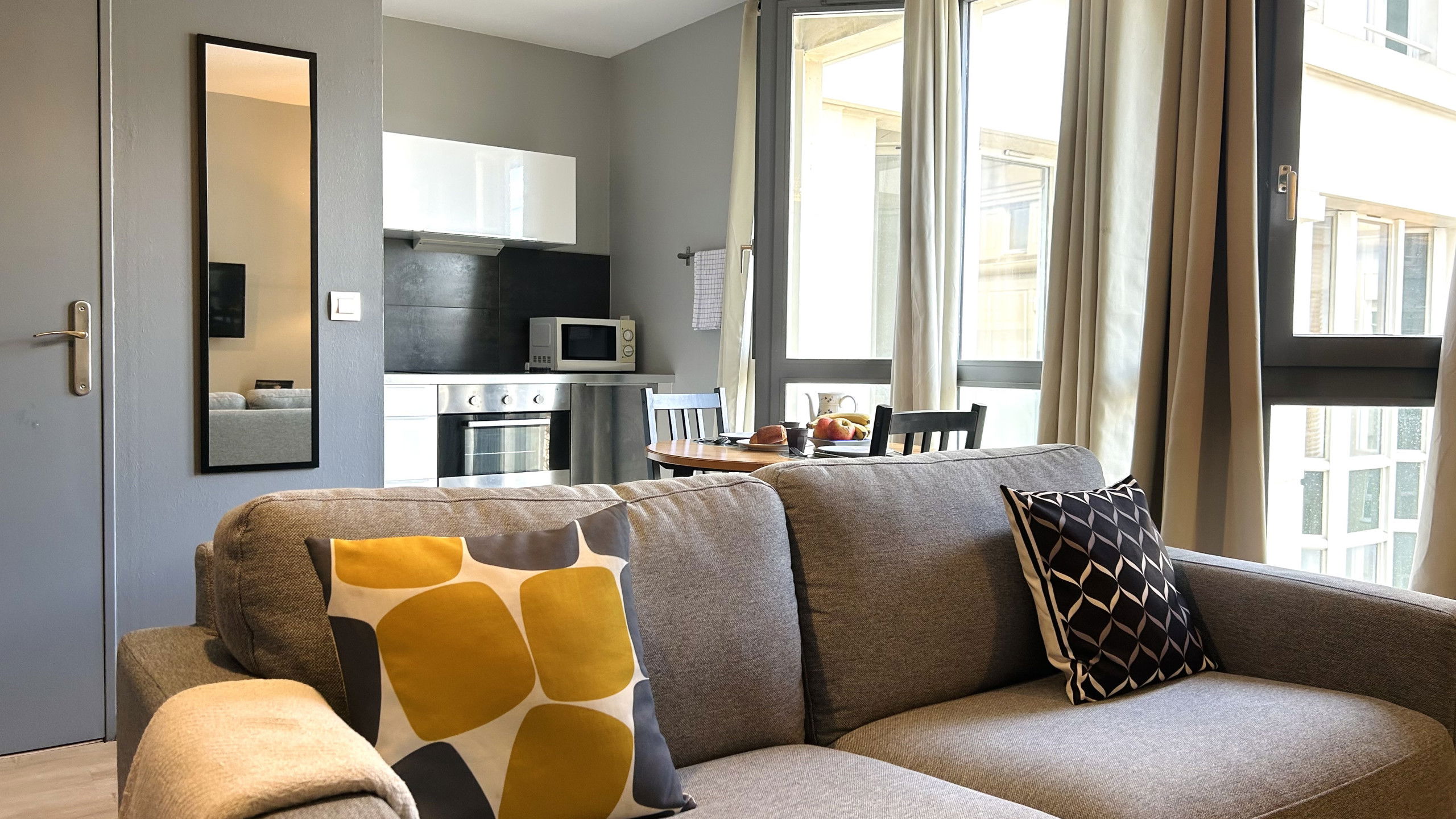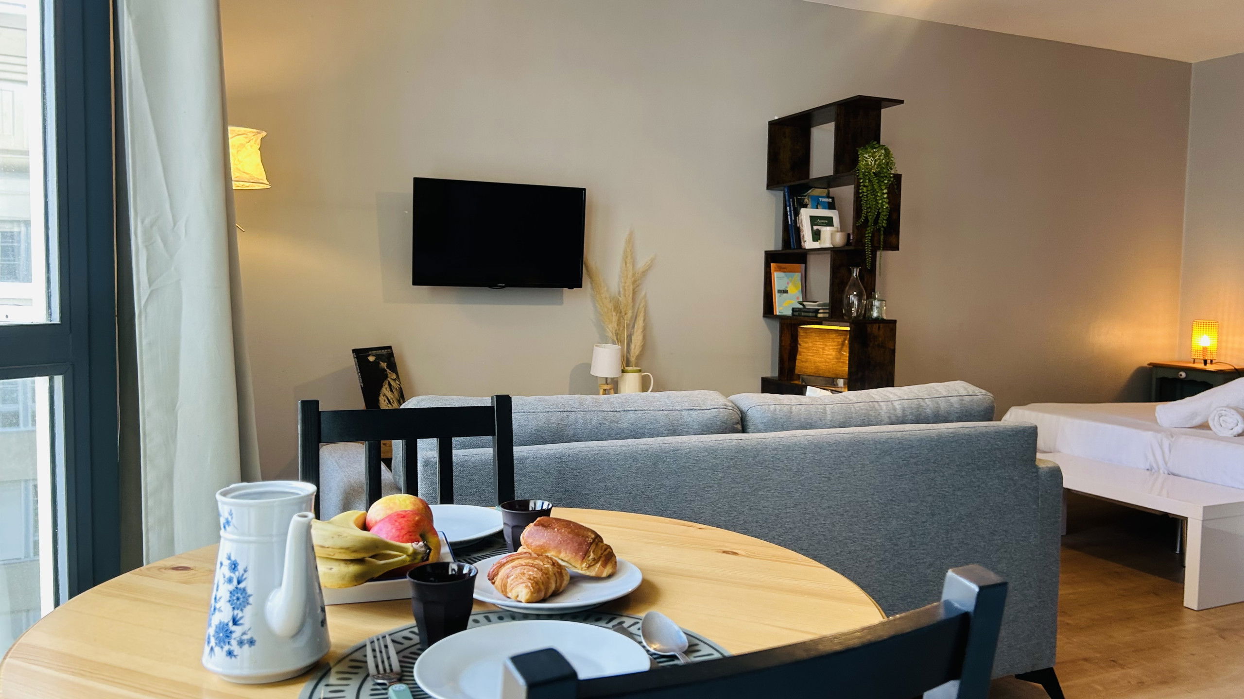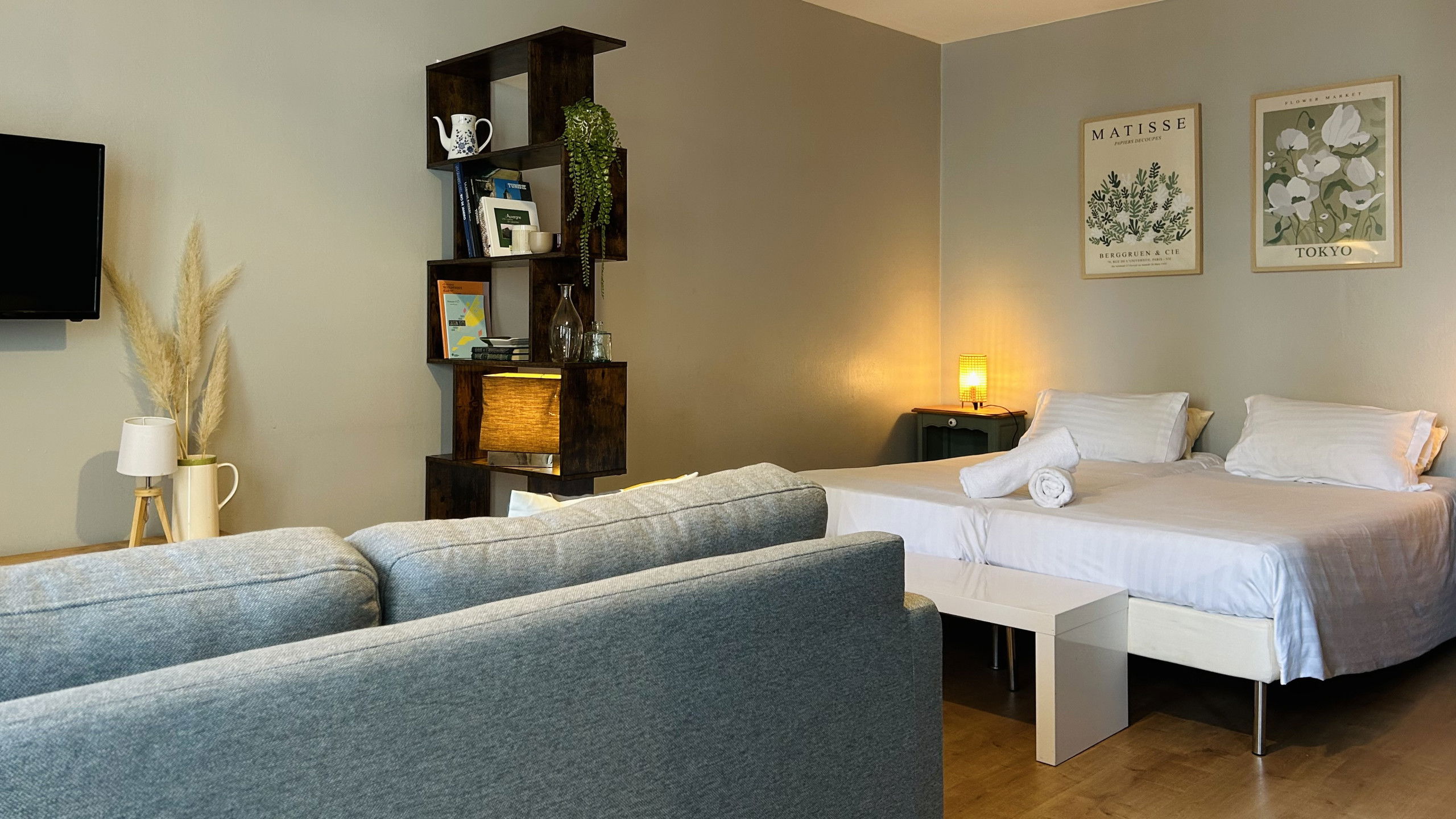 Very beautiful apartment on the 5th floor with lift in a high-end residence in the heart of the Antigone district, a district with a neo-Greek style entirely designed and signed by Ricardo Bofil. Beautiful volume for this recently renovated 34 m² studio with 4 sleeping spaces, with bathroom, fully equipped kitchen and TV. High-speed internet. WIFI; Impeccable condition.