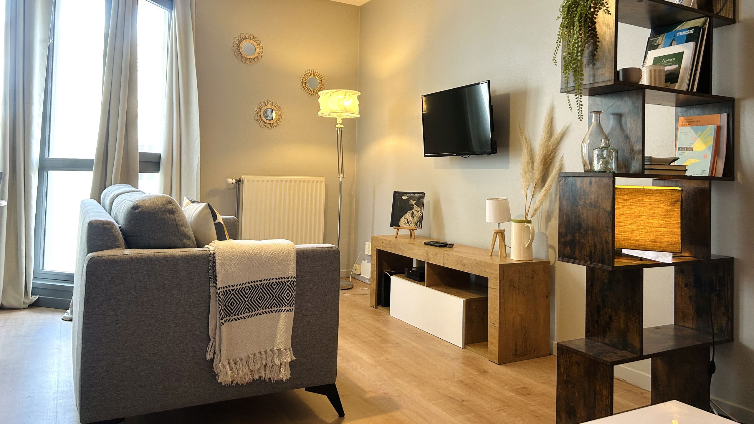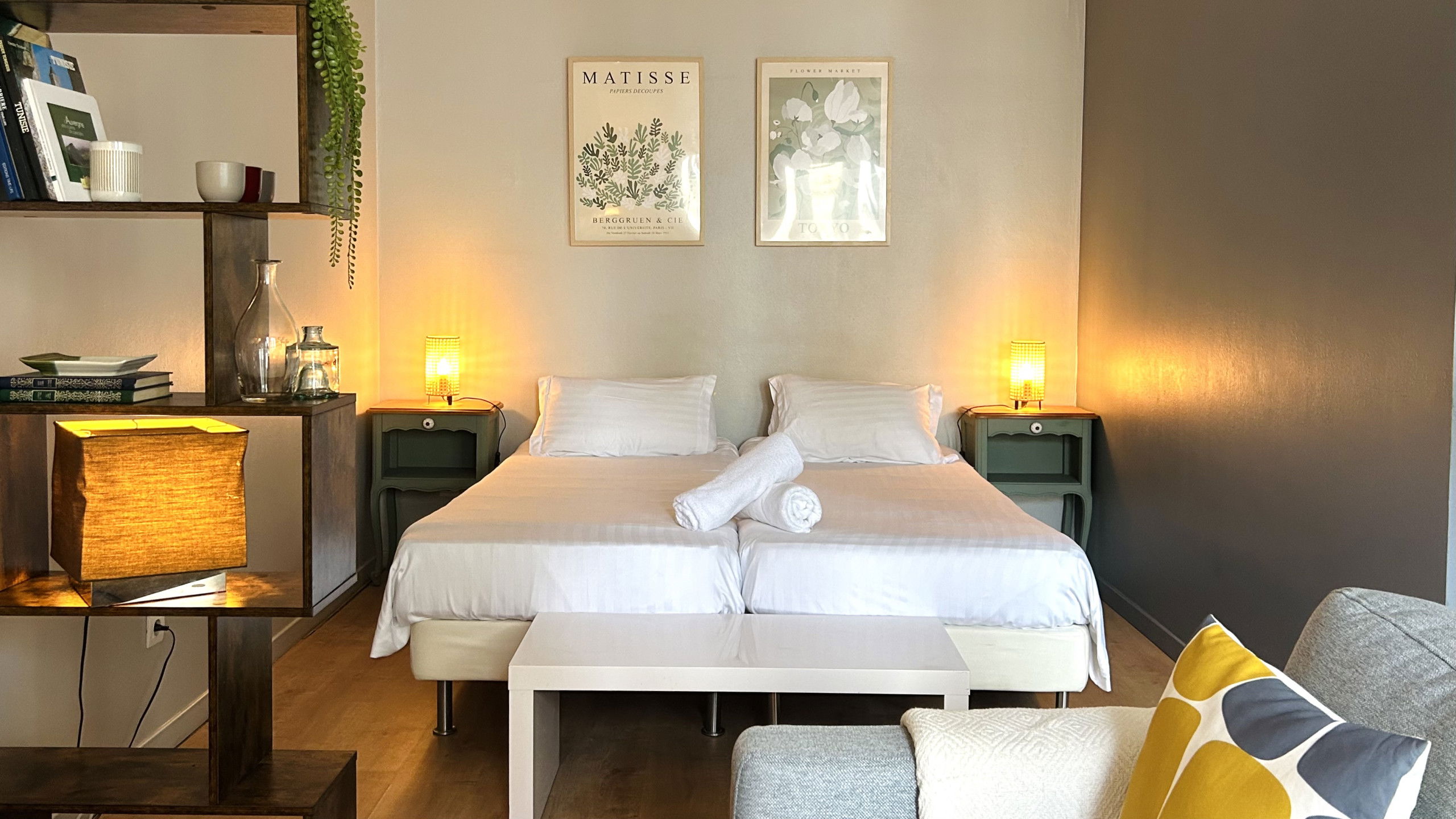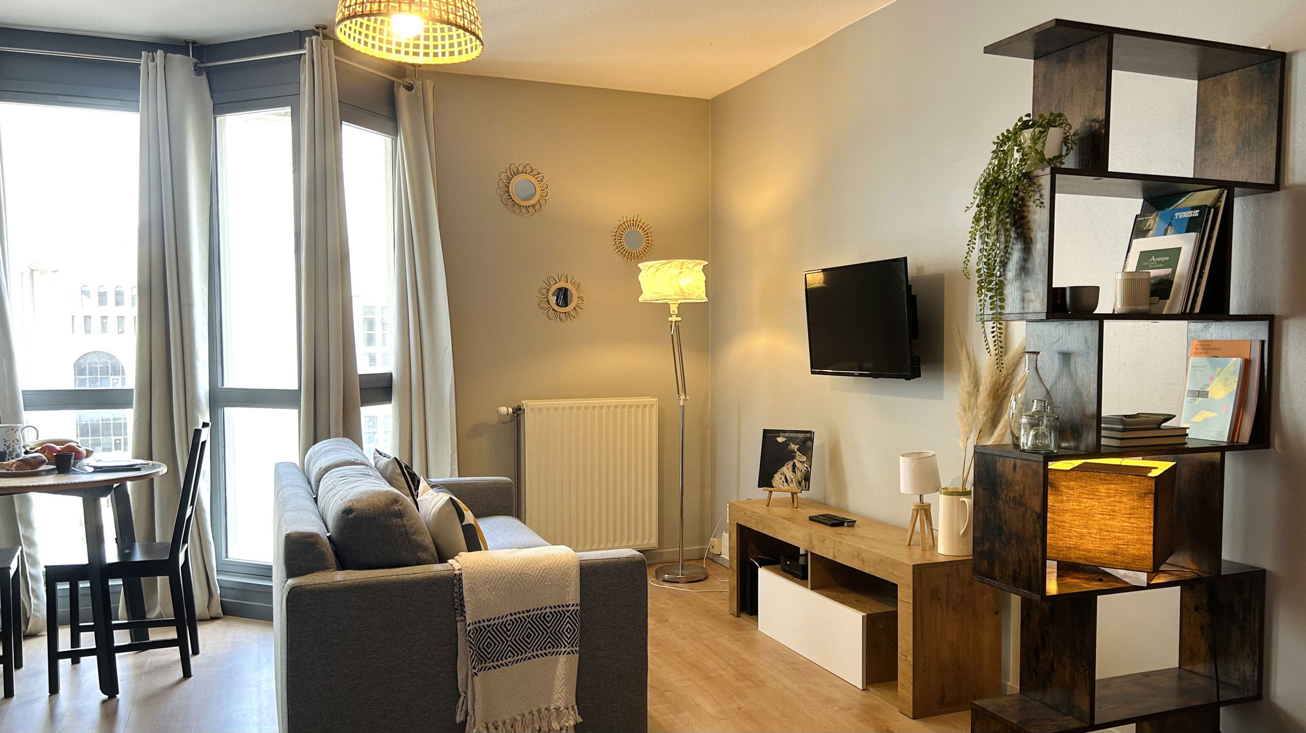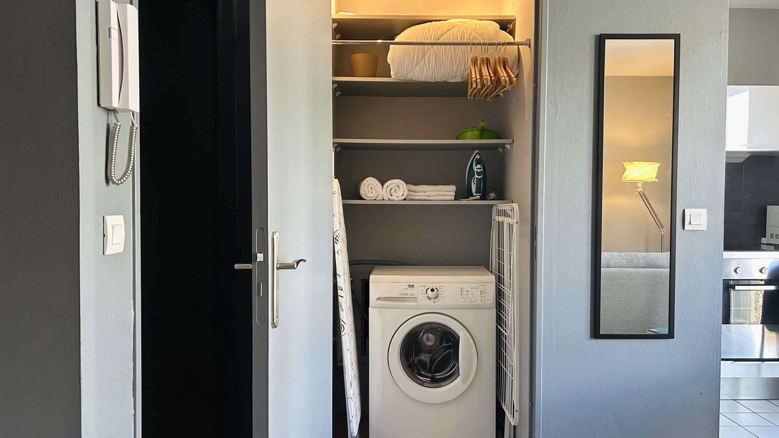 Historic centre 10 minutes; Shops, Olympic swimming pool and tram station at the foot of the building. The beach is 15 minutes away. Immediate motorway access, SNCF train station 10 minutes by tram.