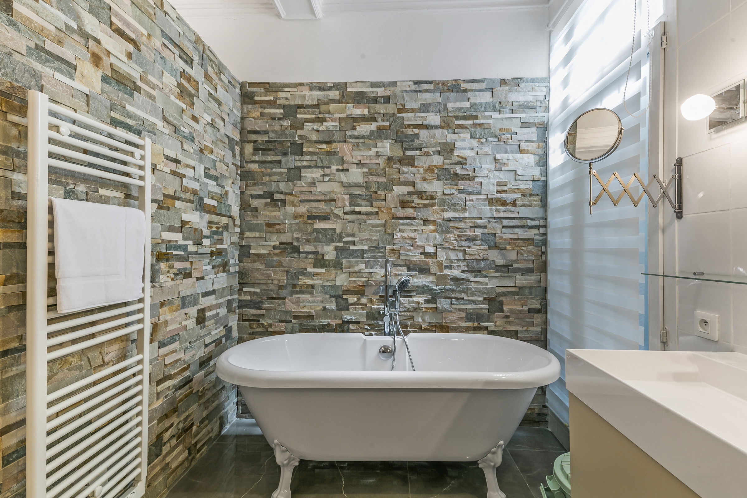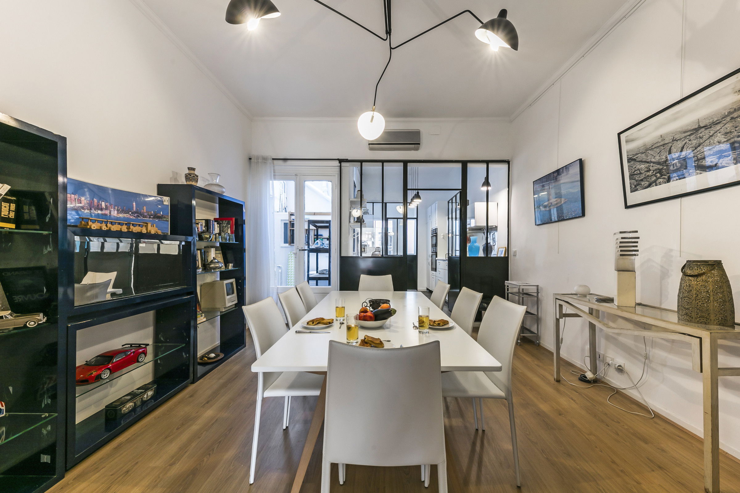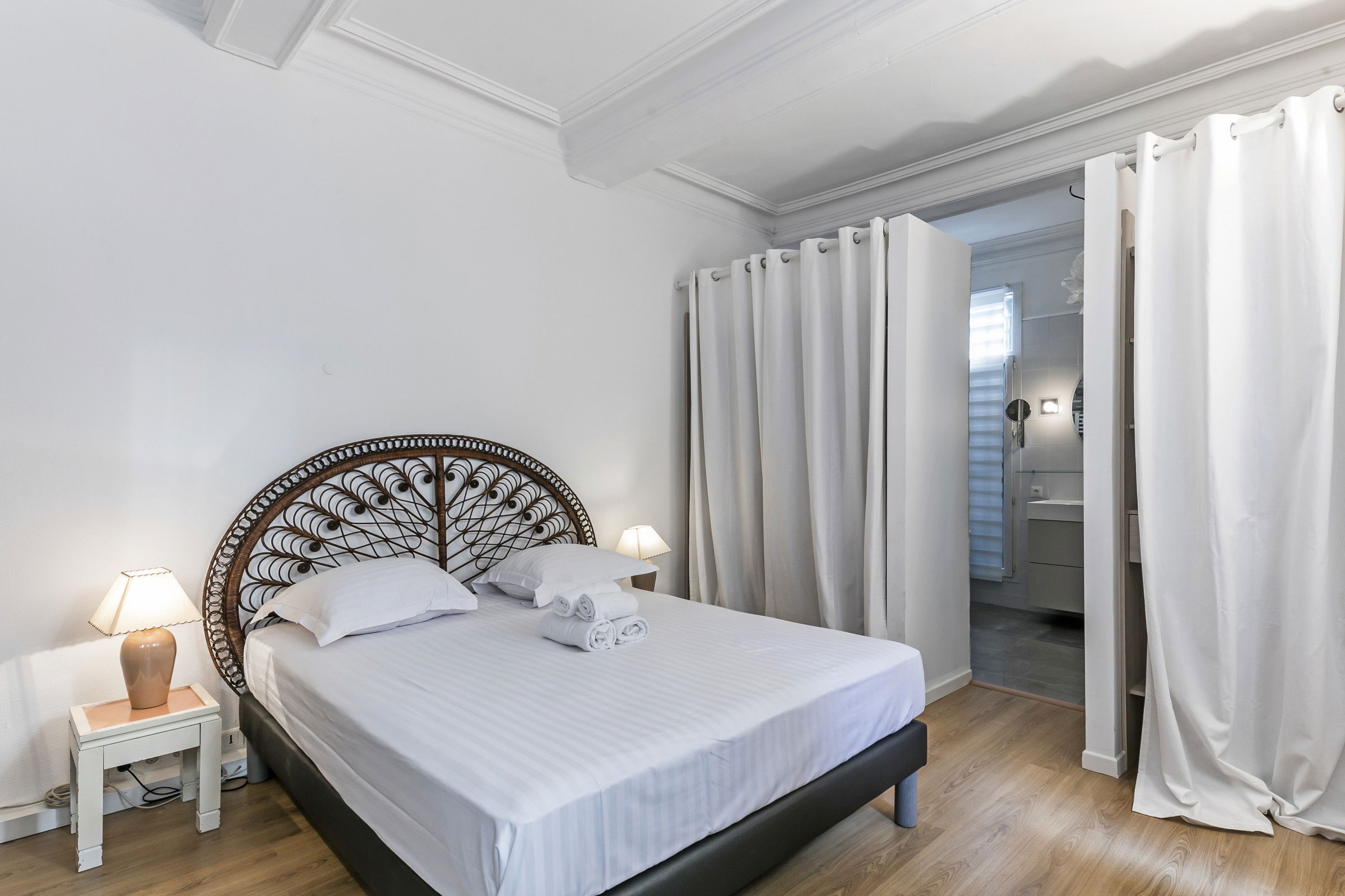 We have selected "Villa Jeu de Paume", for its location, its style, its elegance on the floor. Refined apartment, volumes and ceiling heights, "Villa jeu de Paume" is a true bourgeois apartment in the purest Haussmann style. Large living room, library, beautiful and large French windows, two bedrooms with 2 bathrooms. Inner patio for breakfast. The owners entrust you with their home during their absence for a few days or several weeks. You can read on the sofa, one of the countless books from the majestic library and lounge on the sofa. Air-conditioned master bedroom.