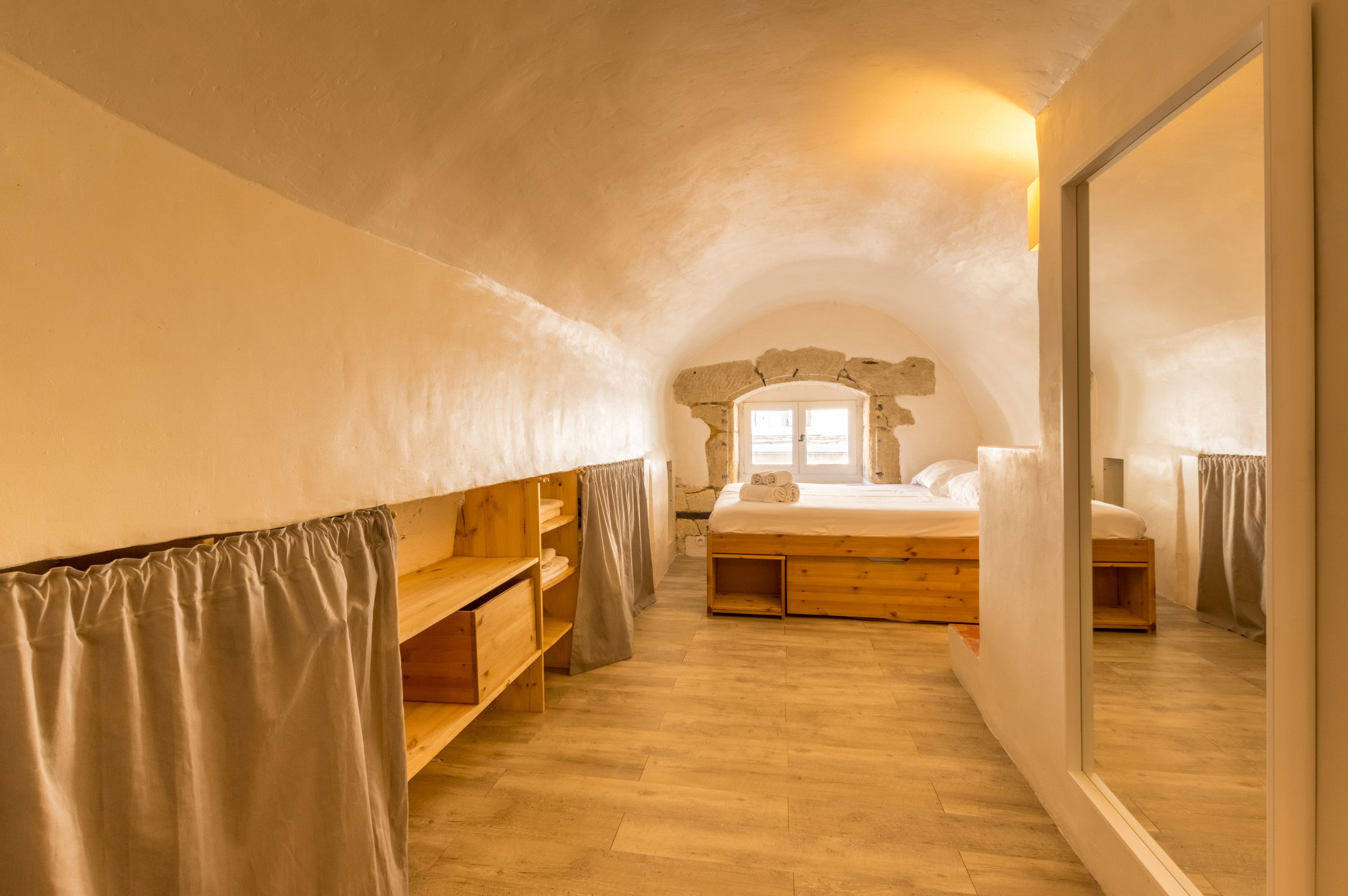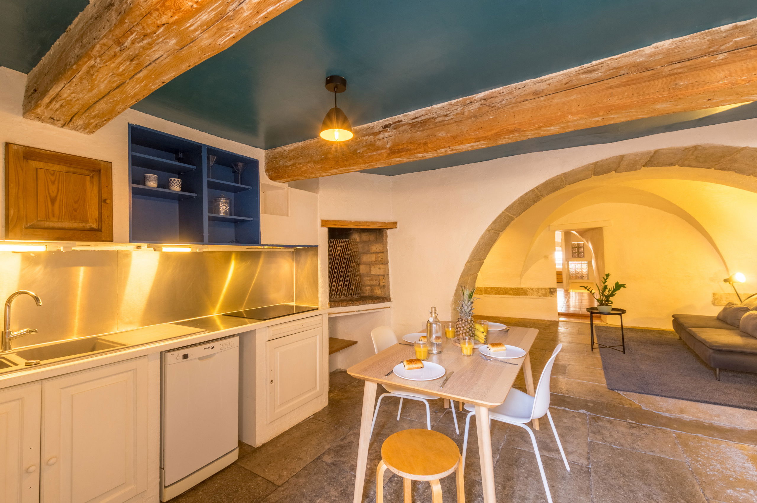 Apartment of rare charm with authentic vaults, exposed wooden beams and the floor with the famous bars of Montpellier.