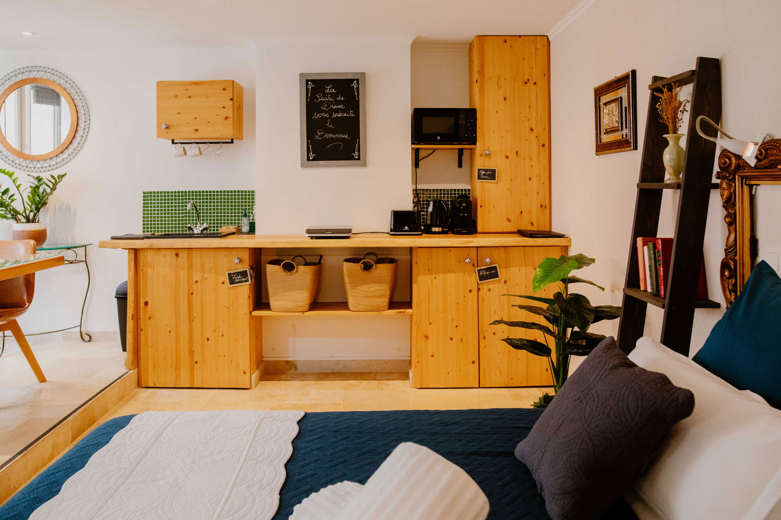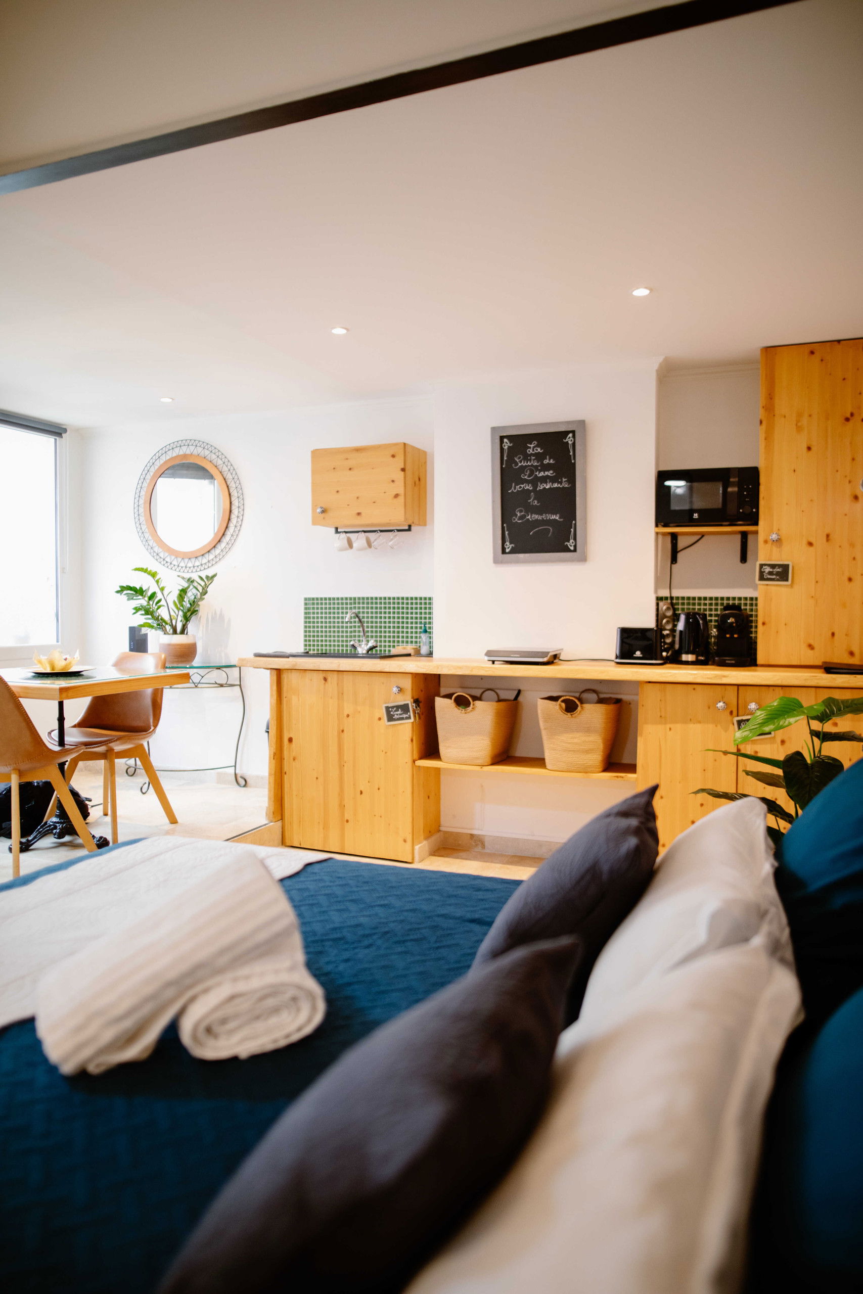 The independent kitchen, of induction, is equipped with refrigerator, microwave, dishes/cutlery, kitchen utensils, coffee machine, toaster and kettle.
