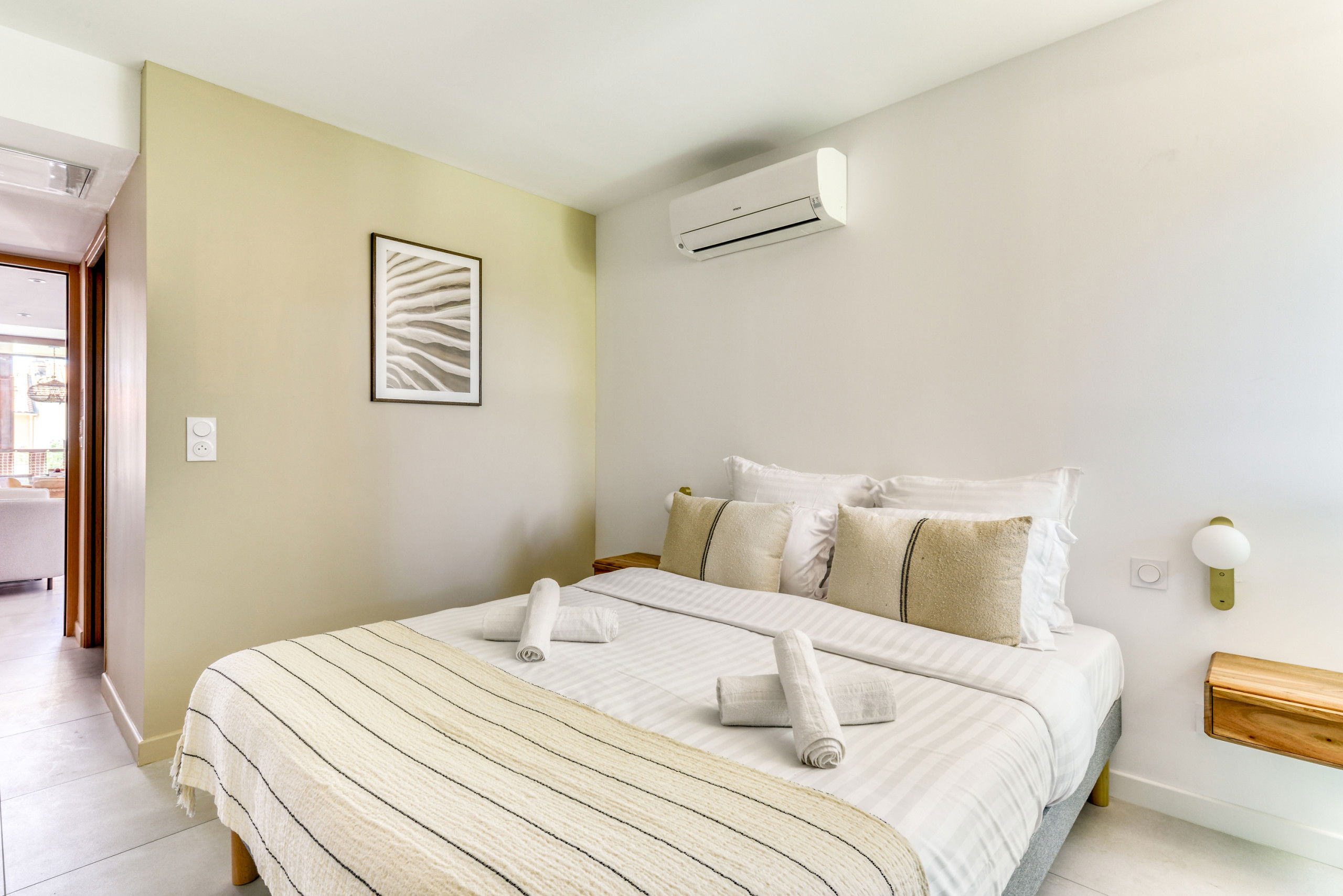 Soléa is a 40m2 apartment with a bedroom on the floor. Large and spacious living room with a soft and comfortable sofa opening onto a deep terrace for a living area of 22 m2. A bedroom with beautiful dimensions with Queen Size beds (160x200) for greater comfort. Beautiful wardrobes. Italian-style bathroom.