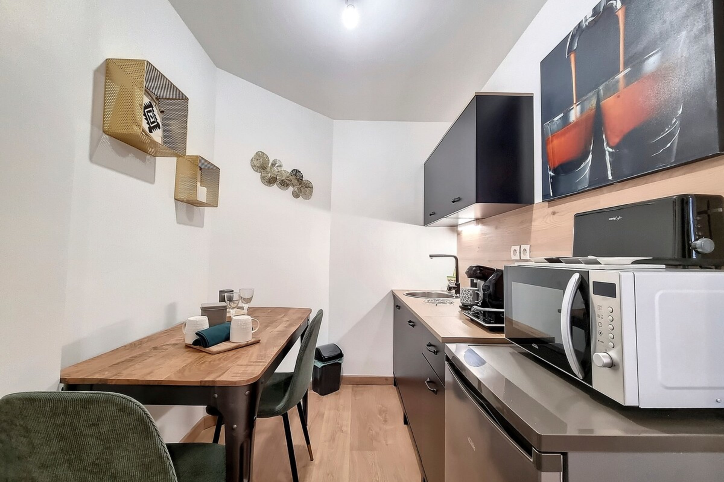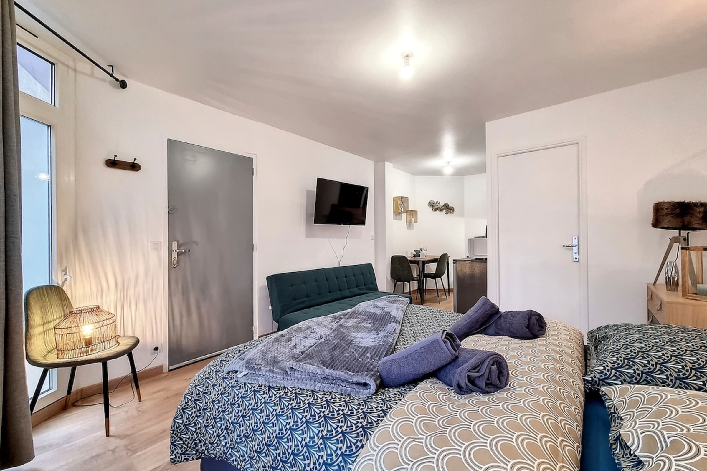 Inside, the studio has been designed to make you feel at home right away: modern and tasteful décor, optimised space, warm atmosphere. The living room invites you to relax after a day of sightseeing, whether you're here for a weekend of discovery, a business trip or a romantic getaway.
