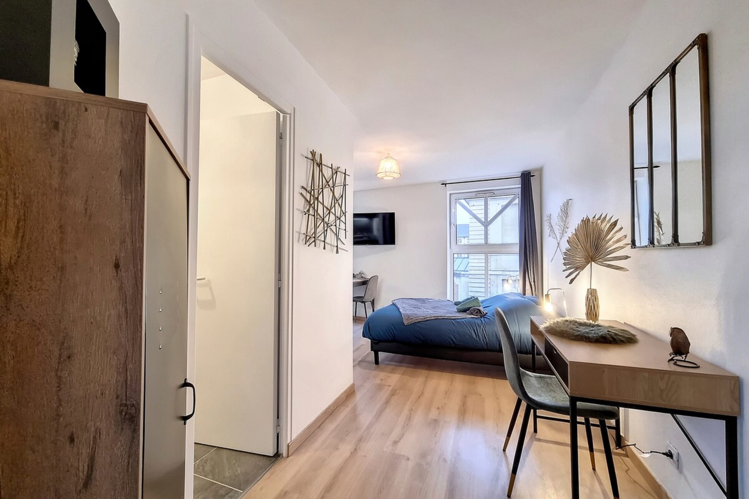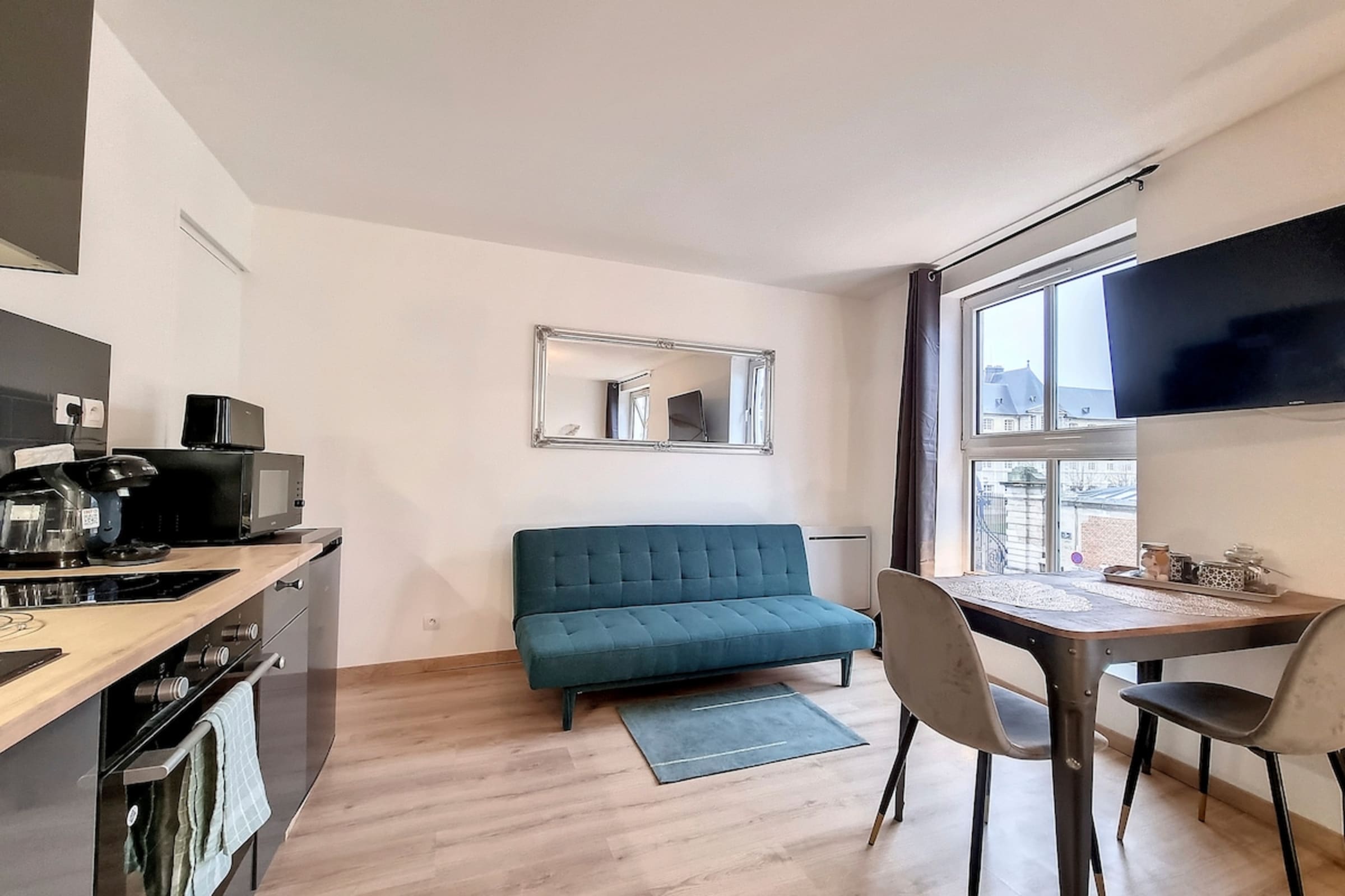 As soon as you arrive, you will appreciate the modern and refined atmosphere of the accommodation: an interior designed to be both practical and welcoming. Settle into the living room, enjoy the direct view of the Prefecture, and savour this simple luxury: feeling calm, right in the heart of Rouen. Whether you are here for a weekend, a business trip or a getaway, everything is in place for a smooth and relaxing stay.