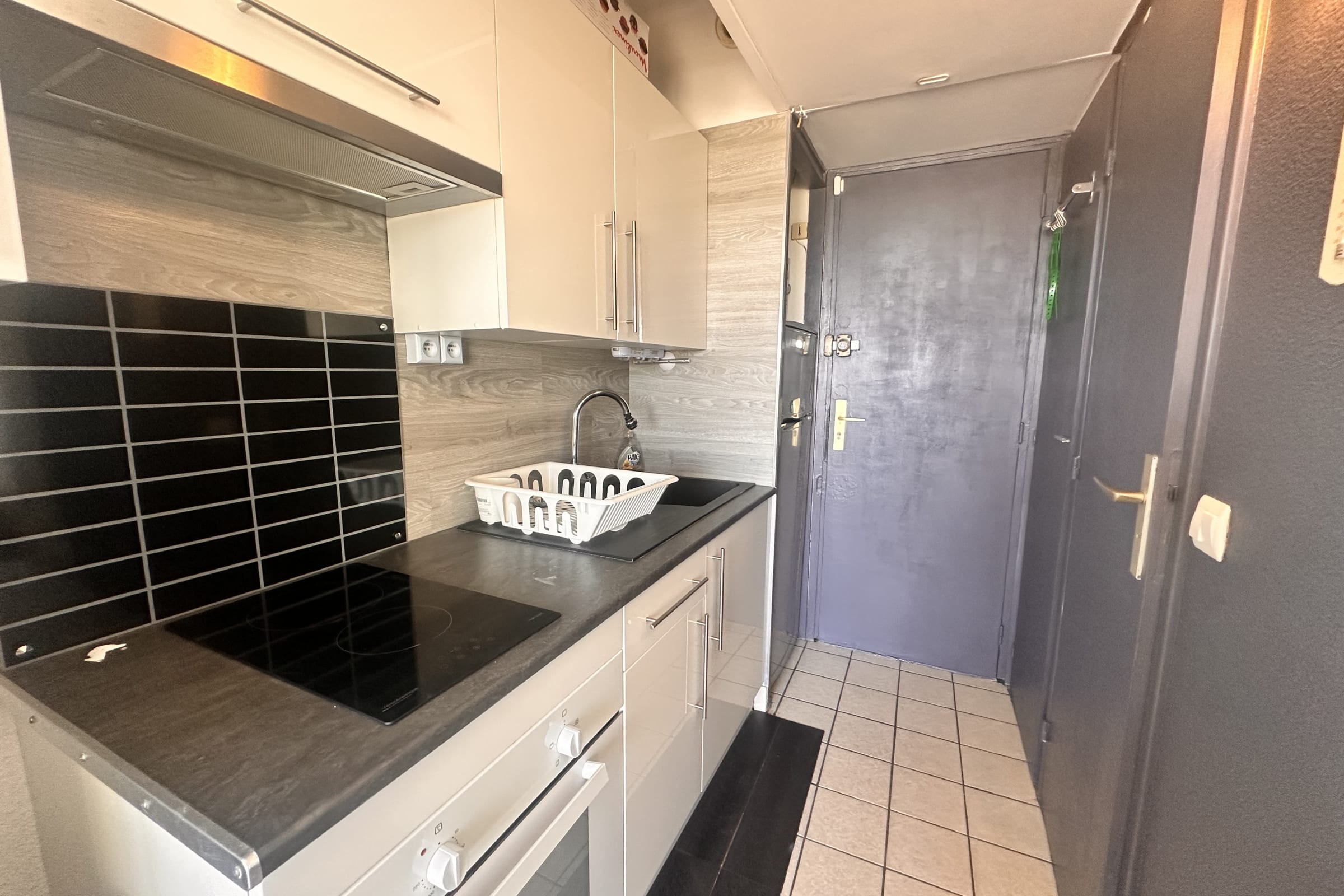 The "Les Jardins du Port" apartment includes an entrance with a kitchenette, a bright living room with access to a private terrace, and a modern bathroom with a toilet. You will find everything you need for a comfortable stay: coffee machine, toaster, kettle, microwave, refrigerator, etc.