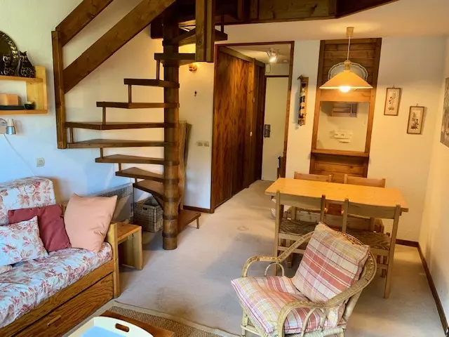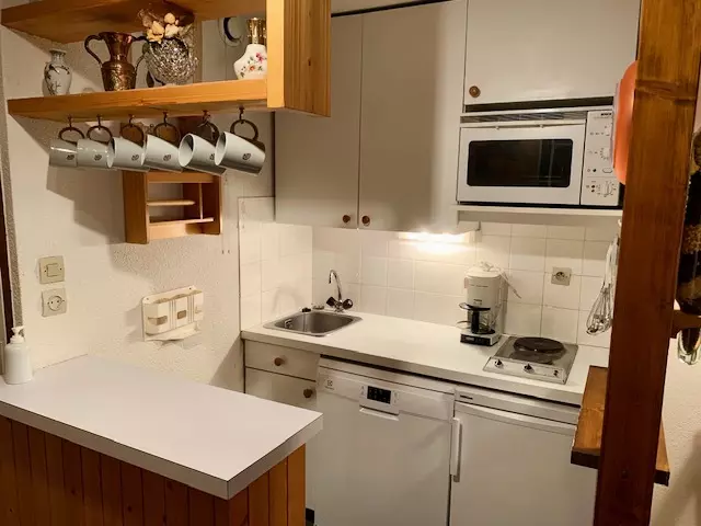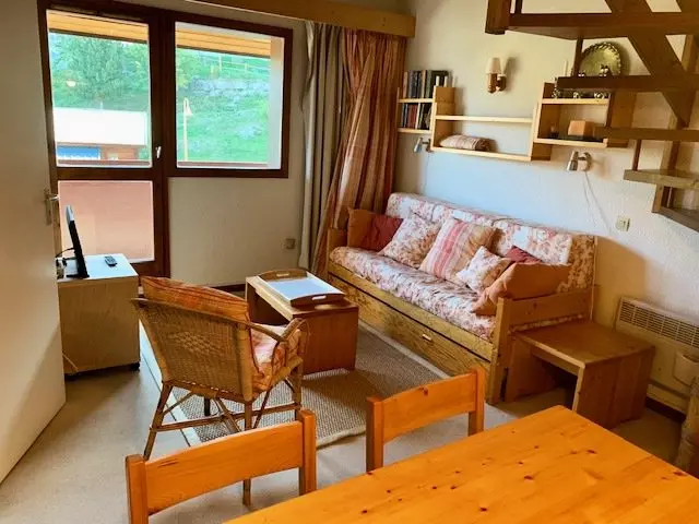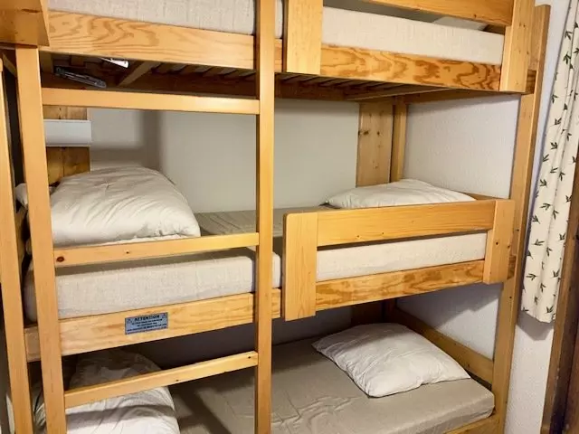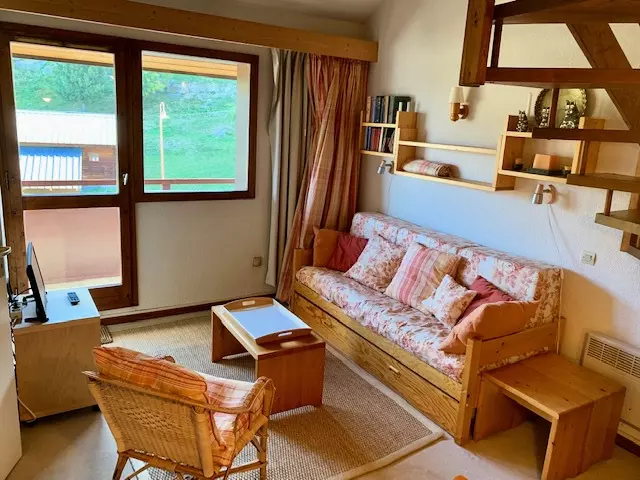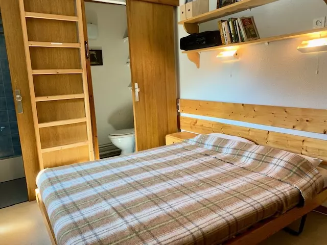 Rented for 5 people, this apartment consists of a living room with a pull-out sofa bed opening onto an east-facing balcony offering a beautiful view of the slopes, a small bedroom with bunk beds, a kitchenette and a shower room and separate toilet.