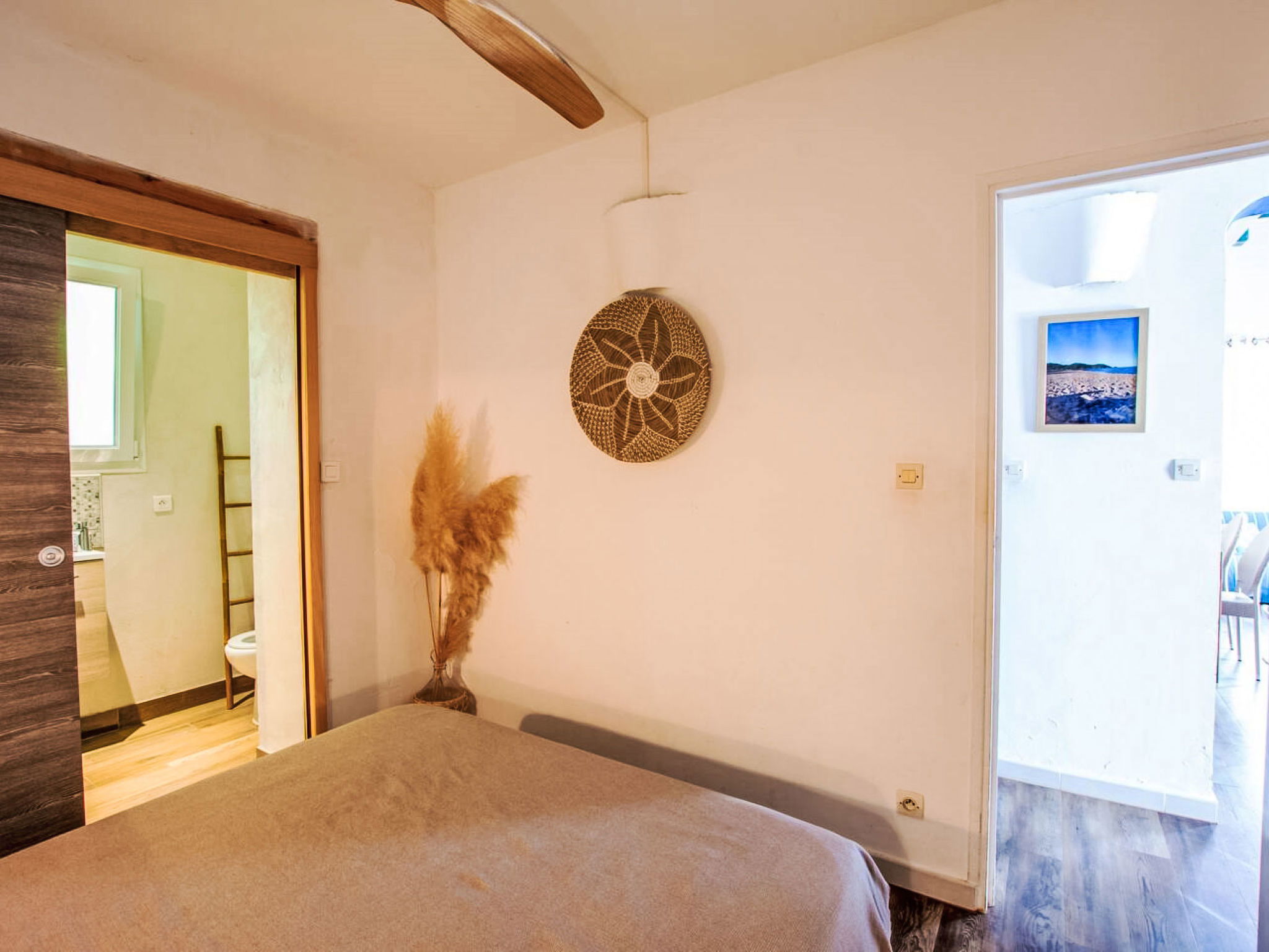 2-family house "Casa Blue". In the district of Olmucciu, 30 m from the sea, 30 m from the beach, direct access to the beach. Private: property (fenced), parking at the house. Supermarket 6 km, restaurant 50 m, bakery 6 km, bus stop 6 km, sandy beach "Plage des Americains" 30 m. Sailing school 8 km. Nearby attractions: Plage des Américains 30 m, Plage de Pinarellu 8 km, Porto-Vecchio 21 km, Bonifacio 49 km. Hiking paths: Piscine Cavu 12 km, Aiguilles de Bavella 59 km. Please note: car recommended.