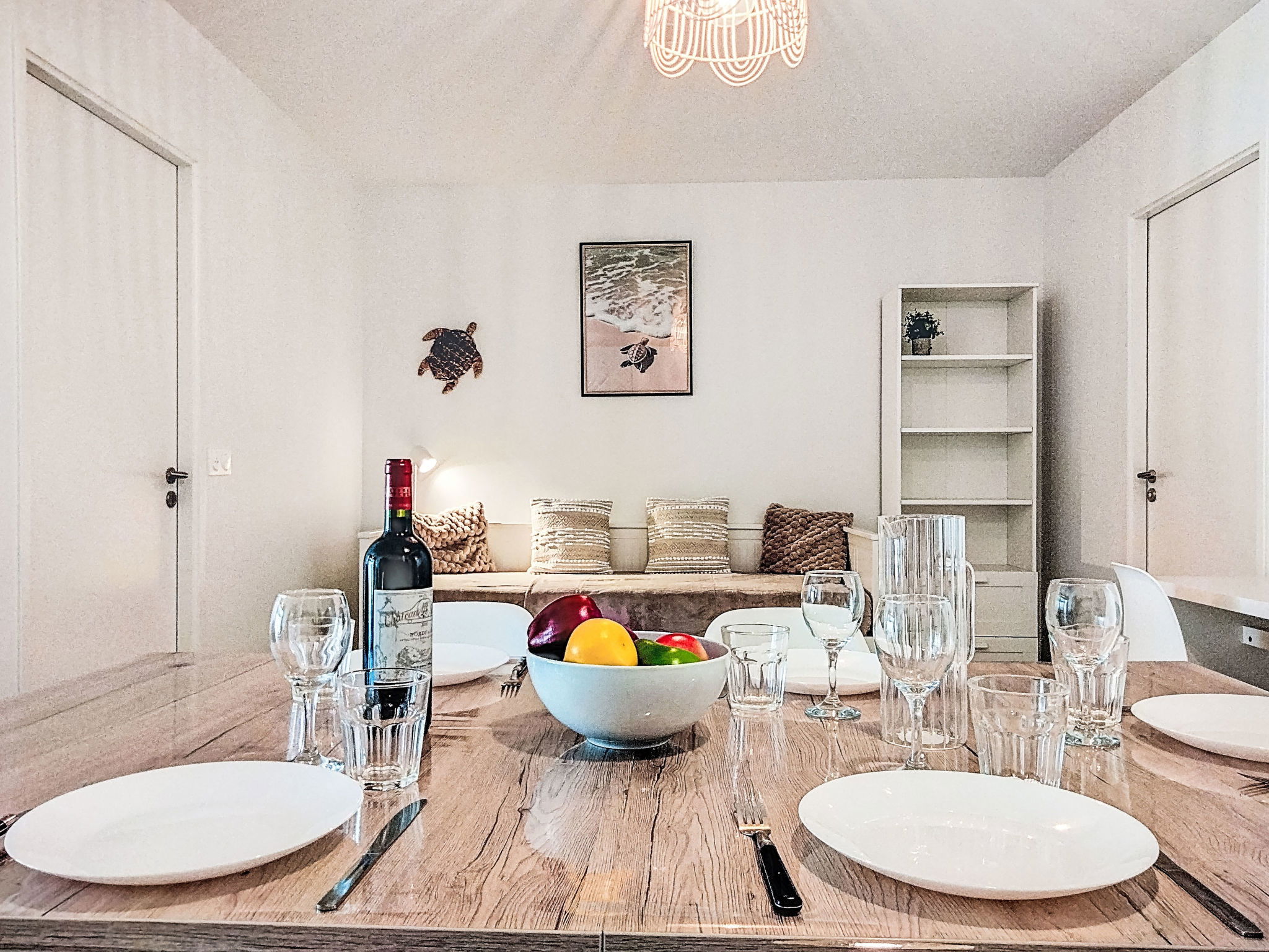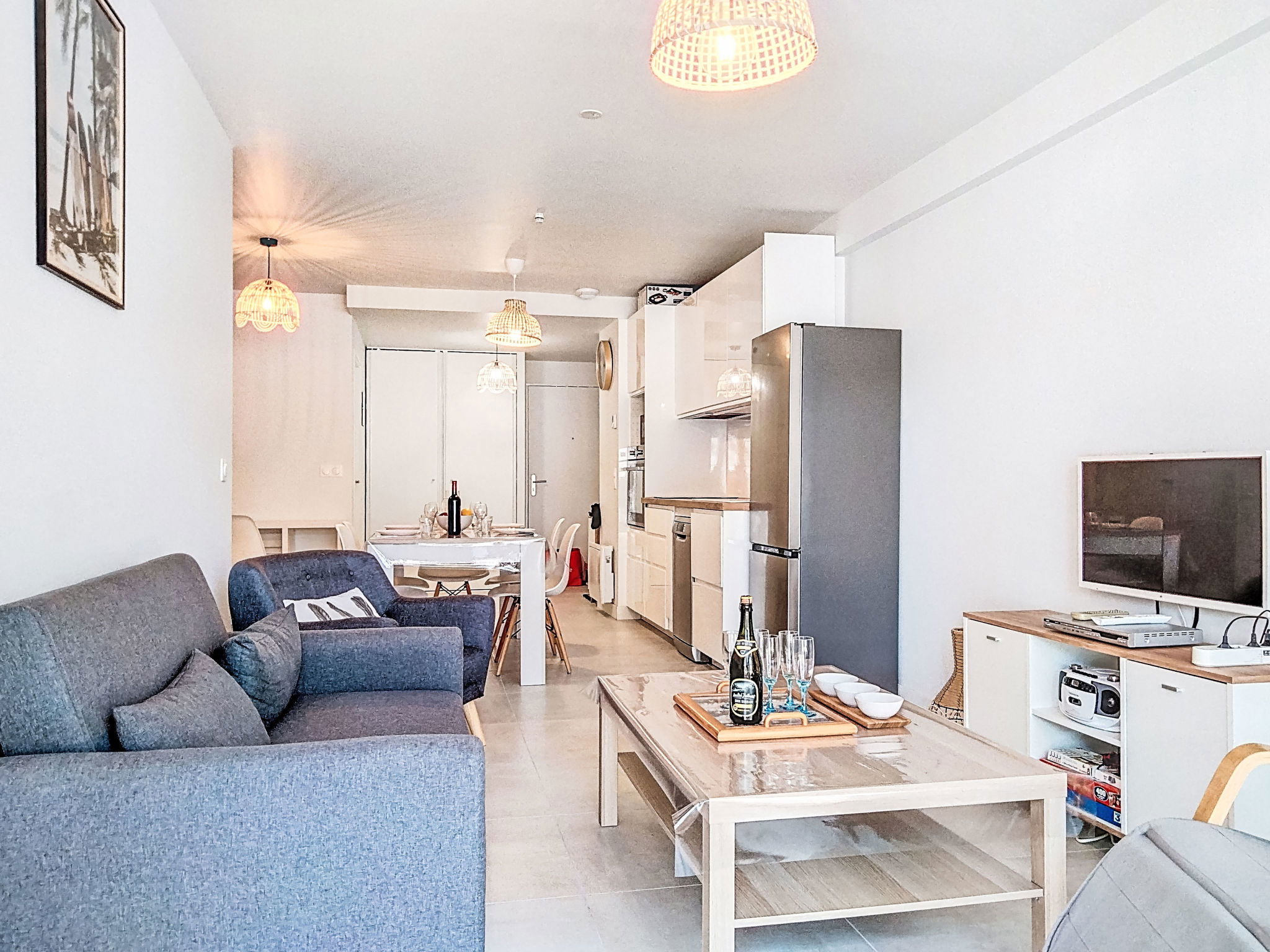 2-room apartment 50 m2, north-east facing position. Spacious and bright, beautiful furnishings: large living room 33 m2 with 1 pull-out bed (2 pers. 2 x 80 cm, length 200 cm), flat screen, radio, CD-player and DVD. Exit to the terrace. 1 room with 1 french bed (1 x 140 cm, length 190 cm). Open kitchen (oven, dishwasher, 2 induction hot plates, toaster, kettle, microwave, electric coffee machine, Capsules for coffee machine (Senseo) extra). Shower, sep. WC. Electric heating. Terrace 13 m2. Balcony furniture. Facilities: washing machine, hair dryer. Internet (WiFi). Blu-ray player, iPod docking station. Parking at 20 m. Please note: suitable for families. Smoke alarm. Offer by a private individual according to Art. 155, IV of CGI.